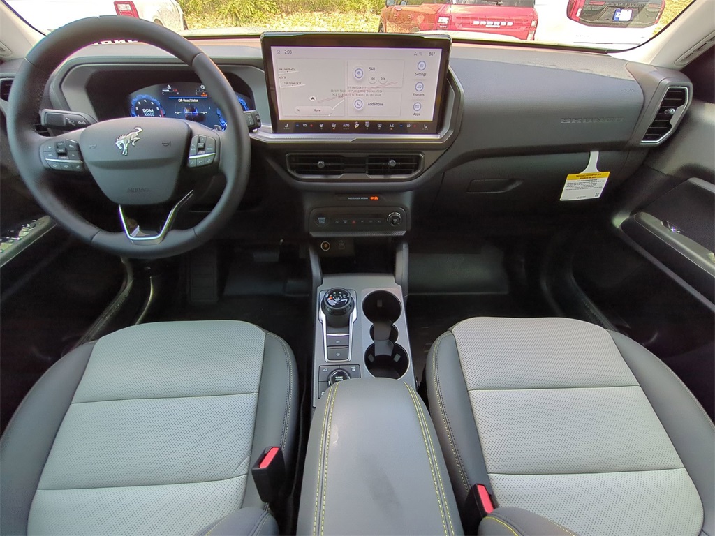 2025 Azure Gray Metallic Tri-Coat 2025 Ford Bronco Sport Badlands 4WD EcoBoost 2.0L I4 GTDi DOHC Turbocharged VCT 4-Wheel Disc Brakes, 6 Speakers, ABS brakes, Air Conditioning, Alloy wheels, AM/FM radio: SiriusXM, AM/FM Stereo, Auto High-beam Headlights, Auto-dimming Rear-View mirror, Automatic temperature control, Brake assist, Compass, Delay-off headlights, Driver door bin, Driver vanity mirror, Dual front impact airbags, Dual front side impact airbags, Electronic Stability Control, Emergency communication system: SYNC 4 911 Assist, Four wheel independent suspension, Front anti-roll bar, Front Bucket Seats, Front Center Armrest, Front fog lights, Front reading lights, Fully automatic headlights, Garage door transmitter, Heated door mirrors, Heated front seats, Heated steering wheel, Illuminated entry, Knee airbag, Leather Trimmed Front Bucket Seats, Low tire pressure warning, Memory seat, Occupant sensing airbag, Outside temperature display, Overhead airbag, Overhead console, Panic alarm, Passenger door bin, Passenger vanity mirror, Power door mirrors, Power driver seat, Power passenger seat, Power steering, Power windows, Radio data system, Rear anti-roll bar, Rear reading lights, Rear seat center armrest, Rear window defroster, Rear window wiper, Remote keyless entry, Security system, SiriusXM, Speed control, Speed-sensing steering, Speed-Sensitive Wipers, Split folding rear seat, Steering wheel mounted audio controls, SYNC 4 w/Enhanced Voice Recognition, Tachometer, Telescoping steering wheel, Tilt steering wheel, Traction control, Trip computer, Variably intermittent wipers, and Wheels: 17" Matte Black-Painted Aluminum Courtesy Ford and Lincoln of Rome 101 Hwy 411 E Rome, Ga 30161 ROMEFORDLINC.COM 706.235.4453.