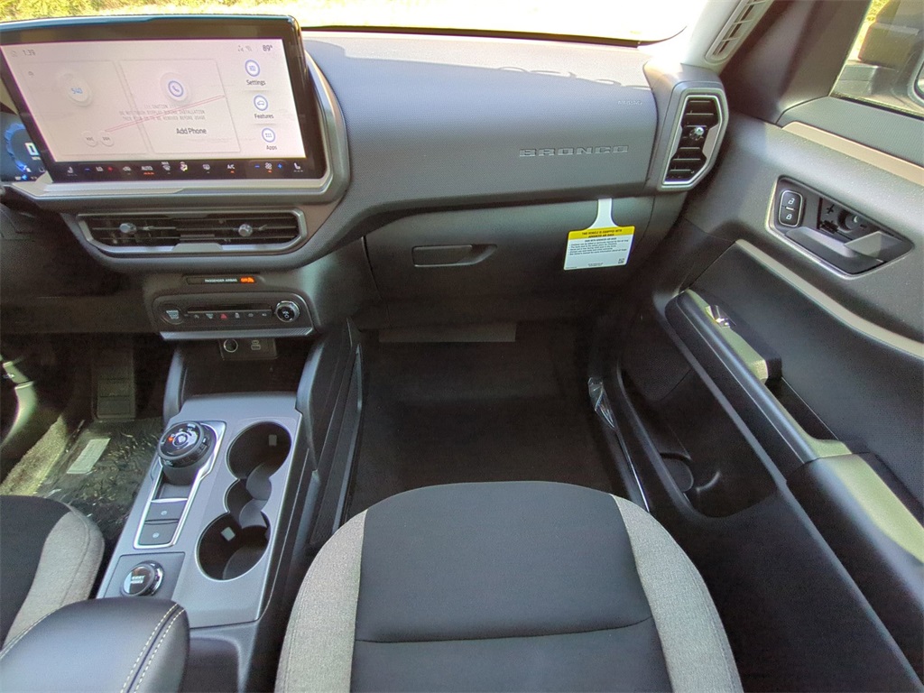 2025 Azure Gray Metallic Tri-Coat 2025 Ford Bronco Sport Big Bend 4WD 1.5L EcoBoost 13.2" LCD Centerstack Touchscreen, Auto LED Headlights, Backup Camera, LED Foglights, Off Road Package, 4D Sport Utility, 1.5L EcoBoost, 8-Speed Automatic, 4WD, Convenience Package, Equipment Group 200A, Front Driver/Passenger Seat Back Map Pockets, Heated 8-Way Power Driver's Seat, LED Fog Lamps, Premium Wrapped Steering Wheel, Rear window wiper, Speed-Sensitive Wipers, Universal Garage Door Opener (UGDO). Convenience Package (Front Driver/Passenger Seat Back Map Pockets, Heated 8-Way Power Driver's Seat, LED Fog Lamps, Premium Wrapped Steering Wheel, and Universal Garage Door Opener (UGDO)), Equipment Group 200A, 4D Sport Utility, 1.5L EcoBoost, 8-Speed Automatic, 4WD, Rear window wiper, Speed-Sensitive Wipers, 4-Wheel Disc Brakes, 6 Speakers, ABS brakes, Air Conditioning, Alloy wheels, AM/FM radio: SiriusXM, AM/FM Stereo, Auto High-beam Headlights, Automatic temperature control, Brake assist, Cloth w/Easy-to-Clean Front Bucket Seats, Compass, Delay-off headlights, Driver door bin, Driver vanity mirror, Dual front impact airbags, Dual front side impact airbags, Electronic Stability Control, Emergency communication system: SYNC 4 911 Assist, Four wheel independent suspension, Front anti-roll bar, Front Bucket Seats, Front Center Armrest, Front reading lights, Fully automatic headlights, Heated door mirrors, Illuminated entry, Knee airbag, Low tire pressure warning, Occupant sensing airbag, Outside temperature display, Overhead airbag, Overhead console, Panic alarm, Passenger door bin, Passenger vanity mirror, Power door mirrors, Power steering, Power windows, Radio data system, Rear anti-roll bar, Rear Parking Sensors, Rear reading lights, Rear seat center armrest, Rear window defroster, Remote keyless entry, Security system, SiriusXM, Speed control, Speed-sensing steering, Split folding rear seat, Steering wheel mounted audio controls, SYNC 4 w/Enhanced Voice Recognition, Tachometer, Telescoping steering wheel, Tilt steering wheel, Traction control, Trip computer, Variably intermittent wipers, and Wheels: 17" Carbonized Gray-Painted Aluminum Courtesy Ford and Lincoln of Rome 101 Hwy 411 E Rome, Ga 30161 ROMEFORDLINC.COM 706.235.4453.