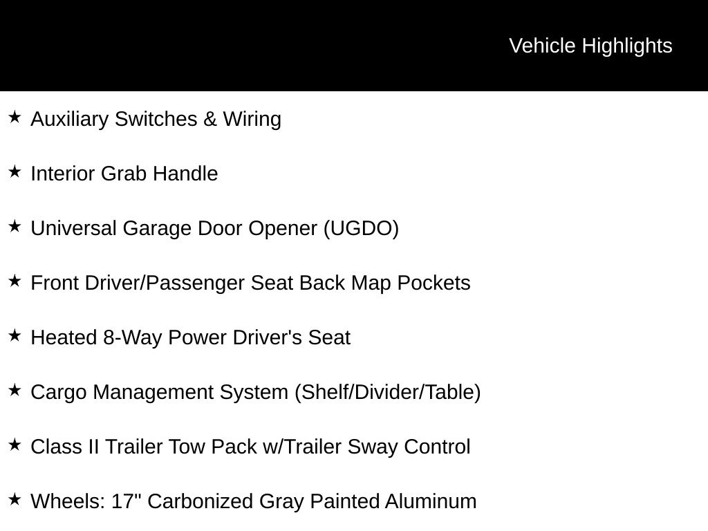 - Wheels: 17" Carbonized Gray-Painted Aluminum