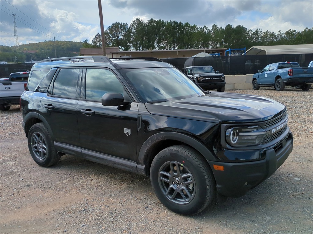 2025 Shadow Black 2025 Ford Bronco Sport Big Bend 4WD 1.5L EcoBoost Auto LED Headlights, Backup Camera, LED Foglights, Off Road Package, 4D Sport Utility, 1.5L EcoBoost, 8-Speed Automatic, 4WD, Convenience Package, Equipment Group 200A, Front Driver/Passenger Seat Back Map Pockets, Heated 8-Way Power Driver's Seat, LED Fog Lamps, Premium Wrapped Steering Wheel, Universal Garage Door Opener (UGDO). Convenience Package (Front Driver/Passenger Seat Back Map Pockets, Heated 8-Way Power Driver's Seat, LED Fog Lamps, Premium Wrapped Steering Wheel, and Universal Garage Door Opener (UGDO)), Equipment Group 200A, 4D Sport Utility, 1.5L EcoBoost, 8-Speed Automatic, 4WD, 4-Wheel Disc Brakes, 6 Speakers, ABS brakes, Air Conditioning, Alloy wheels, AM/FM radio: SiriusXM, AM/FM Stereo, Auto High-beam Headlights, Automatic temperature control, Brake assist, Cloth w/Easy-to-Clean Front Bucket Seats, Compass, Delay-off headlights, Driver door bin, Driver vanity mirror, Dual front impact airbags, Dual front side impact airbags, Electronic Stability Control, Emergency communication system: SYNC 4 911 Assist, Four wheel independent suspension, Front anti-roll bar, Front Bucket Seats, Front Center Armrest, Front reading lights, Fully automatic headlights, Heated door mirrors, Illuminated entry, Knee airbag, Low tire pressure warning, Occupant sensing airbag, Outside temperature display, Overhead airbag, Overhead console, Panic alarm, Passenger door bin, Passenger vanity mirror, Power door mirrors, Power steering, Power windows, Radio data system, Rear anti-roll bar, Rear Parking Sensors, Rear reading lights, Rear seat center armrest, Rear window defroster, Rear window wiper, Remote keyless entry, Security system, SiriusXM, Speed control, Speed-sensing steering, Speed-Sensitive Wipers, Split folding rear seat, Steering wheel mounted audio controls, SYNC 4 w/Enhanced Voice Recognition, Tachometer, Telescoping steering wheel, Tilt steering wheel, Traction control, Trip computer, Variably intermittent wipers, and Wheels: 17" Carbonized Gray-Painted Aluminum Courtesy Ford and Lincoln of Rome 101 Hwy 411 E Rome, Ga 30161 ROMEFORDLINC.COM 706.235.4453.