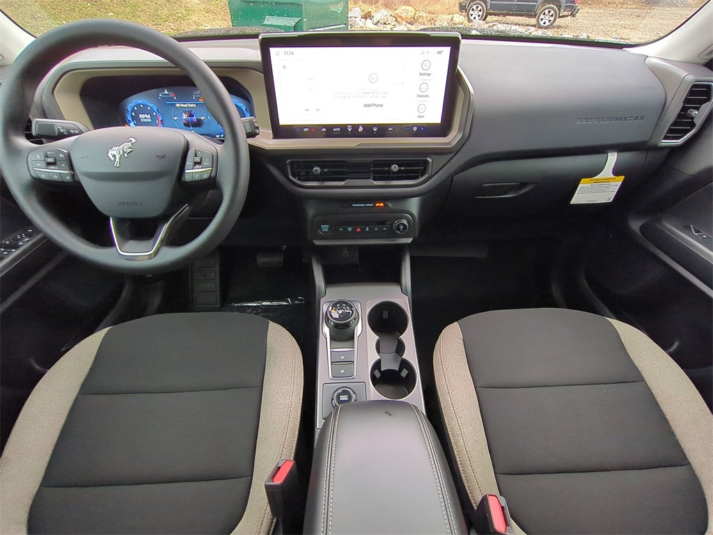 2025 Shadow Black 2025 Ford Bronco Sport Big Bend 4WD 1.5L EcoBoost 13.2" LCD Centerstack Touchscreen, Auto LED Headlights, Backup Camera, Off Road Package, 4D Sport Utility, 1.5L EcoBoost, 8-Speed Automatic, 4WD, Equipment Group 200A. Equipment Group 200A, 4D Sport Utility, 1.5L EcoBoost, 8-Speed Automatic, 4WD, 4-Wheel Disc Brakes, 6 Speakers, ABS brakes, Air Conditioning, Alloy wheels, AM/FM radio: SiriusXM, AM/FM Stereo, Auto High-beam Headlights, Automatic temperature control, Brake assist, Cloth w/Easy-to-Clean Front Bucket Seats, Compass, Delay-off headlights, Driver door bin, Driver vanity mirror, Dual front impact airbags, Dual front side impact airbags, Electronic Stability Control, Emergency communication system: SYNC 4 911 Assist, Four wheel independent suspension, Front anti-roll bar, Front Bucket Seats, Front Center Armrest, Front reading lights, Fully automatic headlights, Heated door mirrors, Illuminated entry, Knee airbag, Low tire pressure warning, Occupant sensing airbag, Outside temperature display, Overhead airbag, Overhead console, Panic alarm, Passenger door bin, Passenger vanity mirror, Power door mirrors, Power steering, Power windows, Radio data system, Rear anti-roll bar, Rear Parking Sensors, Rear reading lights, Rear seat center armrest, Rear window defroster, Rear window wiper, Remote keyless entry, Security system, SiriusXM, Speed control, Speed-sensing steering, Speed-Sensitive Wipers, Split folding rear seat, Steering wheel mounted audio controls, SYNC 4 w/Enhanced Voice Recognition, Tachometer, Telescoping steering wheel, Tilt steering wheel, Traction control, Trip computer, Variably intermittent wipers, and Wheels: 17" Carbonized Gray-Painted Aluminum Courtesy Ford and Lincoln of Rome 101 Hwy 411 E Rome, Ga 30161 ROMEFORDLINC.COM 706.235.4453.