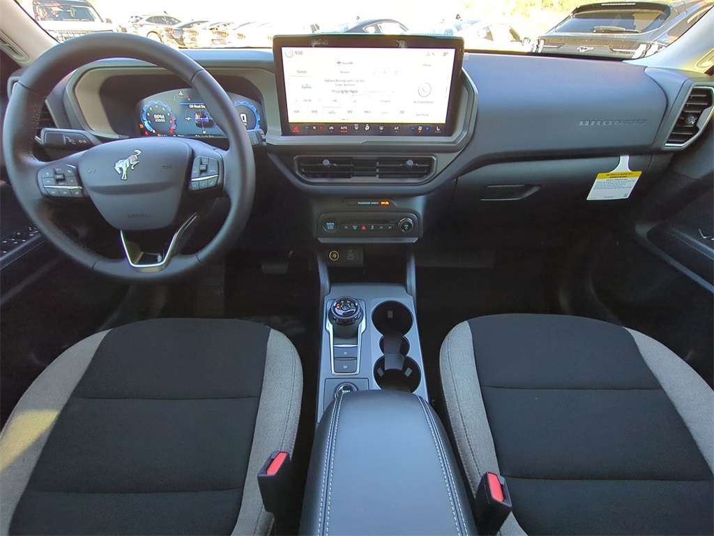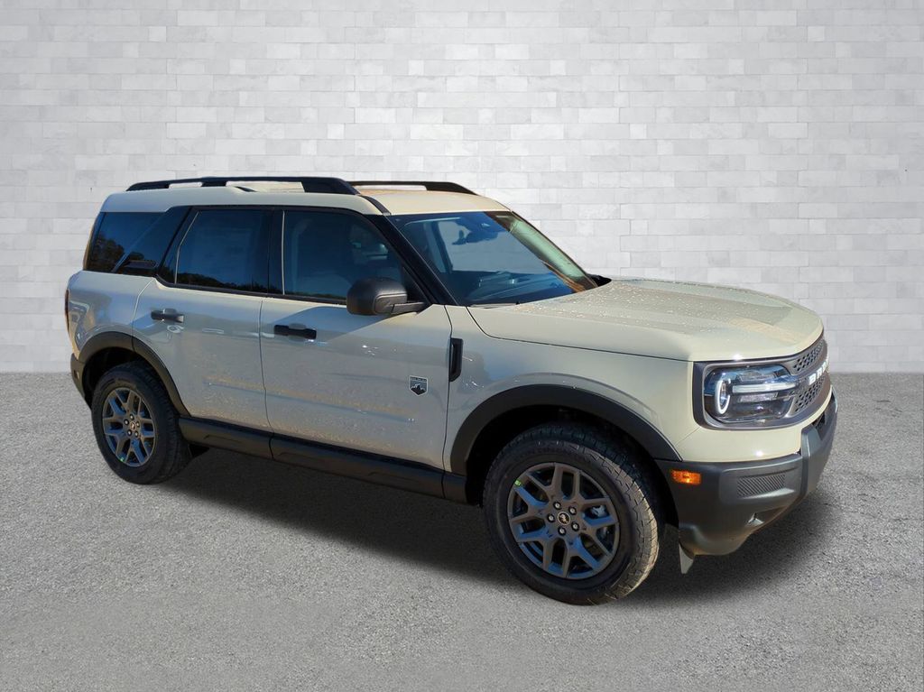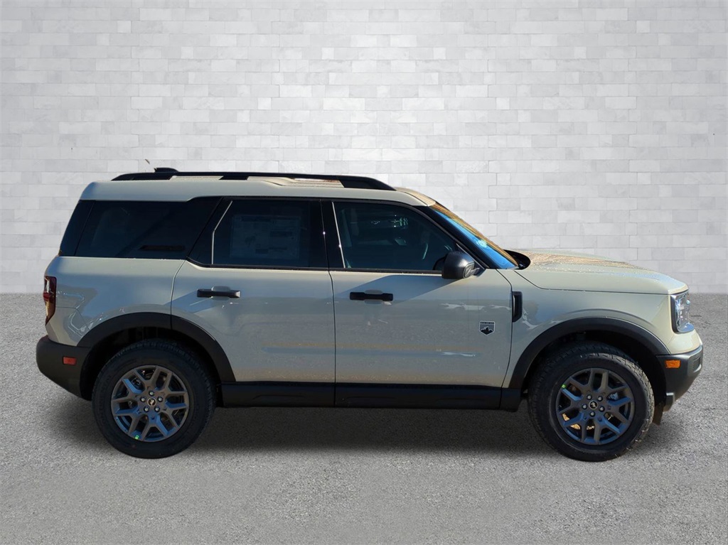 2025 Desert Sand 2025 Ford Bronco Sport Big Bend 4WD 1.5L EcoBoost 13.2" LCD Centerstack Touchscreen, Auto LED Headlights, Backup Camera, LED Foglights, Off Road Package, 4D Sport Utility, 1.5L EcoBoost, 8-Speed Automatic, 4WD, Convenience Package, Equipment Group 200A, Front Driver/Passenger Seat Back Map Pockets, Heated 8-Way Power Driver's Seat, LED Fog Lamps, Premium Wrapped Steering Wheel, Universal Garage Door Opener (UGDO). Convenience Package (Front Driver/Passenger Seat Back Map Pockets, Heated 8-Way Power Driver's Seat, LED Fog Lamps, Premium Wrapped Steering Wheel, and Universal Garage Door Opener (UGDO)), Equipment Group 200A, 4D Sport Utility, 1.5L EcoBoost, 8-Speed Automatic, 4WD, 4-Wheel Disc Brakes, 6 Speakers, ABS brakes, Air Conditioning, Alloy wheels, AM/FM radio: SiriusXM, AM/FM Stereo, Auto High-beam Headlights, Automatic temperature control, Brake assist, Cloth w/Easy-to-Clean Front Bucket Seats, Compass, Delay-off headlights, Driver door bin, Driver vanity mirror, Dual front impact airbags, Dual front side impact airbags, Electronic Stability Control, Emergency communication system: SYNC 4 911 Assist, Four wheel independent suspension, Front anti-roll bar, Front Bucket Seats, Front Center Armrest, Front reading lights, Fully automatic headlights, Heated door mirrors, Illuminated entry, Knee airbag, Low tire pressure warning, Occupant sensing airbag, Outside temperature display, Overhead airbag, Overhead console, Panic alarm, Passenger door bin, Passenger vanity mirror, Power door mirrors, Power steering, Power windows, Radio data system, Rear anti-roll bar, Rear Parking Sensors, Rear reading lights, Rear seat center armrest, Rear window defroster, Rear window wiper, Remote keyless entry, Security system, SiriusXM, Speed control, Speed-sensing steering, Speed-Sensitive Wipers, Split folding rear seat, Steering wheel mounted audio controls, SYNC 4 w/Enhanced Voice Recognition, Tachometer, Telescoping steering wheel, Tilt steering wheel, Traction control, Trip computer, Variably intermittent wipers, and Wheels: 17" Carbonized Gray-Painted Aluminum Courtesy Ford and Lincoln of Rome 101 Hwy 411 E Rome, Ga 30161 ROMEFORDLINC.COM 706.235.4453.