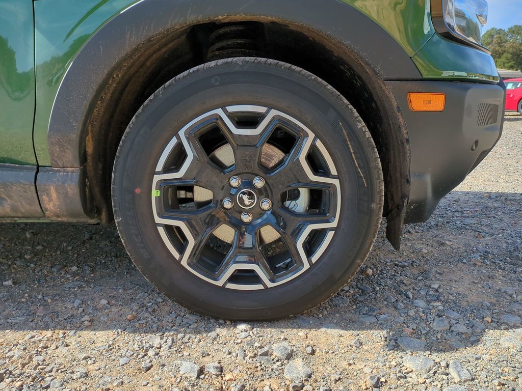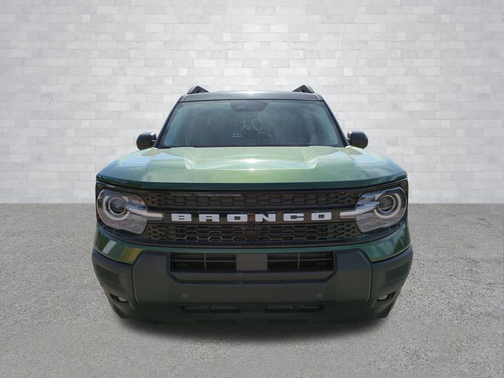 2025 Eruption Green Metallic 2025 Ford Bronco Sport Outer Banks 4WD 1.5L EcoBoost Equipment Group 300A, Outer Banks Tech Package+ (B&O Sound System by Bang & Olufsen, Connected Navigation, and HD Radio), 360-Degree Camera w/Trail & Split View, 4-Wheel Disc Brakes, 6 Speakers, ABS brakes, Air Conditioning, Alloy wheels, AM/FM radio: SiriusXM, AM/FM Stereo, Auto High-beam Headlights, Auto-dimming Rear-View mirror, Automatic temperature control, Brake assist, Compass, Delay-off headlights, Driver door bin, Driver vanity mirror, Dual front impact airbags, Dual front side impact airbags, Electronic Stability Control, Emergency communication system: SYNC 4 911 Assist, Four wheel independent suspension, Front anti-roll bar, Front Bucket Seats, Front Center Armrest, Front Driver/Passenger Seat Back Map Pockets, Front dual zone A/C, Front fog lights, Front Parking Sensors, Front reading lights, Fully automatic headlights, Garage door transmitter, Heated door mirrors, Heated front seats, Heated steering wheel, Illuminated entry, Knee airbag, Low tire pressure warning, Memory seat, Occupant sensing airbag, Outside temperature display, Overhead airbag, Overhead console, Panic alarm, Passenger door bin, Passenger vanity mirror, Power door mirrors, Power driver seat, Power Moonroof, Power passenger seat, Power steering, Power windows, Premium Trimmed Front Bucket Seats w/Ebony/Roast, Radio data system, Rain sensing wipers, Rear anti-roll bar, Rear Parking Sensors, Rear reading lights, Rear seat center armrest, Rear window defroster, Rear window wiper, Remote keyless entry, Reverse Brake Assist, Security system, SiriusXM, Speed control, Speed-sensing steering, Speed-Sensitive Wipers, Split folding rear seat, Steering wheel mounted audio controls, SYNC 4 w/Enhanced Voice Recognition, Tachometer, Telescoping steering wheel, Tilt steering wheel, Traction control, Trip computer, Variably intermittent wipers, and Wheels: 18" Ebony Black-Painted Aluminum Courtesy Ford and Lincoln of Rome 101 Hwy 411 E Rome, Ga 30161 ROMEFORDLINC.COM 706.235.4453.