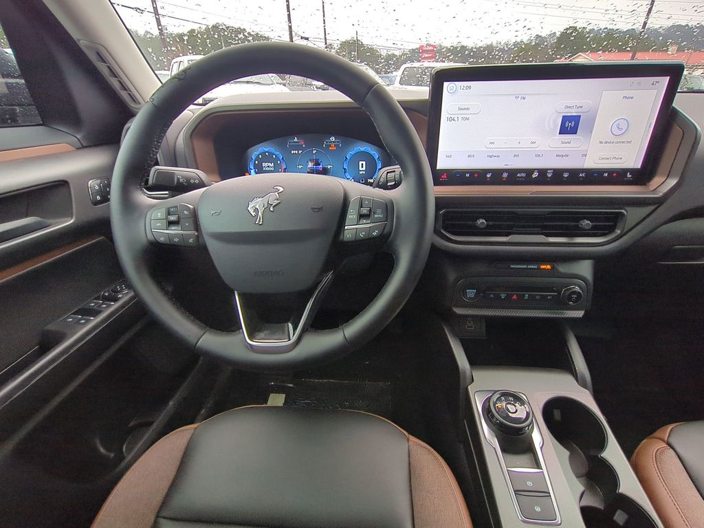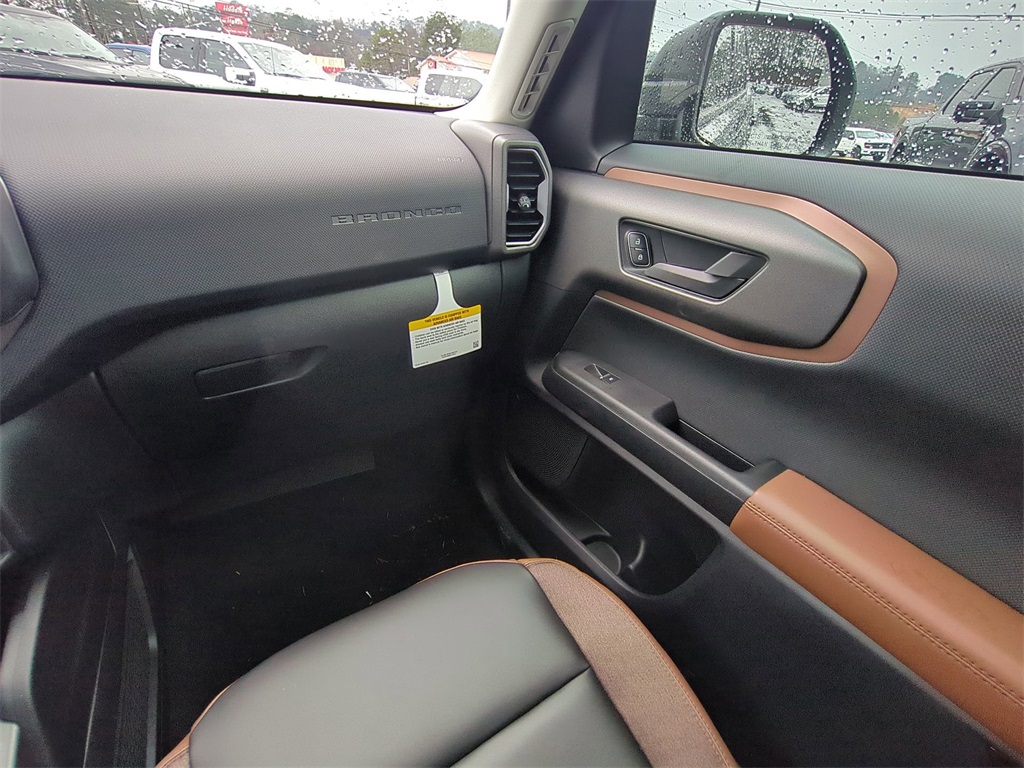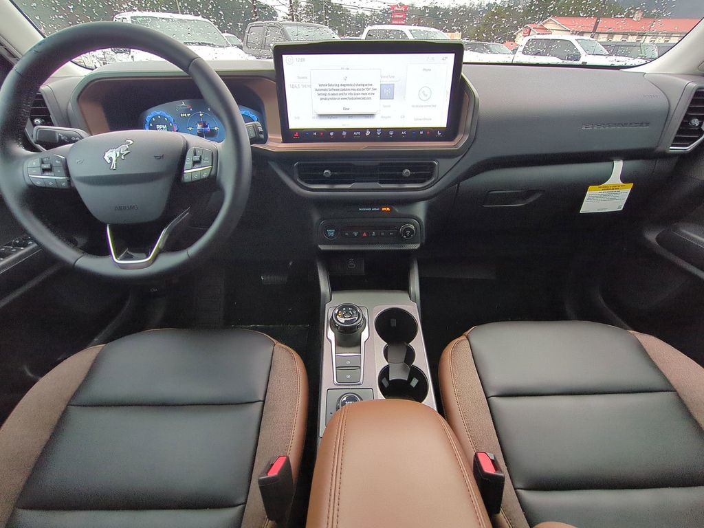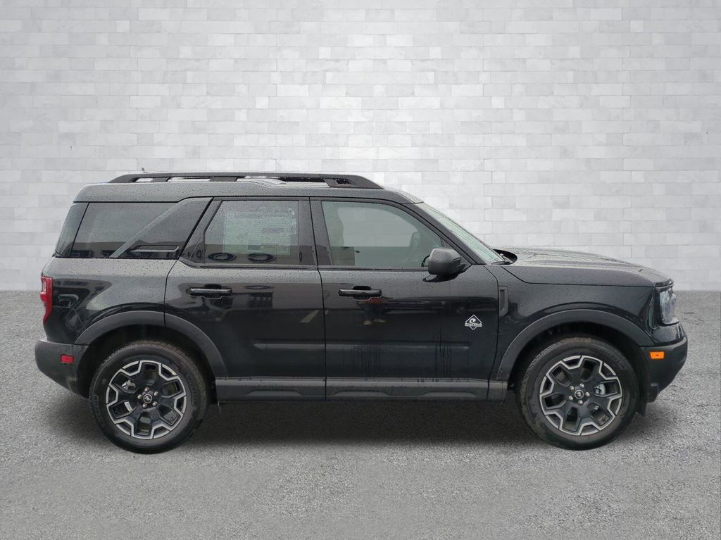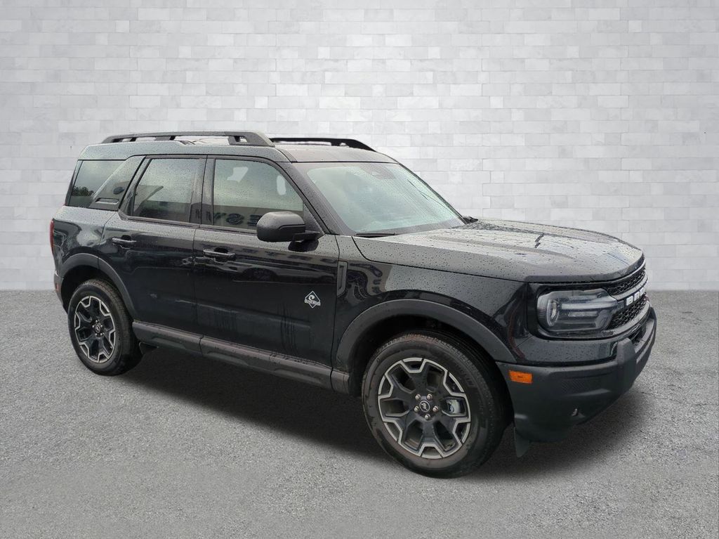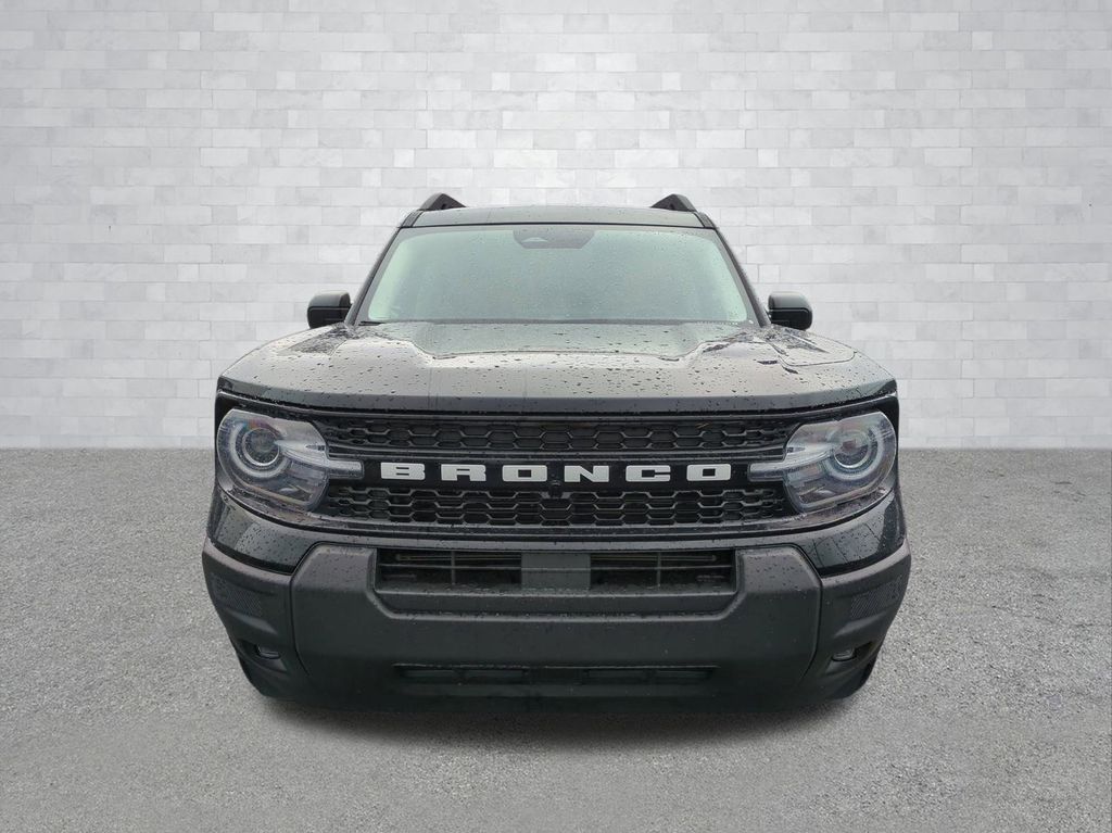 2025 Shadow Black 2025 Ford Bronco Sport Outer Banks 4WD 1.5L EcoBoost Equipment Group 300A, 4-Wheel Disc Brakes, 6 Speakers, ABS brakes, Air Conditioning, Alloy wheels, AM/FM radio: SiriusXM, AM/FM Stereo, Auto High-beam Headlights, Auto-dimming Rear-View mirror, Automatic temperature control, Brake assist, Compass, Delay-off headlights, Driver door bin, Driver vanity mirror, Dual front impact airbags, Dual front side impact airbags, Electronic Stability Control, Emergency communication system: SYNC 4 911 Assist, Four wheel independent suspension, Front anti-roll bar, Front Bucket Seats, Front Center Armrest, Front Driver/Passenger Seat Back Map Pockets, Front dual zone A/C, Front fog lights, Front reading lights, Fully automatic headlights, Garage door transmitter, Heated door mirrors, Heated front seats, Heated steering wheel, Illuminated entry, Knee airbag, Low tire pressure warning, Memory seat, Occupant sensing airbag, Outside temperature display, Overhead airbag, Overhead console, Panic alarm, Passenger door bin, Passenger vanity mirror, Power door mirrors, Power driver seat, Power passenger seat, Power steering, Power windows, Premium Trimmed Front Bucket Seats w/Ebony/Roast, Radio data system, Rain sensing wipers, Rear anti-roll bar, Rear Parking Sensors, Rear reading lights, Rear seat center armrest, Rear window defroster, Rear window wiper, Remote keyless entry, Security system, SiriusXM, Speed control, Speed-sensing steering, Speed-Sensitive Wipers, Split folding rear seat, Steering wheel mounted audio controls, SYNC 4 w/Enhanced Voice Recognition, Tachometer, Telescoping steering wheel, Tilt steering wheel, Traction control, Trip computer, Variably intermittent wipers, and Wheels: 18" Ebony Black-Painted Aluminum Courtesy Ford and Lincoln of Rome 101 Hwy 411 E Rome, Ga 30161 ROMEFORDLINC.COM 706.235.4453.