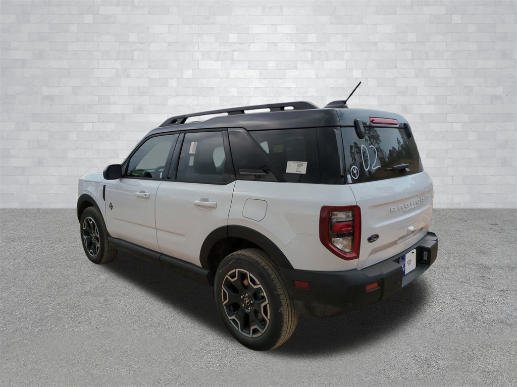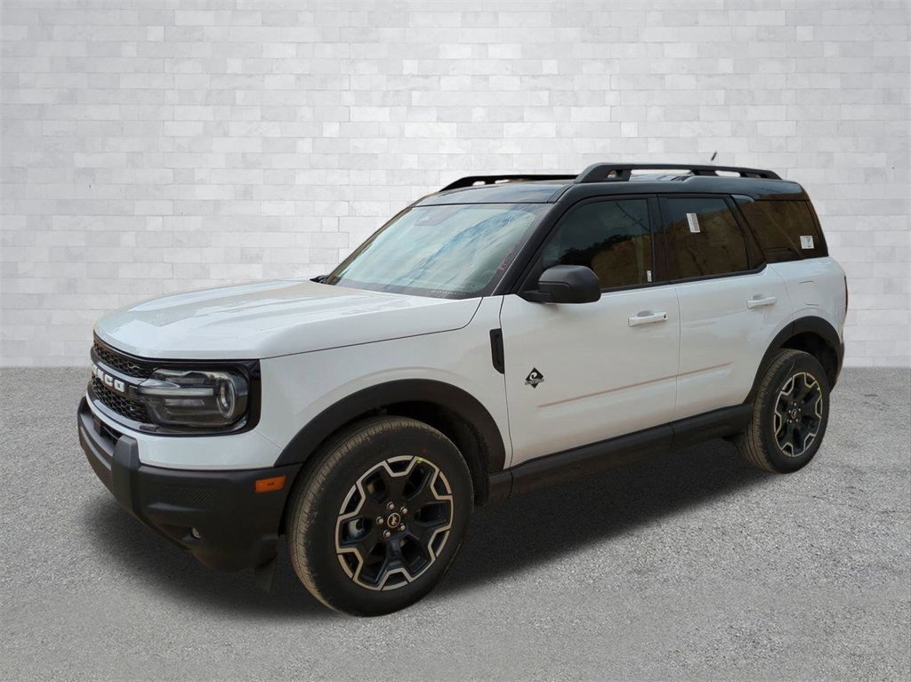2025 Oxford White 2025 Ford Bronco Sport Outer Banks 4WD 1.5L EcoBoost 4-Wheel Disc Brakes, 6 Speakers, ABS brakes, Air Conditioning, Alloy wheels, AM/FM radio: SiriusXM, AM/FM Stereo, Auto High-beam Headlights, Auto-dimming Rear-View mirror, Automatic temperature control, Brake assist, Compass, Delay-off headlights, Driver door bin, Driver vanity mirror, Dual front impact airbags, Dual front side impact airbags, Electronic Stability Control, Emergency communication system: SYNC 4 911 Assist, Four wheel independent suspension, Front anti-roll bar, Front Bucket Seats, Front Center Armrest, Front Driver/Passenger Seat Back Map Pockets, Front dual zone A/C, Front fog lights, Front reading lights, Fully automatic headlights, Garage door transmitter, Heated door mirrors, Heated front seats, Heated steering wheel, Illuminated entry, Knee airbag, Low tire pressure warning, Memory seat, Occupant sensing airbag, Outside temperature display, Overhead airbag, Overhead console, Panic alarm, Passenger door bin, Passenger vanity mirror, Power door mirrors, Power driver seat, Power passenger seat, Power steering, Power windows, Premium Trimmed Front Bucket Seats w/Ebony/Roast, Radio data system, Rain sensing wipers, Rear anti-roll bar, Rear Parking Sensors, Rear reading lights, Rear seat center armrest, Rear window defroster, Rear window wiper, Remote keyless entry, Security system, SiriusXM, Speed control, Speed-sensing steering, Speed-Sensitive Wipers, Split folding rear seat, Steering wheel mounted audio controls, SYNC 4 w/Enhanced Voice Recognition, Tachometer, Telescoping steering wheel, Tilt steering wheel, Traction control, Trip computer, Variably intermittent wipers, and Wheels: 18" Ebony Black-Painted Aluminum Courtesy Ford and Lincoln of Rome 101 Hwy 411 E Rome, Ga 30161 ROMEFORDLINC.COM 706.235.4453.