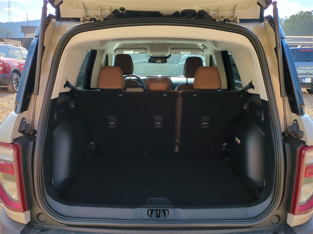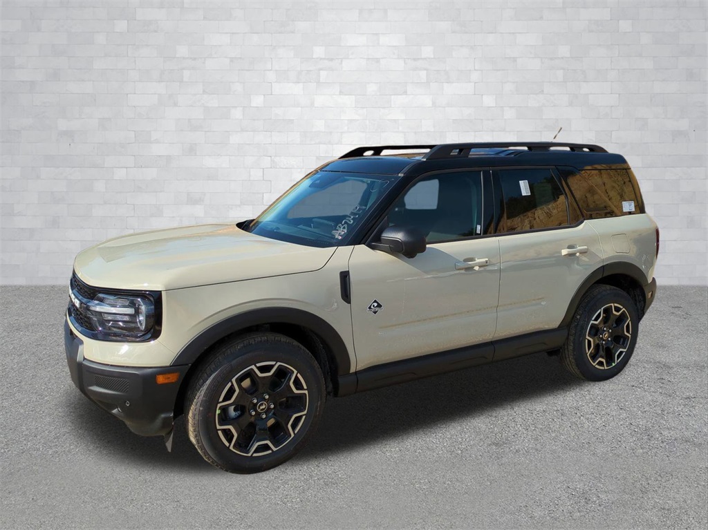 2025 Desert Sand 2025 Ford Bronco Sport Outer Banks 4WD 1.5L EcoBoost Equipment Group 300A, Outer Banks Tech Package+ (B&O Sound System by Bang & Olufsen, Connected Navigation, and HD Radio), 360-Degree Camera w/Trail & Split View, 4-Wheel Disc Brakes, 6 Speakers, ABS brakes, Air Conditioning, Alloy wheels, AM/FM radio: SiriusXM, AM/FM Stereo, Auto High-beam Headlights, Auto-dimming Rear-View mirror, Automatic temperature control, Brake assist, Compass, Delay-off headlights, Driver door bin, Driver vanity mirror, Dual front impact airbags, Dual front side impact airbags, Electronic Stability Control, Emergency communication system: SYNC 4 911 Assist, Four wheel independent suspension, Front anti-roll bar, Front Bucket Seats, Front Center Armrest, Front Driver/Passenger Seat Back Map Pockets, Front dual zone A/C, Front fog lights, Front License Plate Bracket, Front Parking Sensors, Front reading lights, Fully automatic headlights, Garage door transmitter, Heated door mirrors, Heated front seats, Heated steering wheel, Illuminated entry, Knee airbag, Low tire pressure warning, Memory seat, Occupant sensing airbag, Outside temperature display, Overhead airbag, Overhead console, Panic alarm, Passenger door bin, Passenger vanity mirror, Power door mirrors, Power driver seat, Power passenger seat, Power steering, Power windows, Premium Trimmed Front Bucket Seats w/Ebony/Roast, Radio data system, Rain sensing wipers, Rear anti-roll bar, Rear Parking Sensors, Rear reading lights, Rear seat center armrest, Rear window defroster, Rear window wiper, Remote keyless entry, Reverse Brake Assist, Security system, SiriusXM, Speed control, Speed-sensing steering, Speed-Sensitive Wipers, Split folding rear seat, Steering wheel mounted audio controls, SYNC 4 w/Enhanced Voice Recognition, Tachometer, Telescoping steering wheel, Tilt steering wheel, Traction control, Trip computer, Variably intermittent wipers, and Wheels: 18" Ebony Black-Painted Aluminum Courtesy Ford and Lincoln of Rome 101 Hwy 411 E Rome, Ga 30161 ROMEFORDLINC.COM 706.235.4453.