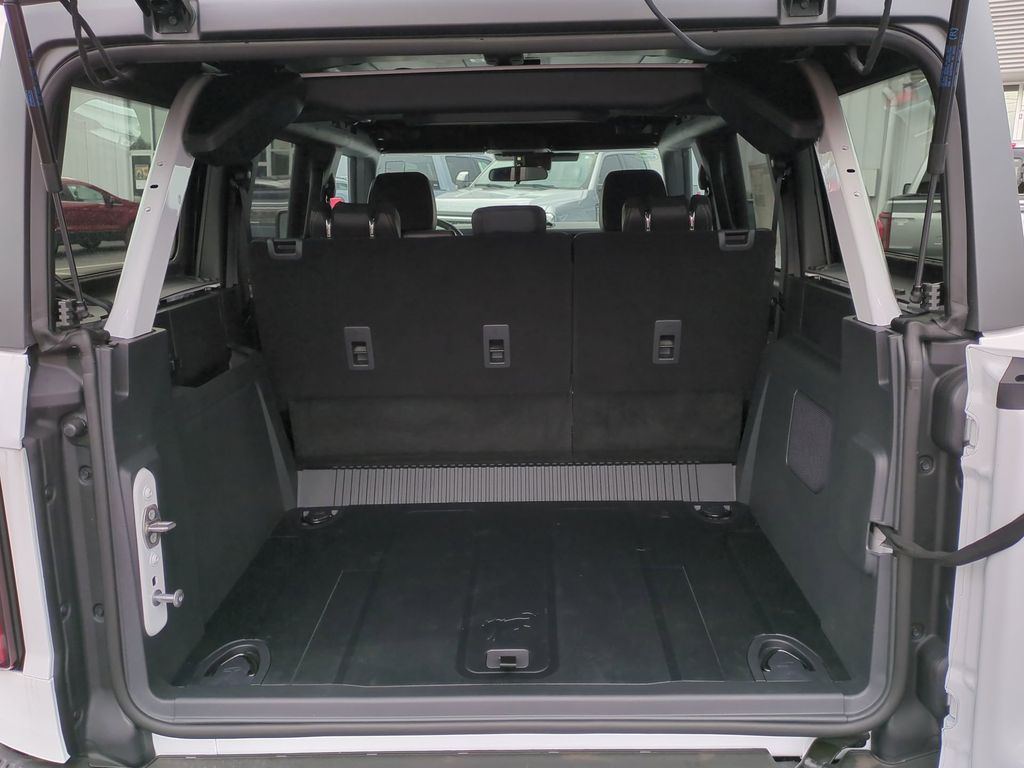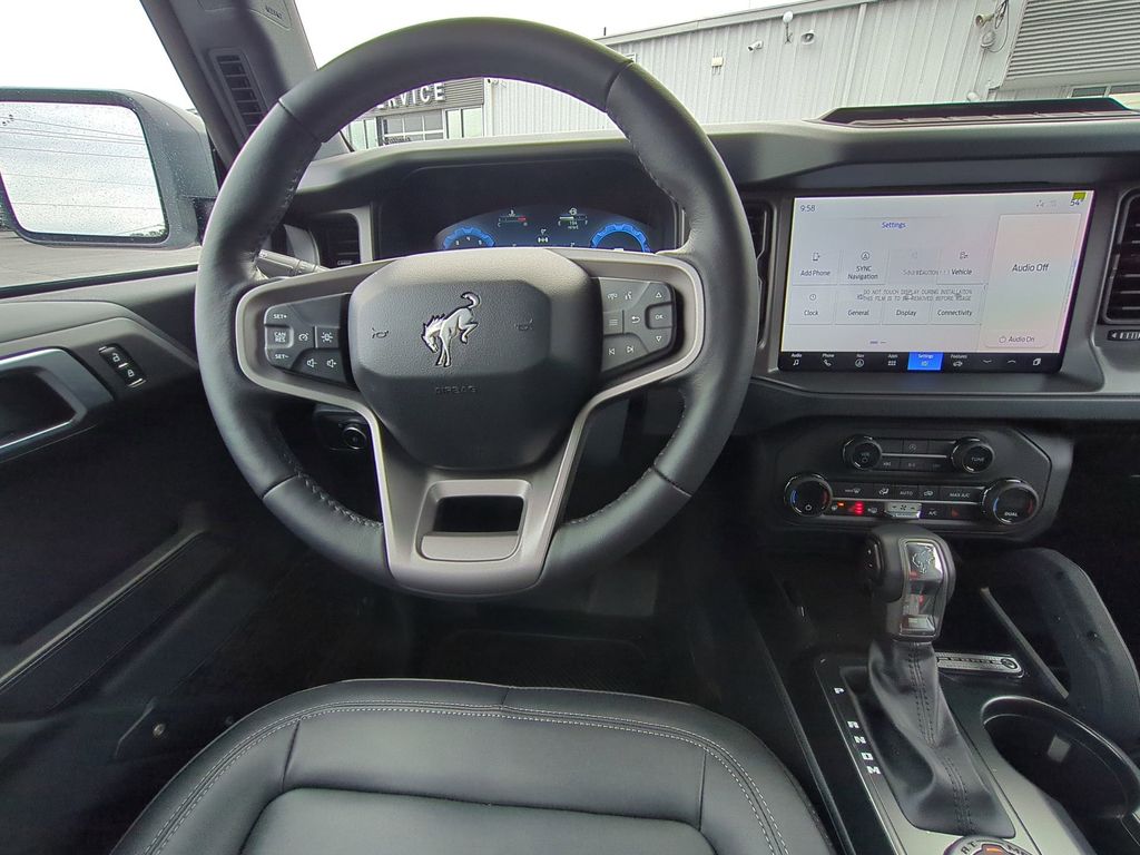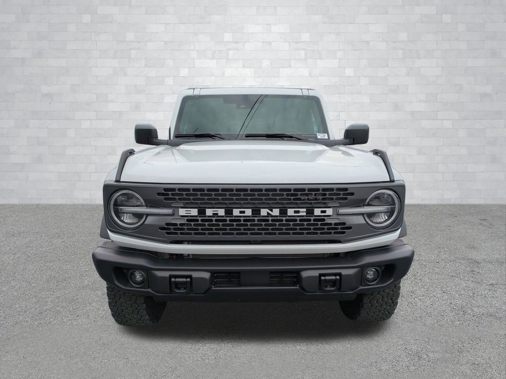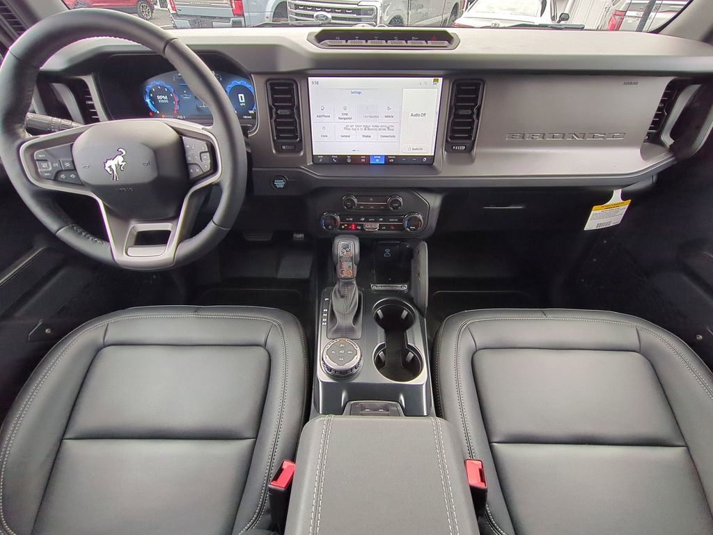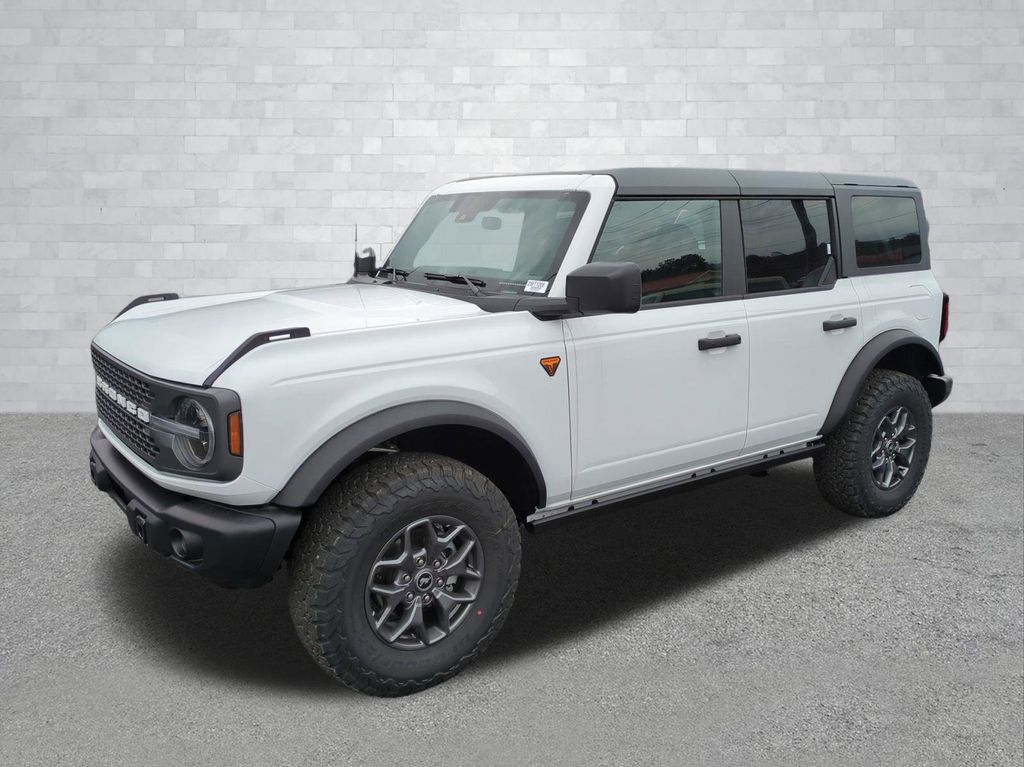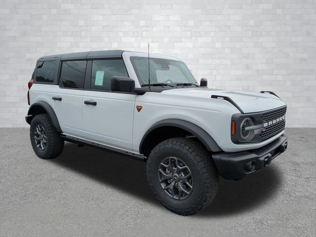 2025 Oxford White 2025 Ford Bronco Badlands 4WD 2.7L EcoBoost V6 4-Wheel Disc Brakes, 4.7 Axle Ratio, 7 Speakers, ABS brakes, Air Conditioning, Alloy wheels, AM/FM radio: SiriusXM with 360L, AM/FM Stereo, Auto High-beam Headlights, Auto-dimming Rear-View mirror, Brake assist, Compass, Delay-off headlights, Driver door bin, Driver vanity mirror, Dual front impact airbags, Dual front side impact airbags, Electronic Stability Control, Emergency communication system: 911 Assist, Exterior Parking Camera Rear, Front anti-roll bar, Front Bucket Seats, Front Center Armrest, Front fog lights, Front reading lights, Front wheel independent suspension, Fully automatic headlights, Heated door mirrors, Heated front seats, Heated steering wheel, Illuminated entry, Integrated roll-over protection, Internet access capable: FordPass Connect, Leather Shift Knob, Low tire pressure warning, Marine Grade Vinyl Heated Bucket Seats, Occupant sensing airbag, Outside temperature display, Overhead airbag, Overhead console, Panic alarm, Passenger door bin, Passenger vanity mirror, Power door mirrors, Power steering, Power windows, Radio data system, Remote keyless entry, Security system, SiriusXM w/360L, Speed control, Split folding rear seat, Steering wheel mounted audio controls, SYNC 4, Tachometer, Telescoping steering wheel, Tilt steering wheel, Traction control, Trip computer, Variably intermittent wipers, Voltmeter, and Wheels: 17" Carbonized Gray-Painted Aluminum Courtesy Ford and Lincoln of Rome 101 Hwy 411 E Rome, Ga 30161 ROMEFORDLINC.COM 706.235.4453.