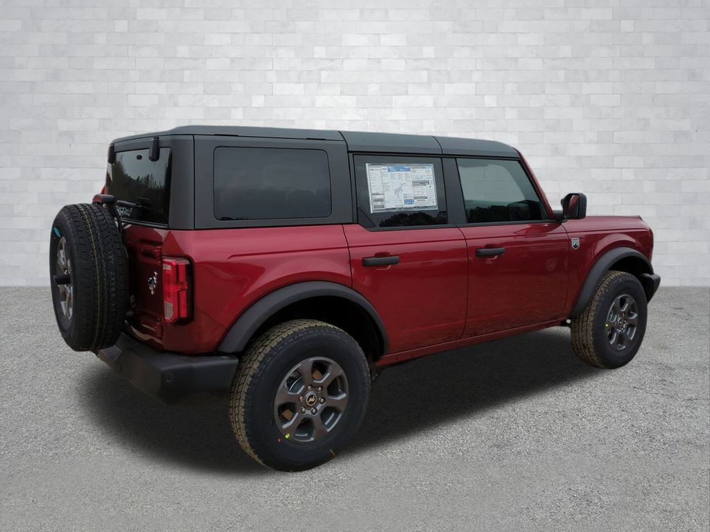 2025 Ruby Red Metallic Tinted Clearcoat 2025 Ford Bronco Big Bend 4WD 2.3L EcoBoost I-4 12" LCD Productivity Touchscreen, Auto LED Headlights, Backup Camera, Hill Start Assist, Power Mirror Package, Power Package, Push Button Start, Remote Start, 4D Sport Utility, 2.3L EcoBoost I-4, 4WD, 2-Door Intelligent Access w/Lock/Unlock, Ambient Footwell Lighting, Carbonized Gray Molded-In-Color Hard Top, Connected Navigation, Dr & Pass Illuminated Sliding Visor Vanity Mirrors, Dual Smart Charging USB Ports, Dual-Zone Electronic Automatic Temperature Control, Equipment Group 222A Mid Package, Front Row Heated Seats, Power Outlet - Back Side of Center Floor Console, Rear Parking Sensors, Rear-Window Defroster & Washer. Equipment Group 222A Mid Package (2-Door Intelligent Access w/Lock/Unlock, Ambient Footwell Lighting, Connected Navigation, Dr & Pass Illuminated Sliding Visor Vanity Mirrors, Dual Smart Charging USB Ports, Dual-Zone Electronic Automatic Temperature Control, Front Row Heated Seats, Power Outlet - Back Side of Center Floor Console, and Rear Parking Sensors), 4D Sport Utility, 2.3L EcoBoost I-4, 4WD, Carbonized Gray Molded-In-Color Hard Top, Rear-Window Defroster & Washer, 4-Wheel Disc Brakes, 4.46 Axle Ratio, 7 Speakers, ABS brakes, Air Conditioning, Alloy wheels, AM/FM radio: SiriusXM with 360L, AM/FM Stereo, Auto High-beam Headlights, Brake assist, Cloth Bucket Seats, Compass, Delay-off headlights, Driver door bin, Driver vanity mirror, Dual front impact airbags, Dual front side impact airbags, Electronic Stability Control, Emergency communication system: 911 Assist, Exterior Parking Camera Rear, Front anti-roll bar, Front Bucket Seats, Front Center Armrest, Front reading lights, Front wheel independent suspension, Fully automatic headlights, Heated door mirrors, Illuminated entry, Integrated roll-over protection, Leather Shift Knob, Low tire pressure warning, Occupant sensing airbag, Outside temperature display, Overhead airbag, Overhead console, Panic alarm, Passenger door bin, Passenger vanity mirror, Power door mirrors, Power steering, Power windows, Radio data system, Remote keyless entry, Security system, SiriusXM w/360L, Speed control, Split folding rear seat, Steering wheel mounted audio controls, SYNC 4, Tachometer, Telescoping steering wheel, Tilt steering wheel, Traction control, Trip computer, Variably intermittent wipers, and Wheels: 17" Carbonized Gray-Painted Aluminum Courtesy Ford and Lincoln of Rome 101 Hwy 411 E Rome, Ga 30161 ROMEFORDLINC.COM 706.235.4453.