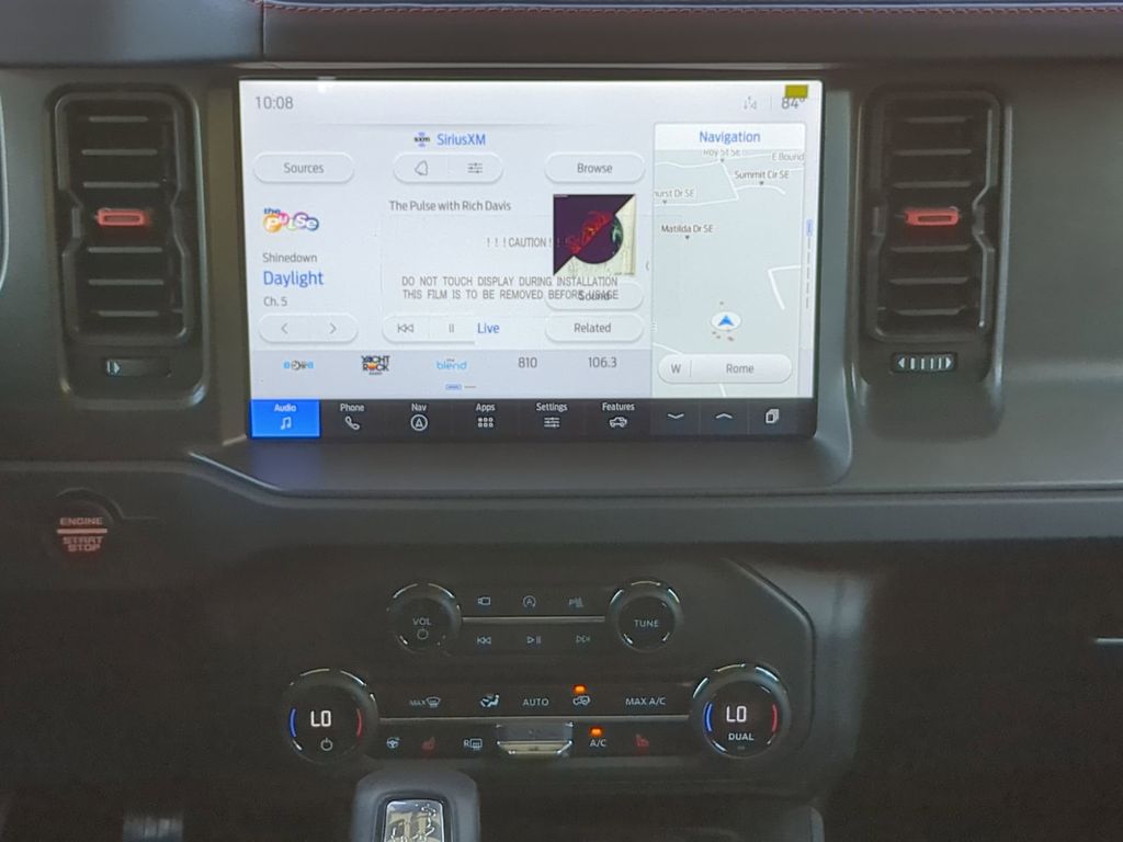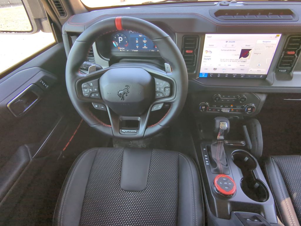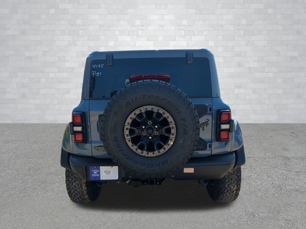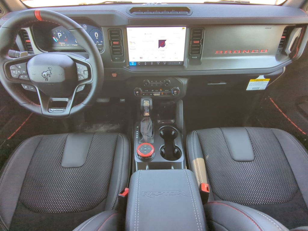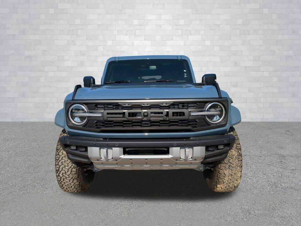 2025 Azure Gray Metallic Tri-Coat 2025 Ford Bronco Raptor 4WD 3.0L EcoBoost V6 12" LCD Productivity Touchscreen, 360-Degree Camera, Auto Emergency Braking, Auto LED Headlights, Backup Camera, Leather Seats, LED Foglights, Luxury Package, Off Road Package, Performance Handling Package, Performance Package, Pre Collision Assist w/ AEB, 4D Sport Utility, 3.0L EcoBoost V6, 10-Speed Automatic, 4WD, Equipment Group 374A Lux Package, Navigation system: Connected Navigation. Equipment Group 374A Lux Package, 4D Sport Utility, 3.0L EcoBoost V6, 10-Speed Automatic, 4WD, Navigation system: Connected Navigation, 12 Speakers, 4-Wheel Disc Brakes, ABS brakes, Air Conditioning, Alloy wheels, AM/FM radio: SiriusXM with 360L, Auto High-beam Headlights, Auto-dimming Rear-View mirror, Automatic temperature control, Brake assist, Compass, Connected Navigation, Convertible HardTop, Convertible roof lining, Delay-off headlights, Driver door bin, Driver vanity mirror, Dual front impact airbags, Dual front side impact airbags, Electronic Stability Control, Emergency communication system: 911 Assist, Exterior Parking Camera Rear, Front anti-roll bar, Front Bucket Seats, Front Center Armrest, Front dual zone A/C, Front fog lights, Front reading lights, Front wheel independent suspension, Fully automatic headlights, Garage door transmitter, Glass rear window, Heated door mirrors, Heated front seats, Heated steering wheel, Illuminated entry, Integrated roll-over protection, Leather Shift Knob, Low tire pressure warning, Marine Grade Vinyl Bucket Seats, Occupant sensing airbag, Outside temperature display, Overhead airbag, Overhead console, Panic alarm, Passenger door bin, Passenger vanity mirror, Power door mirrors, Power steering, Power windows, Radio data system, Radio: B&O Sound System by Bang & Olufsen, Rear anti-roll bar, Rear seat center armrest, Rear window defroster, Rear window wiper, Remote keyless entry, Security system, SiriusXM w/360L, Speed control, Split folding rear seat, Steering wheel mounted audio controls, SYNC 4, Tachometer, Telescoping steering wheel, Tilt steering wheel, Traction control, Trip computer, Turn signal indicator mirrors, Variably intermittent wipers, Voltmeter, and Wheels: 17" Black High Gloss-Painted Aluminum Courtesy Ford and Lincoln of Rome 101 Hwy 411 E Rome, Ga 30161 ROMEFORDLINC.COM 706.235.4453.