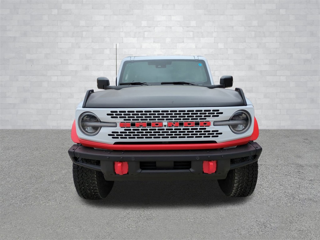 2025 Oxford White 2025 Ford Bronco Stroppe Edition 4WD 2.7L EcoBoost V6 12 Speakers, 4-Wheel Disc Brakes, ABS brakes, Air Conditioning, Alloy wheels, AM/FM radio: SiriusXM with 360L, Auto High-beam Headlights, Auto-dimming Rear-View mirror, Automatic temperature control, Brake assist, Compass, Connected Navigation, Convertible HardTop, Convertible roof lining, Delay-off headlights, Driver door bin, Driver vanity mirror, Dual front impact airbags, Dual front side impact airbags, Electronic Stability Control, Emergency communication system: 911 Assist, Exterior Parking Camera Rear, Front anti-roll bar, Front Bucket Seats, Front Center Armrest, Front dual zone A/C, Front reading lights, Front wheel independent suspension, Fully automatic headlights, Garage door transmitter, Glass rear window, Heated door mirrors, Heated front seats, Heated steering wheel, Illuminated entry, Integrated roll-over protection, Leather Shift Knob, Low tire pressure warning, Navigation system: Connected Navigation, Occupant sensing airbag, Outside temperature display, Overhead airbag, Overhead console, Panic alarm, Passenger door bin, Passenger vanity mirror, Power door mirrors, Power steering, Power windows, Radio data system, Radio: B&O Sound System by Bang & Olufsen, Rear anti-roll bar, Rear window defroster, Rear window wiper, Remote keyless entry, Security system, SiriusXM w/360L, Speed control, Split folding rear seat, Steering wheel mounted audio controls, SYNC 4, Tachometer, Telescoping steering wheel, Tilt steering wheel, Traction control, Trip computer, Turn signal indicator mirrors, Unique Vinyl Bucket Seats, Variably intermittent wipers, Voltmeter, and Wheels: 17" Unique Matte Black-Painted Alloy Courtesy Ford and Lincoln of Rome 101 Hwy 411 E Rome, Ga 30161 ROMEFORDLINC.COM 706.235.4453.