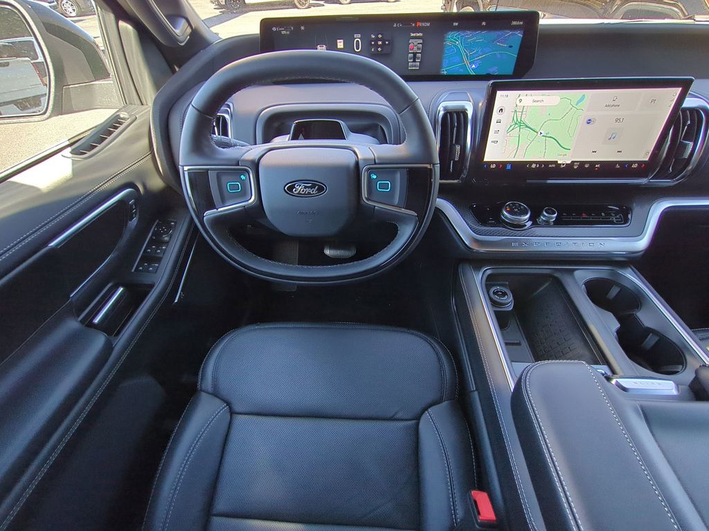 2025 Oxford White 2025 Ford Expedition Platinum 4WD 3.5L V6 24" Cluster Pano Display, 3rd Row Seating, Backup Camera, BlueCruise, Hill Descent Control, Hill Start Assist, Intersection Assist, Leather Seats, Panoramic Sunroof/Moonroof, Power Mirror Package, Power Package, Push Button Start, Tow Package, Trailer Package, Wireless Charging Pad, 4D Sport Utility, 3.5L V6, 10-Speed Automatic, 4WD, 10 Speakers, 2nd Row Power-Folding Captain's Chairs, AM/FM radio: SiriusXM with 360L, Automatic temperature control, Black Belt Molding, Black Expedition Lettering On Hood, Black Headlamp Bezel w/Ebony Trim Applique, Black Platinum Badge On Tailgate, Black Roof Rails, Carbon Black Front Bumper/Fascia, Connectivity Package (One-Time Purchase), Engine Sound Enhancer, Equipment Group 600A Standard Package, Front dual zone A/C, Memory seat, Navigation System, Pedal memory, Radio data system, Radio: B&O Sound System by Bang & Olufsen, Rain sensing wipers, Rear air conditioning, Rear Side Windows Laminated Glass, Rear window wiper, Remote keyless entry, Signature Grille Lighting, SiriusXM w/360L, Speed-Sensitive Wipers, Stealth Appearance Package, Steering wheel memory, Steering wheel mounted audio controls. Connectivity Package (One-Time Purchase), Equipment Group 600A Standard Package (2nd Row Power-Folding Captain's Chairs), Stealth Appearance Package (Black Belt Molding, Black Expedition Lettering On Hood, Black Headlamp Bezel w/Ebony Trim Applique, Black Platinum Badge On Tailgate, Black Roof Rails, Carbon Black Front Bumper/Fascia, Engine Sound Enhancer, Rear Side Windows Laminated Glass, and Signature Grille Lighting), 4D Sport Utility, 3.5L V6, 10-Speed Automatic, 4WD, 10 Speakers, AM/FM radio: SiriusXM with 360L, Automatic temperature control, Front dual zone A/C, Memory seat, Navigation System, Pedal memory, Radio data system, Radio: B&O Sound System by Bang & Olufsen, Rain sensing wipers, Rear air conditioning, Rear window wiper, Remote keyless entry, SiriusXM w/360L, Speed-Sensitive Wipers, Steering wheel memory, Steering wheel mounted audio controls, 3.73 Axle Ratio, 3rd row seats: split-bench, 4-Wheel Disc Brakes, ABS brakes, Adjustable pedals, Air Conditioning, Alloy wheels, Apple CarPlay/Android Auto, Auto High-beam Headlights, Auto-dimming door mirrors, Auto-dimming Rear-View mirror, Brake assist, Bumpers: body-color, Compass, Delay-off headlights, Driver door bin, Driver vanity mirror, Dual front impact airbags, Dual front side impact airbags, Electronic Stability Control, Emergency communication system: 911 Assist, Exterior Parking Camera Rear, Four wheel independent suspension, Front anti-roll bar, Front Bucket Seats, Front Center Armrest, Front reading lights, Fully automatic headlights, Garage door transmitter, Genuine wood dashboard insert, Genuine wood door panel insert, Heated & Ventilated Leather Front Captain's Chairs, Heated door mirrors, Heated front seats, Heated rear seats, Heated steering wheel, Illuminated entry, Leather steering wheel, Low tire pressure warning, Occupant sensing airbag, Outside temperature display, Overhead airbag, Overhead console, Panic alarm, Passenger door bin, Passenger vanity mirror, Power door mirrors, Power driver seat, Power moonroof: Vista Roof, Power passenger seat, Power steering, Power windows, Rear anti-roll bar, Rear reading lights, Rear window defroster, Reclining 3rd row seat, Security system, Speed control, Speed-sensing steering, Split folding rear seat, Spoiler, Tachometer, Telescoping steering wheel, Tilt steering wheel, Traction control, Trip computer, Turn signal indicator mirrors, Ventilated front seats, Voltmeter, and Wheels: 20" Ebony Bright Machined Aluminum Courtesy Ford and Lincoln of Rome 101 Hwy 411 E Rome, Ga 30161 ROMEFORDLINC.COM 706.235.4453.