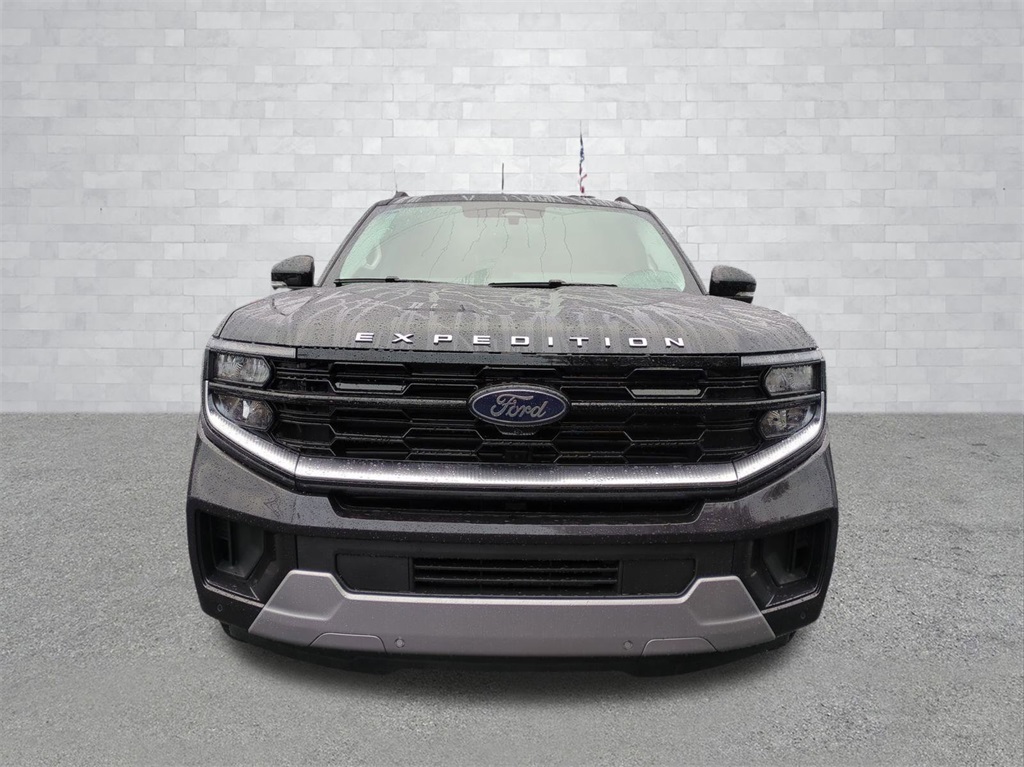 2025 Dark Matter Gray Metallic 2025 Ford Expedition Platinum 4WD EcoBoost 3.5L V6 GTDi DOHC 24V Twin Turbocharged 4WD. 4WD, 10 Speakers, 2nd Row Power-Folding Captain's Chairs, 3.73 Axle Ratio, 3rd row seats: split-bench, 4-Wheel Disc Brakes, ABS brakes, Adjustable pedals, Air Conditioning, Alloy wheels, AM/FM radio: SiriusXM with 360L, Apple CarPlay/Android Auto, Auto High-beam Headlights, Auto-dimming door mirrors, Auto-dimming Rear-View mirror, Automatic temperature control, Brake assist, Bumpers: body-color, Compass, Delay-off headlights, Driver door bin, Driver vanity mirror, Dual front impact airbags, Dual front side impact airbags, Electronic Stability Control, Emergency communication system: 911 Assist, Exterior Parking Camera Rear, Four wheel independent suspension, Front anti-roll bar, Front Bucket Seats, Front Center Armrest, Front dual zone A/C, Front reading lights, Fully automatic headlights, Garage door transmitter, Genuine wood dashboard insert, Genuine wood door panel insert, Heated & Ventilated Leather Front Captain's Chairs, Heated door mirrors, Heated front seats, Heated rear seats, Heated steering wheel, Illuminated entry, Leather steering wheel, Low tire pressure warning, Memory seat, Navigation System, Occupant sensing airbag, Outside temperature display, Overhead airbag, Overhead console, Panic alarm, Passenger door bin, Passenger vanity mirror, Pedal memory, Power door mirrors, Power driver seat, Power moonroof: Vista Roof, Power passenger seat, Power steering, Power windows, Radio data system, Radio: B&O Sound System by Bang & Olufsen, Rain sensing wipers, Rear air conditioning, Rear anti-roll bar, Rear reading lights, Rear window defroster, Rear window wiper, Reclining 3rd row seat, Remote keyless entry, Security system, SiriusXM w/360L, Speed control, Speed-sensing steering, Speed-Sensitive Wipers, Split folding rear seat, Spoiler, Steering wheel memory, Steering wheel mounted audio controls, Tachometer, Telescoping steering wheel, Tilt steering wheel, Traction control, Trip computer, Turn signal indicator mirrors, Variably intermittent wipers, Ventilated front seats, Voltmeter, and Wheels: 20" Ebony Bright Machined Aluminum Courtesy Ford and Lincoln of Rome 101 Hwy 411 E Rome, Ga 30161 ROMEFORDLINC.COM 706.235.4453.