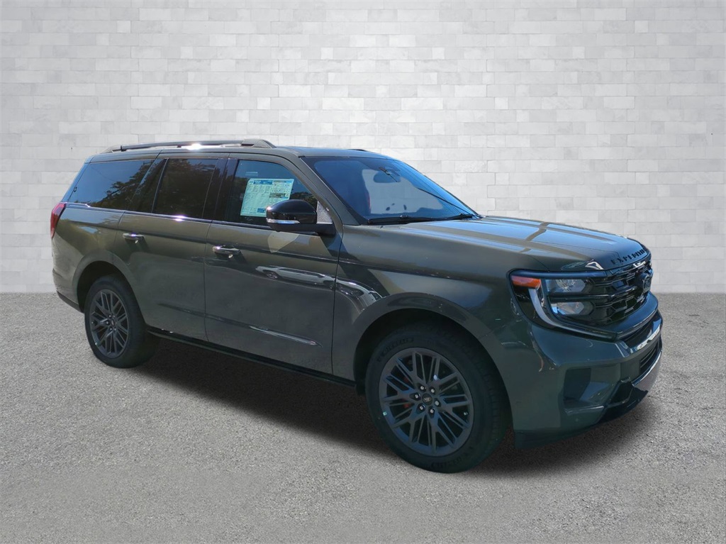 2025 Wild Green 2025 Ford Expedition Platinum 4WD 4WD 3.5L V6 13.2" LCD Centerstack Touchscreen, 24" Cluster Pano Display, 3rd Row Seating, Auto LED Headlights, Backup Camera, Hill Descent Control, Hill Start Assist, Memory Package, Multi Zone Climate Control, Panoramic Sunroof/Moonroof, Power Mirror Package, Power Package, Push Button Start, Rear Climate Package, Tow Package, Trailer Package, Wireless Charging Pad, 4D Sport Utility, 3.5L V6, 10-Speed Automatic, 4WD, 2nd Row Power-Folding Captain's Chairs, Black Belt Molding, Black Expedition Lettering On Hood, Black Headlamp Bezel w/Ebony Trim Applique, Black Platinum Badge On Tailgate, Black Roof Rails, Carbon Black Front Bumper/Fascia, Engine Sound Enhancer, Equipment Group 600A Standard Package, Navigation System, Radio: B&O Sound System by Bang & Olufsen, Rear Side Windows Laminated Glass, Signature Grille Lighting, SiriusXM w/360L, Stealth Appearance Package. Equipment Group 600A Standard Package (2nd Row Power-Folding Captain's Chairs), Stealth Appearance Package (Black Belt Molding, Black Expedition Lettering On Hood, Black Headlamp Bezel w/Ebony Trim Applique, Black Platinum Badge On Tailgate, Black Roof Rails, Carbon Black Front Bumper/Fascia, Engine Sound Enhancer, Rear Side Windows Laminated Glass, and Signature Grille Lighting), 4D Sport Utility, 3.5L V6, 10-Speed Automatic, 4WD, Navigation System, Radio: B&O Sound System by Bang & Olufsen, SiriusXM w/360L, 10 Speakers, 3.73 Axle Ratio, 3rd row seats: split-bench, 4-Wheel Disc Brakes, ABS brakes, Adjustable pedals, Air Conditioning, Alloy wheels, AM/FM radio: SiriusXM with 360L, Apple CarPlay/Android Auto, Auto High-beam Headlights, Auto-dimming door mirrors, Auto-dimming Rear-View mirror, Automatic temperature control, Brake assist, Bumpers: body-color, Compass, Delay-off headlights, Driver door bin, Driver vanity mirror, Dual front impact airbags, Dual front side impact airbags, Electronic Stability Control, Emergency communication system: 911 Assist, Exterior Parking Camera Rear, Four wheel independent suspension, Front anti-roll bar, Front Bucket Seats, Front Center Armrest, Front dual zone A/C, Front reading lights, Fully automatic headlights, Garage door transmitter, Genuine wood dashboard insert, Genuine wood door panel insert, Heated & Ventilated Leather Front Captain's Chairs, Heated door mirrors, Heated front seats, Heated rear seats, Heated steering wheel, Illuminated entry, Leather steering wheel, Low tire pressure warning, Memory seat, Occupant sensing airbag, Outside temperature display, Overhead airbag, Overhead console, Panic alarm, Passenger door bin, Passenger vanity mirror, Pedal memory, Power door mirrors, Power driver seat, Power moonroof: Vista Roof, Power passenger seat, Power steering, Power windows, Radio data system, Rain sensing wipers, Rear air conditioning, Rear anti-roll bar, Rear reading lights, Rear window defroster, Rear window wiper, Reclining 3rd row seat, Remote keyless entry, Security system, Speed control, Speed-sensing steering, Speed-Sensitive Wipers, Split folding rear seat, Spoiler, Steering wheel memory, Steering wheel mounted audio controls, Tachometer, Telescoping steering wheel, Tilt steering wheel, Traction control, Trip computer, Turn signal indicator mirrors, Ventilated front seats, Voltmeter, and Wheels: 20" Ebony Bright Machined Aluminum Courtesy Ford and Lincoln of Rome 101 Hwy 411 E Rome, Ga 30161 ROMEFORDLINC.COM 706.235.4453.