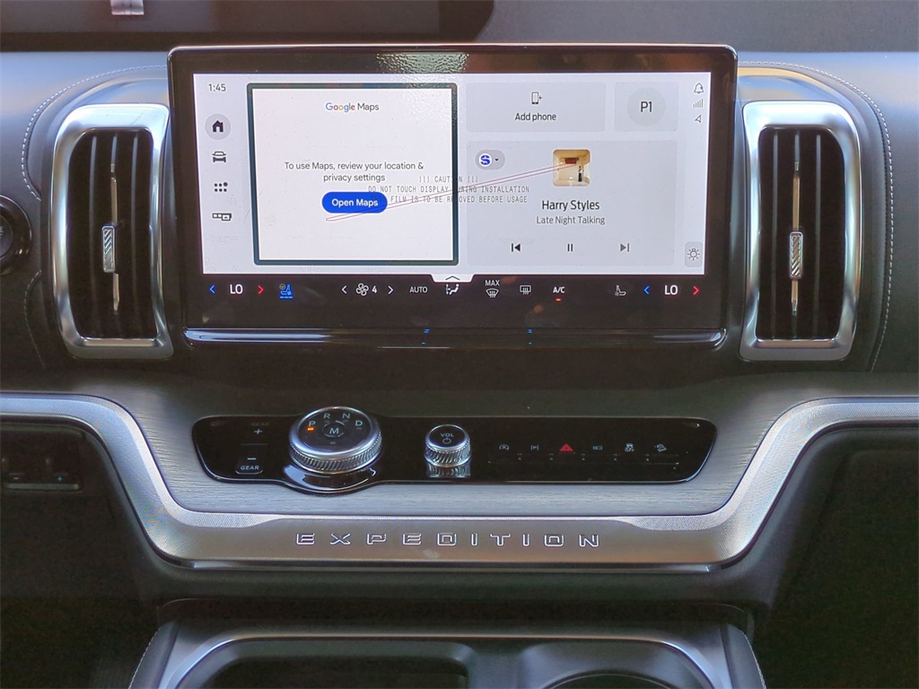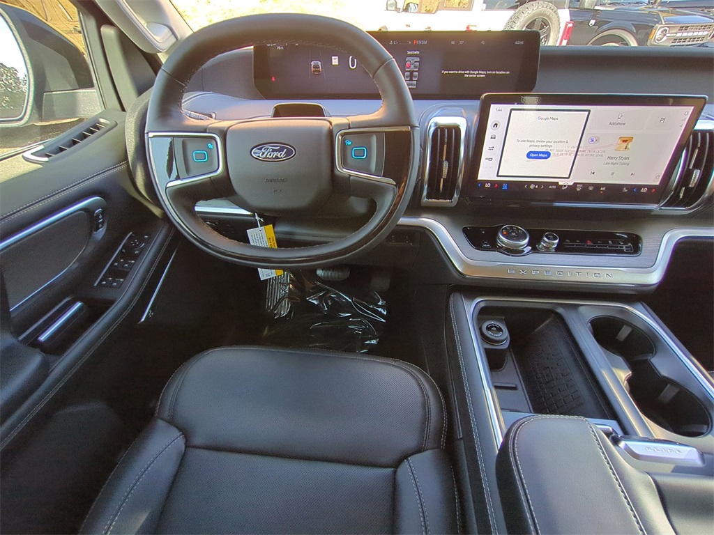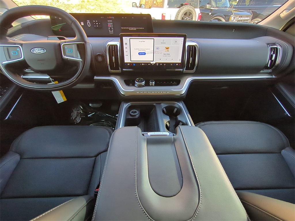2025 Agate Black Metallic 2025 Ford Expedition Platinum 4WD EcoBoost 3.5L V6 GTDi DOHC 24V Twin Turbocharged 4WD. 4WD, 10 Speakers, 2nd Row Power-Folding Captain's Chairs, 3.73 Axle Ratio, 3rd row seats: split-bench, 4-Wheel Disc Brakes, ABS brakes, Adjustable pedals, Air Conditioning, Alloy wheels, AM/FM radio: SiriusXM with 360L, Apple CarPlay/Android Auto, Auto High-beam Headlights, Auto-dimming door mirrors, Auto-dimming Rear-View mirror, Automatic temperature control, Brake assist, Bumpers: body-color, Compass, Delay-off headlights, Driver door bin, Driver vanity mirror, Dual front impact airbags, Dual front side impact airbags, Electronic Stability Control, Emergency communication system: 911 Assist, Exterior Parking Camera Rear, Four wheel independent suspension, Front anti-roll bar, Front Bucket Seats, Front Center Armrest, Front dual zone A/C, Front reading lights, Fully automatic headlights, Garage door transmitter, Genuine wood dashboard insert, Genuine wood door panel insert, Heated & Ventilated Leather Front Captain's Chairs, Heated door mirrors, Heated front seats, Heated rear seats, Heated steering wheel, Illuminated entry, Leather steering wheel, Low tire pressure warning, Memory seat, Navigation System, Occupant sensing airbag, Outside temperature display, Overhead airbag, Overhead console, Panic alarm, Passenger door bin, Passenger vanity mirror, Pedal memory, Power door mirrors, Power driver seat, Power moonroof: Vista Roof, Power passenger seat, Power steering, Power windows, Radio data system, Radio: B&O Sound System by Bang & Olufsen, Rain sensing wipers, Rear air conditioning, Rear anti-roll bar, Rear reading lights, Rear window defroster, Rear window wiper, Reclining 3rd row seat, Remote keyless entry, Security system, SiriusXM w/360L, Speed control, Speed-sensing steering, Speed-Sensitive Wipers, Split folding rear seat, Spoiler, Steering wheel memory, Steering wheel mounted audio controls, Tachometer, Telescoping steering wheel, Tilt steering wheel, Traction control, Trip computer, Turn signal indicator mirrors, Variably intermittent wipers, Ventilated front seats, Voltmeter, and Wheels: 20" Ebony Bright Machined Aluminum Courtesy Ford and Lincoln of Rome 101 Hwy 411 E Rome, Ga 30161 ROMEFORDLINC.COM 706.235.4453.