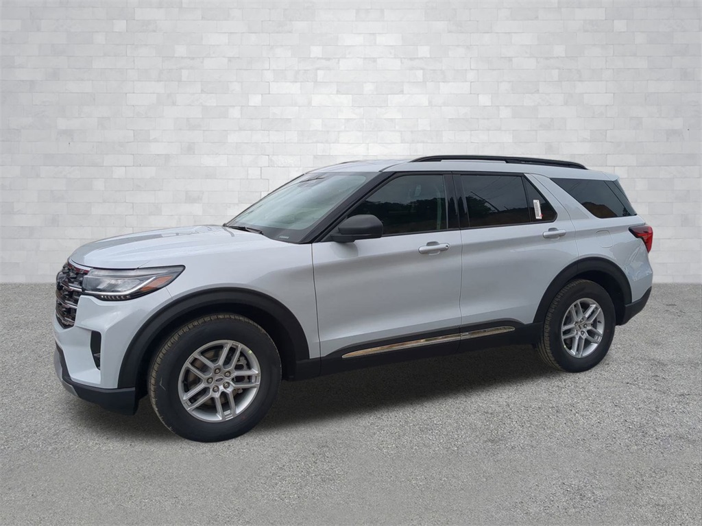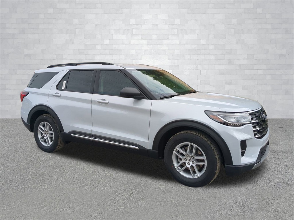 2025 Space White Metallic 2025 Ford Explorer Active RWD 2.3L EcoBoost I-4 3.58 Non-Limited Slip Rear Axle, 3rd row seats: bench, 4-Wheel Disc Brakes, 6 Speakers, ABS brakes, Air Conditioning, Alloy wheels, AM/FM radio: SiriusXM with 360L, AM/FM Stereo, Apple CarPlay/Android Auto, Auto High-beam Headlights, Automatic temperature control, Brake assist, Bumpers: body-color, Compass, Delay-off headlights, Driver door bin, Driver vanity mirror, Dual front impact airbags, Dual front side impact airbags, Electronic Stability Control, Emergency communication system: 911 Assist, Exterior Parking Camera Rear, Four wheel independent suspension, Front anti-roll bar, Front Bucket Seats, Front Center Armrest, Front dual zone A/C, Front reading lights, Fully automatic headlights, Heated door mirrors, Heated front seats, Illuminated entry, Knee airbag, Leather steering wheel, Low tire pressure warning, Navigation System, Occupant sensing airbag, Outside temperature display, Overhead airbag, Overhead console, Panic alarm, Passenger door bin, Passenger vanity mirror, Power door mirrors, Power driver seat, Power Liftgate, Power passenger seat, Power steering, Power windows, Rear air conditioning, Rear anti-roll bar, Rear reading lights, Rear window defroster, Rear window wiper, Remote keyless entry, Security system, Speed control, Speed-sensing steering, Speed-Sensitive Wipers, Split folding rear seat, Spoiler, Steering wheel mounted audio controls, Tachometer, Telescoping steering wheel, Tilt steering wheel, Traction control, Trip computer, Unique Heated Cloth Captain's Chairs, Variably intermittent wipers, and Wheels: 18" Sparkle Silver-Painted Aluminum Courtesy Ford and Lincoln of Rome 101 Hwy 411 E Rome, Ga 30161 ROMEFORDLINC.COM 706.235.4453.