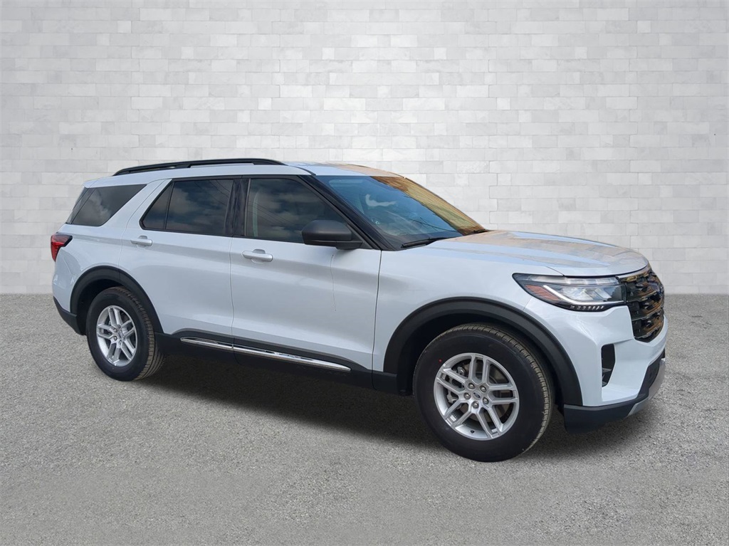 2025 Space White Metallic 2025 Ford Explorer Active RWD 2.3L EcoBoost I-4 12.4" LCD Digital Driver Cluster, 13.2" LCD Centerstack Touchscreen, 3rd Row Seating, Android Auto, Apple Carplay, Auto LED Headlights, Backup Camera, Bluetooth w/ Audio Streaming, Cold Weather Package, Hill Start Assist, Intersection Assist, Multi Zone Climate Control, Power Mirror Package, Power Package, Push Button Start, Remote Start, Side-Wind Stabilization, 4D Sport Utility, 2.3L EcoBoost I-4, 10-Speed Automatic, RWD, Active Comfort Package, Equipment Group 200A Standard Package, Front Fascia, Heated ActiveX Seating Material Captain's Chairs, Heated Steering Wheel, Navigation System, Remote Start System, Second Row HVAC Controls, Universal Garage Door Opener (UGDO). Active Comfort Package (Front Fascia, Heated ActiveX Seating Material Captain's Chairs, Heated Steering Wheel, Remote Start System, Second Row HVAC Controls, and Universal Garage Door Opener (UGDO)), Equipment Group 200A Standard Package, 4D Sport Utility, 2.3L EcoBoost I-4, 10-Speed Automatic, RWD, Navigation System, 3.58 Non-Limited Slip Rear Axle, 3rd row seats: bench, 4-Wheel Disc Brakes, 6 Speakers, ABS brakes, Air Conditioning, Alloy wheels, AM/FM Stereo, Apple CarPlay/Android Auto, Auto High-beam Headlights, Automatic temperature control, Brake assist, Bumpers: body-color, Compass, Delay-off headlights, Driver door bin, Driver vanity mirror, Dual front impact airbags, Dual front side impact airbags, Electronic Stability Control, Emergency communication system: 911 Assist, Exterior Parking Camera Rear, Four wheel independent suspension, Front anti-roll bar, Front Bucket Seats, Front Center Armrest, Front dual zone A/C, Front reading lights, Fully automatic headlights, Heated door mirrors, Heated front seats, Illuminated entry, Knee airbag, Leather steering wheel, Low tire pressure warning, Occupant sensing airbag, Outside temperature display, Overhead airbag, Overhead console, Panic alarm, Passenger door bin, Passenger vanity mirror, Power door mirrors, Power driver seat, Power Liftgate, Power passenger seat, Power steering, Power windows, Rear air conditioning, Rear anti-roll bar, Rear reading lights, Rear window defroster, Rear window wiper, Remote keyless entry, Speed control, Speed-sensing steering, Speed-Sensitive Wipers, Split folding rear seat, Spoiler, Steering wheel mounted audio controls, Tachometer, Telescoping steering wheel, Tilt steering wheel, Traction control, Trip computer, Unique Heated Cloth Captain's Chairs, Variably intermittent wipers, and Wheels: 18" Sparkle Silver-Painted Aluminum Courtesy Ford and Lincoln of Rome 101 Hwy 411 E Rome, Ga 30161 ROMEFORDLINC.COM 706.235.4453.