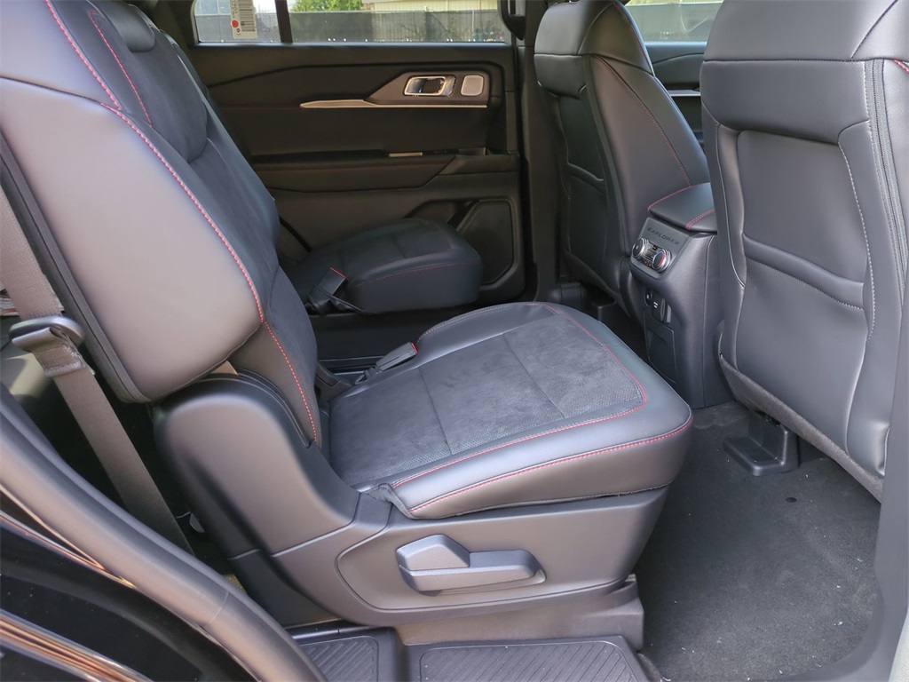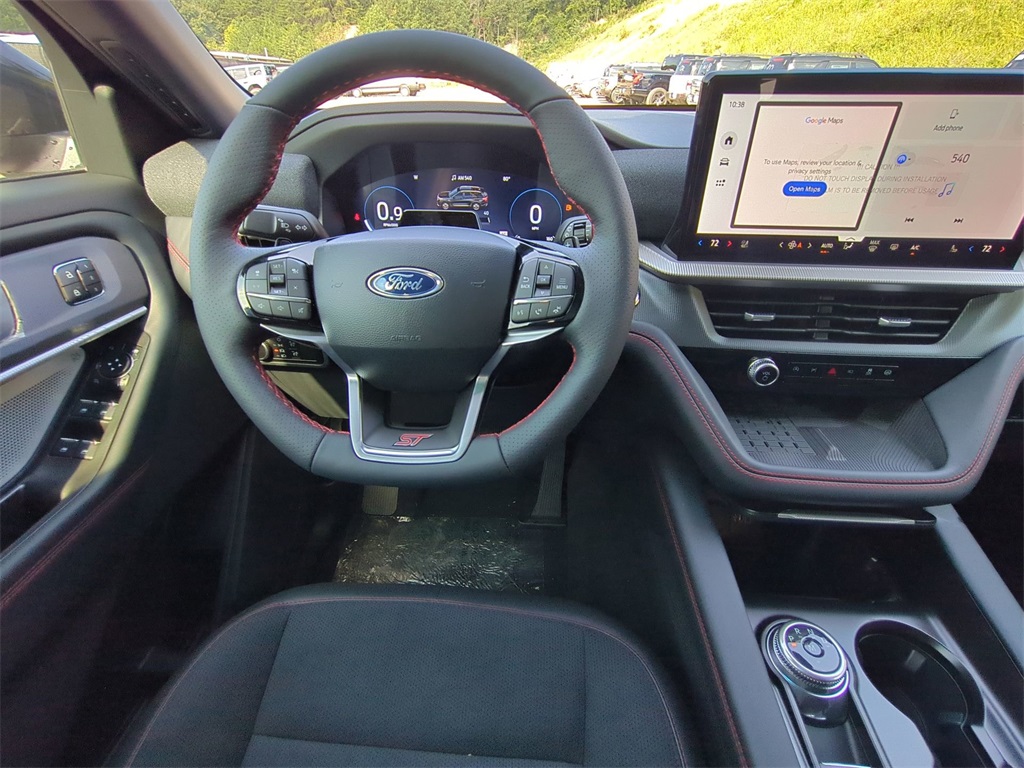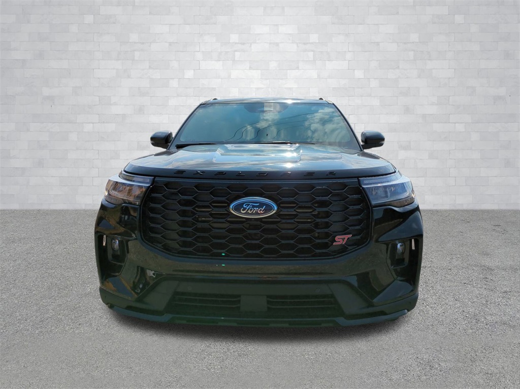 2025 Agate Black Metallic 2025 Ford Explorer ST 4WD 3.0L EcoBoost V6 12.4" LCD Digital Driver Cluster, 13.2" LCD Centerstack Touchscreen, 3rd Row Seating, Android Auto, Apple Carplay, Auto LED Headlights, Backup Camera, BlueCruise, Bluetooth w/ Audio Streaming, Intersection Assist, Multi Zone Climate Control, Panoramic Sunroof/Moonroof, Power Mirror Package, Power Package, Premium Sound Package, Push Button Start, Remote Start, Sport Package, Tow Package, Trailer Package, Wireless Charging Pad, 4D Sport Utility, 3.0L EcoBoost V6, 10-Speed Automatic, 4WD, B&O Sound System by Bang & Olufsen, Equipment Group 400A Standard Package, Multicontour Seats w/Front Active Motion, Navigation System, Panoramic Vista Roof w/Power Shade, Sun and Sound Package. Equipment Group 400A Standard Package, Sun and Sound Package (B&O Sound System by Bang & Olufsen, Multicontour Seats w/Front Active Motion, and Panoramic Vista Roof w/Power Shade), 4D Sport Utility, 3.0L EcoBoost V6, 10-Speed Automatic, 4WD, Navigation System, 10 Speakers, 3.58 Non-Limited Slip Rear Axle, 3rd row seats: bench, 4-Wheel Disc Brakes, ABS brakes, Air Conditioning, Alloy wheels, Apple CarPlay/Android Auto, Auto High-beam Headlights, Auto-dimming door mirrors, Auto-dimming Rear-View mirror, Automatic temperature control, Brake assist, Bumpers: body-color, Compass, Delay-off headlights, Driver door bin, Driver vanity mirror, Dual front impact airbags, Dual front side impact airbags, Electronic Stability Control, Emergency communication system: 911 Assist, Exterior Parking Camera Rear, Four wheel independent suspension, Front anti-roll bar, Front Bucket Seats, Front Center Armrest, Front dual zone A/C, Front fog lights, Front reading lights, Fully automatic headlights, Garage door transmitter, Heated door mirrors, Heated front seats, Heated rear seats, Heated steering wheel, Heated/Ventilated Miko Sport Captain's Chairs, Illuminated entry, Knee airbag, Leather steering wheel, Low tire pressure warning, Memory seat, Occupant sensing airbag, Outside temperature display, Overhead airbag, Overhead console, Panic alarm, Passenger door bin, Passenger vanity mirror, Power door mirrors, Power driver seat, Power Liftgate, Power passenger seat, Power steering, Power windows, Radio: B&O Sound System by Bang & Olufsen, Rain sensing wipers, Rear air conditioning, Rear anti-roll bar, Rear reading lights, Rear window defroster, Rear window wiper, Remote keyless entry, Security system, Speed control, Speed-sensing steering, Speed-Sensitive Wipers, Split folding rear seat, Spoiler, Sport steering wheel, Steering wheel mounted audio controls, Tachometer, Telescoping steering wheel, Tilt steering wheel, Traction control, Trip computer, Turn signal indicator mirrors, Ventilated front seats, and Wheels: 21" Magnetite-Painted Aluminum Courtesy Ford and Lincoln of Rome 101 Hwy 411 E Rome, Ga 30161 ROMEFORDLINC.COM 706.235.4453.