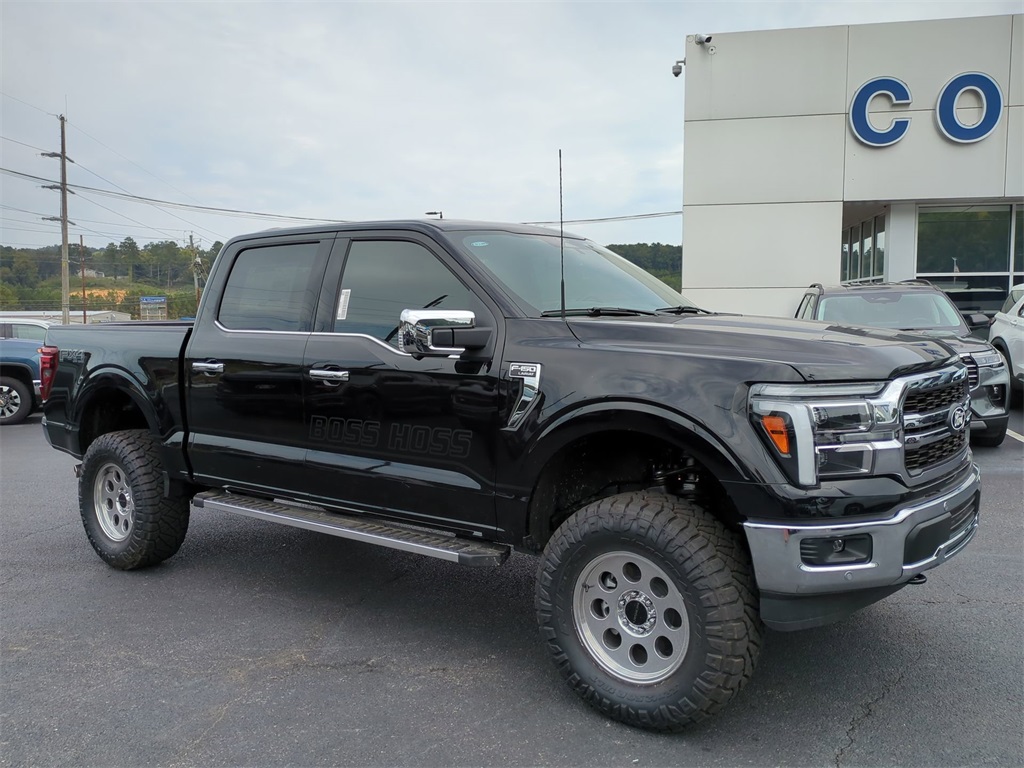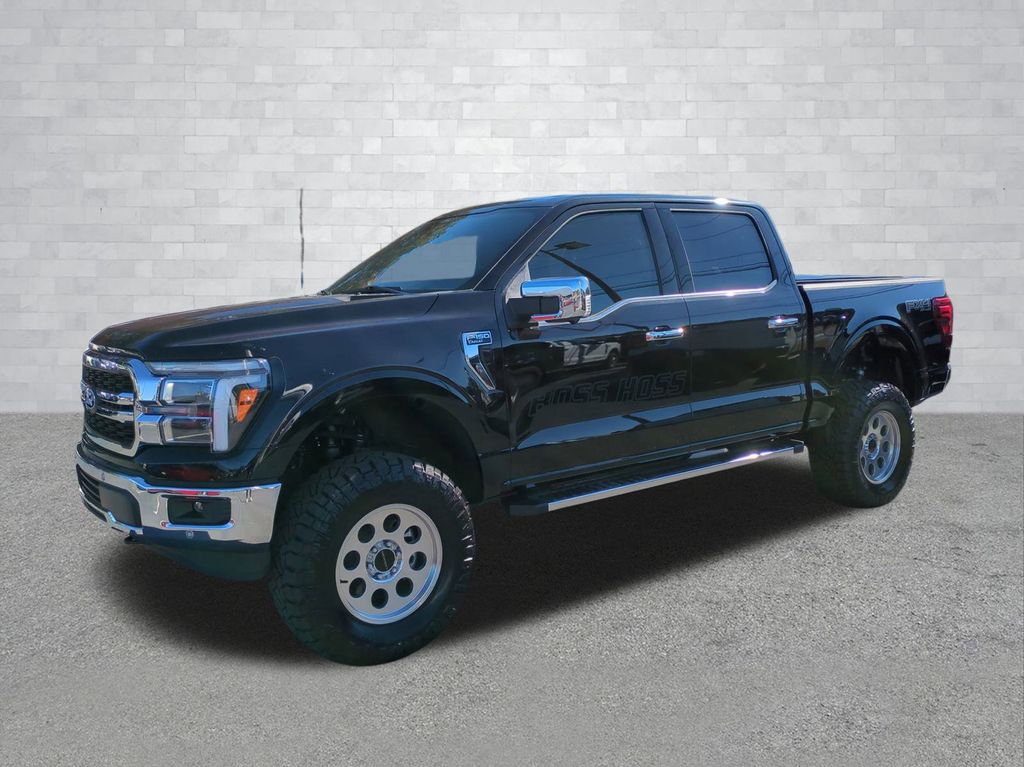 2025 Agate Black Metallic 2025 Ford F-150 Lariat 4WD 5.0L V8 12" LCD Productivity Touchscreen, 360-Degree Camera, 5G WiFi Hotspot Telematics, Adaptive Cruise Control, Auto Emergency Braking, Auto LED Headlights, Backup Camera, Blind Spot Monitoring, BLIS w/ Cross Traffic Alert, Bluetooth w/ Audio Streaming, Lane Keeping System, Lariat Package, Off Road Package, Parking Sensors, Post Collision Braking, Pre Collision Assist w/ AEB, Reverse Brake Assist, Reverse Sensing, Skid Plate Package, Tow Package, Trailer Package, BOSS HOSS EDITION, Supercharger, LIFTED, WHEELS AND TIRES, 6 inch Ready Lift, VISION BULLET 18X9 WHEELS, 4D SuperCrew, 5.0L V8, 10-Speed Automatic, 4WD, 4x4 FX4 Off-Road Bodyside Decal, 6" Angular Bright Anodized Step Bar, Electronic Locking w/3.31 Axle Ratio, Equipment Group 501A Mid, FX4 Off-Road Package, Hill Descent Control, Illuminated Driver & Passenger Visors, Integrated Trailer Brake Controller, Monotube Rear Shocks, Off-Road Tuned Front Shock Absorbers, Power-Sliding Rear Window, Rock Crawl Mode, Tow/Haul Package, Tray Style Floor Liner w/o Carpet Mats, Wheels: 20" Chrome-Like PVD. Equipment Group 501A Mid (6" Angular Bright Anodized Step Bar, Illuminated Driver & Passenger Visors, Power-Sliding Rear Window, and Wheels: 20" Chrome-Like PVD), FX4 Off-Road Package (4x4 FX4 Off-Road Bodyside Decal, Electronic Locking w/3.31 Axle Ratio, Hill Descent Control, Monotube Rear Shocks, Off-Road Tuned Front Shock Absorbers, Rock Crawl Mode, and Tray Style Floor Liner w/o Carpet Mats), Tow/Haul Package (Integrated Trailer Brake Controller), 4D SuperCrew, 5.0L V8, 10-Speed Automatic, 4WD, 4-Wheel Disc Brakes, 8 Speakers, ABS brakes, ActiveX Trimmed Bucket Seats, Adjustable pedals, Air Conditioning, Alloy wheels, AM/FM radio: SiriusXM with 360L, Auto High-beam Headlights, Auto-dimming door mirrors, Auto-dimming Rear-View mirror, Automatic temperature control, Brake assist, Bumpers: chrome, Chrome wheels, Compass, Delay-off headlights, Driver door bin, Driver vanity mirror, Dual front impact airbags, Dual front side impact airbags, Electronic Stability Control, Emergency communication system: SYNC 4 911 Assist, Front anti-roll bar, Front Bucket Seats, Front Center Armrest, Front dual zone A/C, Front fog lights, Front reading lights, Front wheel independent suspension, Fully automatic headlights, Garage door transmitter, Heated door mirrors, Heated front seats, Heated steering wheel, Illuminated entry, Low tire pressure warning, Memory seat, Navigation system: Connected Navigation, Occupant sensing airbag, Outside temperature display, Overhead airbag, Overhead console, Panic alarm, Passenger door bin, Passenger vanity mirror, Pedal memory, Power door mirrors, Power driver seat, Power passenger seat, Power steering, Power windows, Radio data system, Radio: B&O Sound System by Bang & Olufsen, Rain sensing wipers, Rear reading lights, Rear seat center armrest, Rear step bumper, Rear window defroster, Remote keyless entry, Security system, Speed control, Split folding rear seat, Steering wheel mounted audio controls, SYNC 4 w/Enhanced Voice Recognition, Tachometer, Telescoping steering wheel, Tilt steering wheel, Traction control, Trip computer, Turn signal indicator mirrors, Variably intermittent wipers, Ventilated front seats, Voltmeter, and Wheels: 18" Chrome-Like PVD Courtesy Ford and Lincoln of Rome 101 Hwy 411 E Rome, Ga 30161 ROMEFORDLINC.COM 706.235.4453. Price includes dealer added accessories.