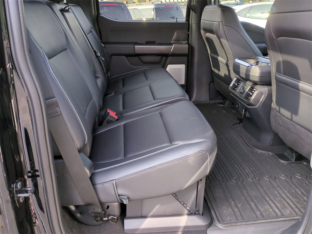2025 Agate Black Metallic 2025 Ford F-150 Lariat 4WD 3.5L PowerBoost Full-Hybrid V6 12" LCD Productivity Touchscreen, 360-Degree Camera, 5G WiFi Hotspot Telematics, Adaptive Cruise Control, Auto Emergency Braking, Auto LED Headlights, Backup Camera, Blind Spot Monitoring, BLIS w/ Cross Traffic Alert, Bluetooth w/ Audio Streaming, Lane Keeping System, Lariat Package, LED Foglights, LED Projector Headlights, Off Road Package, Panoramic Sunroof/Moonroof, Parking Sensors, Post Collision Braking, Power Mirror Package, Power Package, Premium Sound Package, Reverse Brake Assist, Reverse Sensing, Skid Plate Package, Tow Package, Trailer Package, Wireless Charging Pad, 4D SuperCrew, 3.5L PowerBoost Full-Hybrid V6, 10-Speed Automatic, 4WD, 2nd Row Heated Seats, 4 Pickup Box Tie-Down Plates, 4x4 FX4 Off-Road Bodyside Decal, ActiveX Trimmed Bucket Seats (B), Ambient Lighting - Ice Blue Color Only, Bed Utility Package, Black Exterior Badging, Black Grille, Black Taillamp Bezels, Body-Color Front & Rear Bumpers, Body-Color Skull Caps & Door Handles, Console Worksurface, Dark Interior Appliques, Electronic Locking w/3.55 Axle Ratio, Equipment Group 502A High, FX4 Off-Road Package, Gray Box Side Decal, Heads-Up Display, Hill Descent Control, Illuminated Driver & Passenger Visors, Lariat Black Appearance Package, LED Box Lighting, Matte Black Tailgate F-150 Decal, Mobile Office Package, Monotube Rear Shocks, Navigation system: Connected Navigation, Off-Road Tuned Front Shock Absorbers, Partitioned Lockable Rear Storage, Power Tailgate, Power-Sliding Rear Window, Pro Access Tailgate, Radio: B&O Unleashed Sound System by Bang & Olufsen, Rain sensing wipers, Rock Crawl Mode, Tray Style Floor Liner w/o Carpet Mats, Wheels: 20" Chrome-Like PVD, Wireless Charging. Bed Utility Package (4 Pickup Box Tie-Down Plates, LED Box Lighting, Power Tailgate, and Pro Access Tailgate), Equipment Group 502A High (2nd Row Heated Seats, Ambient Lighting - Ice Blue Color Only, Heads-Up Display, Illuminated Driver & Passenger Visors, Power-Sliding Rear Window, Radio: B&O Unleashed Sound System by Bang & Olufsen, and Wheels: 20" Chrome-Like PVD), FX4 Off-Road Package (4x4 FX4 Off-Road Bodyside Decal, Hill Descent Control, Monotube Rear Shocks, Off-Road Tuned Front Shock Absorbers, Rock Crawl Mode, and Tray Style Floor Liner w/o Carpet Mats), Lariat Black Appearance Package (ActiveX Trimmed Bucket Seats (B), Black Exterior Badging, Black Grille, Black Taillamp Bezels, Body-Color Front & Rear Bumpers, Body-Color Skull Caps & Door Handles, Dark Interior Appliques, Gray Box Side Decal, and Matte Black Tailgate F-150 Decal), Mobile Office Package (Console Worksurface, Partitioned Lockable Rear Storage, and Wireless Charging), 4D SuperCrew, 3.5L PowerBoost Full-Hybrid V6, 10-Speed Automatic, 4WD, Electronic Locking w/3.55 Axle Ratio, Navigation system: Connected Navigation, Rain sensing wipers, 4-Wheel Disc Brakes, 8 Speakers, ABS brakes, ActiveX Trimmed Bucket Seats, Adjustable pedals, Air Conditioning, Alloy wheels, AM/FM radio: SiriusXM with 360L, Auto High-beam Headlights, Auto-dimming door mirrors, Auto-dimming Rear-View mirror, Automatic temperature control, Brake assist, Bumpers: chrome, Chrome wheels, Compass, Delay-off headlights, Driver door bin, Driver vanity mirror, Dual front impact airbags, Dual front side impact airbags, Electronic Stability Control, Emergency communication system: SYNC 4 911 Assist, Front anti-roll bar, Front Bucket Seats, Front Center Armrest, Front dual zone A/C, Front fog lights, Front reading lights, Front wheel independent suspension, Fully automatic headlights, Garage door transmitter, Heated door mirrors, Heated front seats, Heated steering wheel, Illuminated entry, Low tire pressure warning, Memory seat, Occupant sensing airbag, Outside temperature display, Overhead airbag, Overhead console, Panic alarm, Passenge Price includes dealer added acce