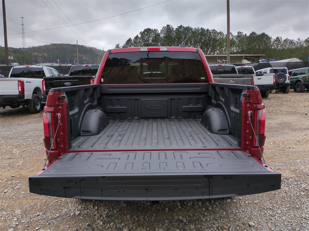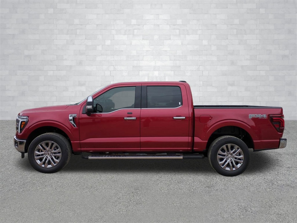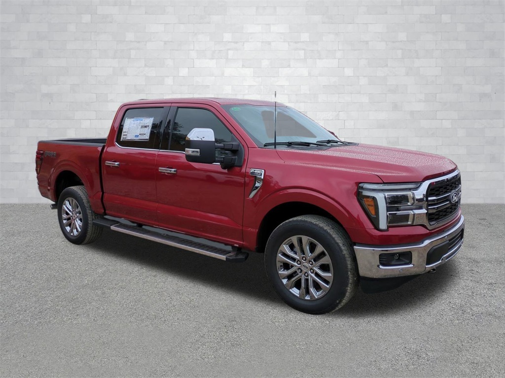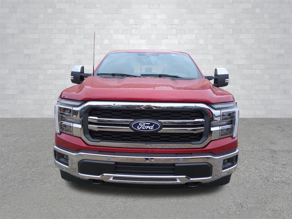 2025 Red Metallic 2025 Ford F-150 Lariat 4WD 5.0L V8 4WD. Equipment Group 502A High (2nd Row Heated Seats, Ambient Lighting - Ice Blue Color Only, Heads-Up Display, Illuminated Driver & Passenger Visors, Power-Sliding Rear Window, Radio: B&O Unleashed Sound System by Bang & Olufsen, and Wheels: 20" Chrome-Like PVD), FX4 Off-Road Package (4x4 FX4 Off-Road Bodyside Decal, Hill Descent Control, Monotube Rear Shocks, Off-Road Tuned Front Shock Absorbers, Rock Crawl Mode, and Tray Style Floor Liner w/o Carpet Mats), Mobile Office Package (Console Worksurface, Partitioned Lockable Rear Storage, and Wireless Charging), Tow/Haul Package, 4WD, 4-Wheel Disc Brakes, 8 Speakers, ABS brakes, ActiveX Trimmed Bucket Seats, Adjustable pedals, Air Conditioning, Alloy wheels, AM/FM radio: SiriusXM with 360L, Auto High-beam Headlights, Auto-dimming door mirrors, Auto-dimming Rear-View mirror, Automatic temperature control, Brake assist, Bumpers: chrome, Chrome wheels, Compass, Delay-off headlights, Driver door bin, Driver vanity mirror, Dual front impact airbags, Dual front side impact airbags, Electronic Stability Control, Emergency communication system: SYNC 4 911 Assist, Front anti-roll bar, Front Bucket Seats, Front Center Armrest, Front dual zone A/C, Front fog lights, Front reading lights, Front wheel independent suspension, Fully automatic headlights, Garage door transmitter, Heated door mirrors, Heated front seats, Heated steering wheel, Illuminated entry, Internet access capable: FordPass Connect 5G, Low tire pressure warning, Memory seat, Navigation system: Connected Navigation, Occupant sensing airbag, Outside temperature display, Overhead airbag, Overhead console, Panic alarm, Passenger door bin, Passenger vanity mirror, Pedal memory, Power door mirrors, Power driver seat, Power passenger seat, Power steering, Power Telescoping/Glass/Folding Trailer Tow Mirrors, Power windows, Radio data system, Radio: B&O Sound System by Bang & Olufsen, Rain sensing wipers, Rear reading lights, Rear seat center armrest, Rear step bumper, Rear window defroster, Remote keyless entry, Security system, Speed control, Split folding rear seat, Steering wheel mounted audio controls, SYNC 4 w/Enhanced Voice Recognition, Tachometer, Telescoping steering wheel, Tilt steering wheel, Tough Bed Spray-In Bedliner, Traction control, Trip computer, Turn signal indicator mirrors, Variably intermittent wipers, Ventilated front seats, Voltmeter, Wheel Well Liner, and Wheels: 18" Chrome-Like PVD Courtesy Ford and Lincoln of Rome 101 Hwy 411 E Rome, Ga 30161 ROMEFORDLINC.COM 706.235.4453. Price includes dealer added accessories.
