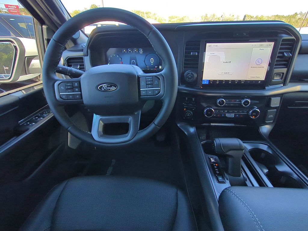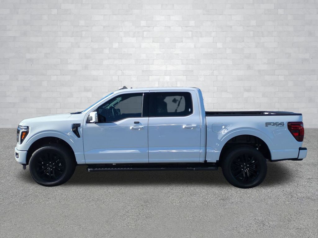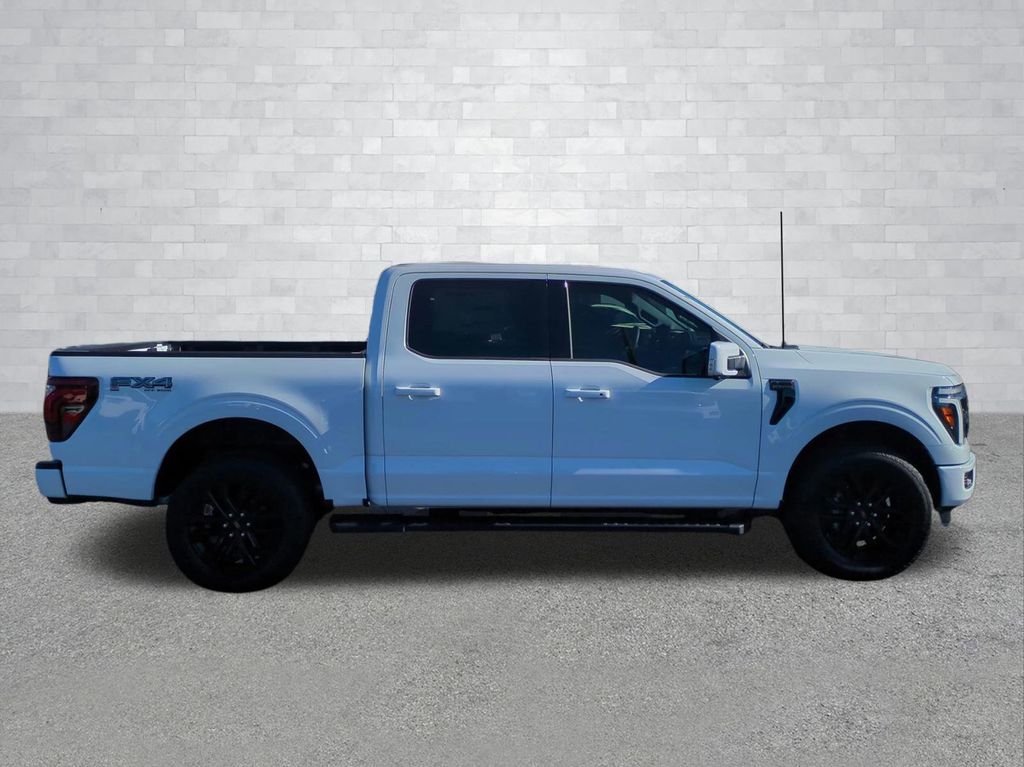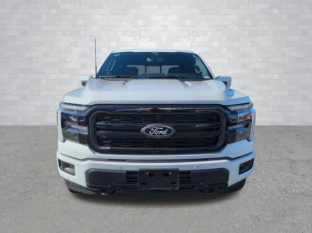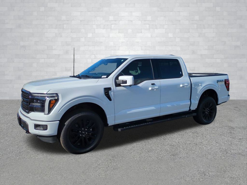 2025 Oxford White 2025 Ford F-150 Lariat 4WD 5.0L V8 4WD. Bed Utility Package (4 Pickup Box Tie-Down Plates, LED Box Lighting, Power Tailgate, and Pro Access Tailgate), Equipment Group 502A High (2nd Row Heated Seats, Ambient Lighting - Ice Blue Color Only, Heads-Up Display, Illuminated Driver & Passenger Visors, Power-Sliding Rear Window, Radio: B&O Unleashed Sound System by Bang & Olufsen, and Wheels: 20" Chrome-Like PVD), FX4 Off-Road Package (4x4 FX4 Off-Road Bodyside Decal, Hill Descent Control, Monotube Rear Shocks, Off-Road Tuned Front Shock Absorbers, Rock Crawl Mode, and Tray Style Floor Liner w/o Carpet Mats), Mobile Office Package (Console Worksurface, Partitioned Lockable Rear Storage, and Wireless Charging), Tow/Haul Package, 4WD, 4-Wheel Disc Brakes, 6" Extended Running Boards, 8 Speakers, ABS brakes, ActiveX Trimmed Bucket Seats, Adjustable pedals, Air Conditioning, Alloy wheels, AM/FM radio: SiriusXM with 360L, Auto High-beam Headlights, Auto-dimming door mirrors, Auto-dimming Rear-View mirror, Automatic temperature control, Brake assist, Bumpers: chrome, Chrome wheels, Compass, Delay-off headlights, Driver door bin, Driver vanity mirror, Dual front impact airbags, Dual front side impact airbags, Electronic Stability Control, Emergency communication system: SYNC 4 911 Assist, Front anti-roll bar, Front Bucket Seats, Front Center Armrest, Front dual zone A/C, Front fog lights, Front License Plate Bracket, Front reading lights, Front wheel independent suspension, Fully automatic headlights, Garage door transmitter, Heated door mirrors, Heated front seats, Heated steering wheel, Illuminated entry, Internet access capable: FordPass Connect 5G, Low tire pressure warning, Memory seat, Navigation system: Connected Navigation, Occupant sensing airbag, Outside temperature display, Overhead airbag, Overhead console, Panic alarm, Passenger door bin, Passenger vanity mirror, Pedal memory, Power door mirrors, Power driver seat, Power passenger seat, Power steering, Power windows, Radio data system, Radio: B&O Sound System by Bang & Olufsen, Rain sensing wipers, Rear reading lights, Rear seat center armrest, Rear step bumper, Rear window defroster, Remote keyless entry, Security system, Speed control, Split folding rear seat, Steering wheel mounted audio controls, SYNC 4 w/Enhanced Voice Recognition, Tachometer, Telescoping steering wheel, Tilt steering wheel, Tough Bed Spray-In Bedliner, Traction control, Trip computer, Turn signal indicator mirrors, Variably intermittent wipers, Ventilated front seats, Voltmeter, Wheel Well Liner, and Wheels: 18" Chrome-Like PVD Courtesy Ford and Lincoln of Rome 101 Hwy 411 E Rome, Ga 30161 ROMEFORDLINC.COM 706.235.4453. Price includes dealer added accessories.