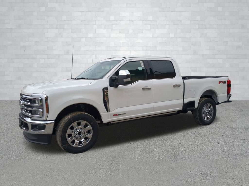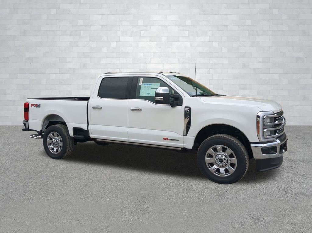 2025 Star White Metallic Tri-Coat 2025 Ford F-350SD Lariat 4WD 6.7L High Output Power Stroke V8 Diesel 12" LCD Productivity Touchscreen, 360-Degree Camera, 5G WiFi Hotspot Telematics, Auto Emergency Braking, Auto LED Headlights, Backup Camera, Blind Spot Monitoring, BLIS w/ Cross Traffic Alert, Bluetooth w/ Audio Streaming, LED Foglights, Off Road Package, Parking Sensors, Power Mirror Package, Power Package, Power Running Boards, Power Sliding Rear Window, Preferred Equipment Package, Premium Sound Package, Pro Trailer Backup Assist, Pro Trailer Hitch Assist, Reverse Brake Assist, Reverse Sensing, Skid Plate Package, Tow Package, Trailer Package, 4D Crew Cab, 6.7L High Output Power Stroke V8 Diesel, 10-Speed Automatic, 4WD, 4-Way Adjustable Headrests, 6" Angular Bright Anodized Step Bars, ABS brakes, Alloy wheels, Chrome Door Handles, Chrome Exhaust Tip, Chrome Package, Compass, Dual AGM 68 AH Battery, Electronic Stability Control, Emergency communication system: SYNC 4 911 Assist, Engine Block Heater, Front dual zone A/C, FX4 Off-Road Package, Head-Up Display, Heated door mirrors, Heated front seats, Heated rear seats, Hill Descent Control, Illuminated entry, Lariat Ultimate Package, Low tire pressure warning, Navigation System, Off-Road Specifically Tuned Shock Absorbers, Order Code 618A, Power-Deployable Running Boards, Privacy Glass, Pro Power Onboard - 2kW, Pro Trailer Backup Assist, Pro Trailer Hitch Assist, Radio: B&O Unleashed Sound System by Bang & Olufsen, Rain sensing wipers, Remote keyless entry, Traction control, Unique Chrome Mirror Caps, Unique FX4 Off-Road Box Decal, Upfitter Switches (6), Wheels: 20" Chrome PVD Aluminum. Chrome Package (6" Angular Bright Anodized Step Bars, Chrome Door Handles, Chrome Exhaust Tip, Unique Chrome Mirror Caps, and Wheels: 20" Chrome PVD Aluminum), FX4 Off-Road Package (Hill Descent Control, Off-Road Specifically Tuned Shock Absorbers, and Unique FX4 Off-Road Box Decal), Lariat Ultimate Package (4-Way Adjustable Headrests, Head-Up Display, Power-Deployable Running Boards, Privacy Glass, Pro Trailer Backup Assist, Pro Trailer Hitch Assist, and Radio: B&O Unleashed Sound System by Bang & Olufsen), Order Code 618A (Flow-Through Console), 4D Crew Cab, 6.7L High Output Power Stroke V8 Diesel, 10-Speed Automatic, 4WD, ABS brakes, Alloy wheels, Compass, Dual AGM 68 AH Battery, Electronic Stability Control, Emergency communication system: SYNC 4 911 Assist, Engine Block Heater, Front dual zone A/C, Heated door mirrors, Heated front seats, Heated rear seats, Illuminated entry, Low tire pressure warning, Navigation System, Pro Power Onboard - 2kW, Rain sensing wipers, Remote keyless entry, Traction control, Upfitter Switches (6), 190 Amp Alternator, 4-Wheel Disc Brakes, 8 Speakers, Adjustable pedals, Air Conditioning, AM/FM radio: SiriusXM with 360L, Auto High-beam Headlights, Auto-dimming Rear-View mirror, Automatic temperature control, Brake assist, Bumpers: chrome, Delay-off headlights, Driver door bin, Driver vanity mirror, Dual front impact airbags, Dual front side impact airbags, Front anti-roll bar, Front Bucket Seats, Front Center Armrest, Front fog lights, Front reading lights, Fully automatic headlights, Garage door transmitter, Heated steering wheel, Memory seat, Outside temperature display, Overhead airbag, Overhead console, Panic alarm, Passenger door bin, Passenger vanity mirror, Pedal memory, Power door mirrors, Power driver seat, Power passenger seat, Power steering, Power windows, Rear Parking Sensors, Rear reading lights, Rear seat center armrest, Rear step bumper, Rear window defroster, Security system, Speed control, Split folding rear seat, Steering wheel mounted audio controls, Tachometer, Telescoping steering wheel, Tilt steering wheel, Trip computer, Turn signal indicator mirrors, and Ventilated front seats Courtesy Ford and Lincoln of Rome 101 Hwy 411 E Rome, Ga 30161 ROMEFORDLI