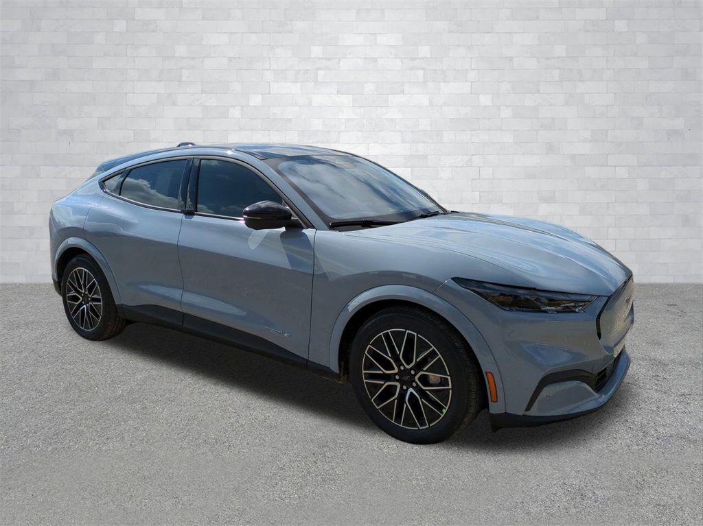 2025 Glacier Gray Metallic TriCoat 2025 Ford Mustang Mach-E Premium RWD Electric Motor 10.2" Digital Driver Cluster, 15.5" Color Touchscreen, 360-Degree Camera, Auto LED Headlights, Backup Camera, BlueCruise, LED Projector Headlights, Panoramic Sunroof/Moonroof, Premium Sound Package, Wireless Charging Pad, 4D Sport Utility, Electric Motor, Single-Speed Automatic, RWD, Equipment Group 300A Standard Package, Mobile Power Cord (120V/240V), NACS Fast Charging Adapter, Navigation system: Connected Navigation. Equipment Group 300A Standard Package, 4D Sport Utility, Electric Motor, Single-Speed Automatic, RWD, Mobile Power Cord (120V/240V), NACS Fast Charging Adapter, Navigation system: Connected Navigation, 10 Speakers, 4-Wheel Disc Brakes, ABS brakes, Air Conditioning, Alloy wheels, AM/FM radio: SiriusXM with 360L, Apple CarPlay/Android Auto, Auto High-beam Headlights, Auto-dimming Rear-View mirror, Automatic temperature control, Brake assist, Bumpers: body-color, Compass, Delay-off headlights, Driver door bin, Driver vanity mirror, Dual front impact airbags, Dual front side impact airbags, Electronic Stability Control, Emergency communication system: 911 Assist, Exterior Parking Camera Rear, Four wheel independent suspension, Front anti-roll bar, Front Bucket Seats, Front Center Armrest, Front dual zone A/C, Front reading lights, Fully automatic headlights, Garage door transmitter, Heated door mirrors, Heated front seats, Heated steering wheel, Heated/Ventilated Perforated ActiveX Bucket Seats, Illuminated entry, Knee airbag, Low tire pressure warning, Memory seat, Occupant sensing airbag, Outside temperature display, Overhead airbag, Overhead console, Panic alarm, Passenger door bin, Passenger vanity mirror, Power door mirrors, Power driver seat, Power Liftgate, Power passenger seat, Power steering, Power windows, Radio data system, Radio: B&O Sound System by Bang & Olufsen, Rain sensing wipers, Rear anti-roll bar, Rear seat center armrest, Rear side impact airbag, Rear window defroster, Rear window wiper, Remote keyless entry, Security system, SiriusXM w/360L, Speed control, Speed-sensing steering, Speed-Sensitive Wipers, Split folding rear seat, Spoiler, Steering wheel mounted audio controls, SYNC 4A w/Enhanced Voice Recognition, Telescoping steering wheel, Tilt steering wheel, Traction control, Trip computer, Turn signal indicator mirrors, Variably intermittent wipers, Ventilated front seats, and Wheels: 19" Bright Machined-Face Aluminum Courtesy Ford and Lincoln of Rome 101 Hwy 411 E Rome, Ga 30161 ROMEFORDLINC.COM 706.235.4453.
