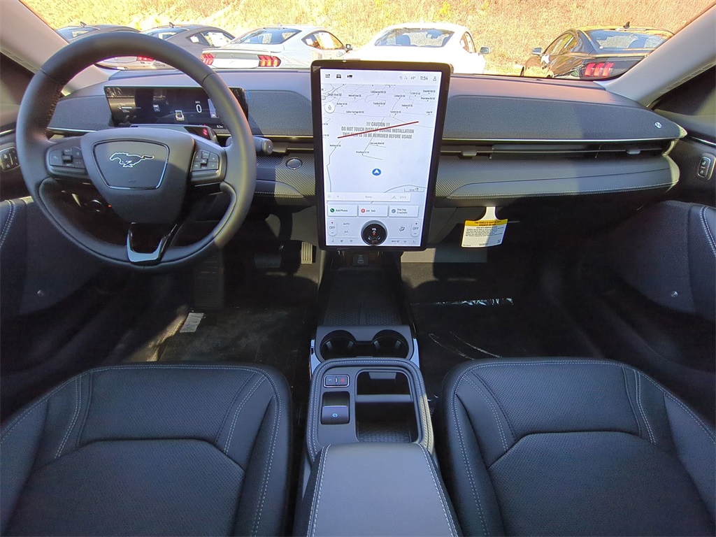 2025 Shadow Black 2025 Ford Mustang Mach-E Premium RWD Dual Electric Motor 10.2" Digital Driver Cluster, 15.5" Color Touchscreen, 360-Degree Camera, LED Projector Headlights, Panoramic Sunroof/Moonroof, Premium Sound Package, Wireless Charging Pad, 4D Sport Utility, Dual Electric Motor, Single-Speed Automatic, RWD, Apple CarPlay/Android Auto, Equipment Group 300A Standard Package, Mobile Power Cord (120V/240V), NACS Fast Charging Adapter, Navigation system: Connected Navigation. Equipment Group 300A Standard Package, 4D Sport Utility, Dual Electric Motor, Single-Speed Automatic, RWD, Apple CarPlay/Android Auto, Mobile Power Cord (120V/240V), NACS Fast Charging Adapter, Navigation system: Connected Navigation, 10 Speakers, 4-Wheel Disc Brakes, ABS brakes, Air Conditioning, Alloy wheels, AM/FM radio: SiriusXM with 360L, Auto High-beam Headlights, Auto-dimming Rear-View mirror, Automatic temperature control, Brake assist, Bumpers: body-color, Compass, Delay-off headlights, Driver door bin, Driver vanity mirror, Dual front impact airbags, Dual front side impact airbags, Electronic Stability Control, Emergency communication system: 911 Assist, Exterior Parking Camera Rear, Four wheel independent suspension, Front anti-roll bar, Front Bucket Seats, Front Center Armrest, Front dual zone A/C, Front reading lights, Fully automatic headlights, Garage door transmitter, Heated door mirrors, Heated front seats, Heated steering wheel, Heated/Ventilated Perforated ActiveX Bucket Seats, Illuminated entry, Knee airbag, Low tire pressure warning, Memory seat, Occupant sensing airbag, Outside temperature display, Overhead airbag, Overhead console, Panic alarm, Passenger door bin, Passenger vanity mirror, Power door mirrors, Power driver seat, Power Liftgate, Power passenger seat, Power steering, Power windows, Radio data system, Radio: B&O Sound System by Bang & Olufsen, Rain sensing wipers, Rear anti-roll bar, Rear seat center armrest, Rear side impact airbag, Rear window defroster, Rear window wiper, Remote keyless entry, Security system, SiriusXM w/360L, Speed control, Speed-sensing steering, Speed-Sensitive Wipers, Split folding rear seat, Spoiler, Steering wheel mounted audio controls, SYNC 4A w/Enhanced Voice Recognition, Telescoping steering wheel, Tilt steering wheel, Traction control, Trip computer, Turn signal indicator mirrors, Ventilated front seats, and Wheels: 19" Bright Machined-Face Aluminum Courtesy Ford and Lincoln of Rome 101 Hwy 411 E Rome, Ga 30161 ROMEFORDLINC.COM 706.235.4453.
