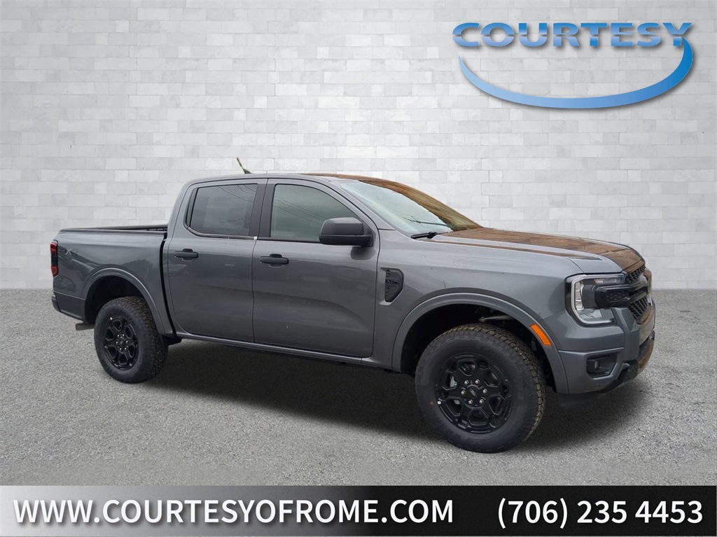 2025 Carbonized Gray Metallic 2025 Ford Ranger XLT 4WD EcoBoost 2.3L I4 GTDi DOHC Turbocharged VCT Auto Emergency Braking, Auto LED Headlights, Backup Camera, Blind Spot Monitoring, BLIS w/ Cross Traffic Alert, Bluetooth w/ Audio Streaming, Lane Keeping System, Pre Collision Assist w/ AEB, XLT Package, 4D Crew Cab, EcoBoost 2.3L I4 GTDi DOHC Turbocharged VCT, 10-Speed Automatic, 4WD, Black Appearance Package, Black Center Bar & Surround Grille, Black Rear Bumper, Body-Color Painted Front Fascia, Class IV Trailer Hitch Receiver, Front & Rear Black Ford Ovals, Gray Painted Center Bar & Grille Surround, Gray Painted Front Fascia & Rear Bumper, Navigation system: Connected Navigation, Painted Body-Color Wheel Lip Molding, Sport Appearance Package, Sport Box Decal, Trailer Tow Package, Unique Carpet Mats. Black Appearance Package (Black Center Bar & Surround Grille, Black Rear Bumper, Body-Color Painted Front Fascia, Front & Rear Black Ford Ovals, Painted Body-Color Wheel Lip Molding, and Unique Carpet Mats), Sport Appearance Package (Gray Painted Center Bar & Grille Surround, Gray Painted Front Fascia & Rear Bumper, and Sport Box Decal), Trailer Tow Package (Class IV Trailer Hitch Receiver), 4D Crew Cab, EcoBoost 2.3L I4 GTDi DOHC Turbocharged VCT, 10-Speed Automatic, 4WD, Navigation system: Connected Navigation, 3.73 Axle Ratio, 4-Wheel Disc Brakes, 6 Speakers, ABS brakes, Air Conditioning, Alloy wheels, AM/FM radio: SiriusXM, AM/FM Stereo, Auto High-beam Headlights, Auto-dimming Rear-View mirror, Brake assist, Cloth Front Bucket Seats, Compass, Delay-off headlights, Driver door bin, Driver vanity mirror, Dual front impact airbags, Dual front side impact airbags, Electronic Stability Control, Emergency communication system: SYNC 4 911 Assist, Front anti-roll bar, Front Bucket Seats, Front Center Armrest, Front fog lights, Front reading lights, Front wheel independent suspension, Fully automatic headlights, Illuminated entry, Leather Shift Knob, Low tire pressure warning, Occupant sensing airbag, Outside temperature display, Overhead airbag, Overhead console, Panic alarm, Passenger door bin, Passenger vanity mirror, Power door mirrors, Power steering, Power windows, Rear reading lights, Rear seat center armrest, Rear step bumper, Rear window defroster, Remote keyless entry, Security system, SiriusXM Satellite Radio, Speed control, Speed-sensing steering, Steering wheel mounted audio controls, SYNC 4A w/Connected Navigation, Telescoping steering wheel, Tilt steering wheel, Traction control, Trip computer, Variably intermittent wipers, Voltmeter, and Wheels: 17" Gray-Painted Aluminum Courtesy Ford and Lincoln of Rome 101 Hwy 411 E Rome, Ga 30161 ROMEFORDLINC.COM 706.235.4453.