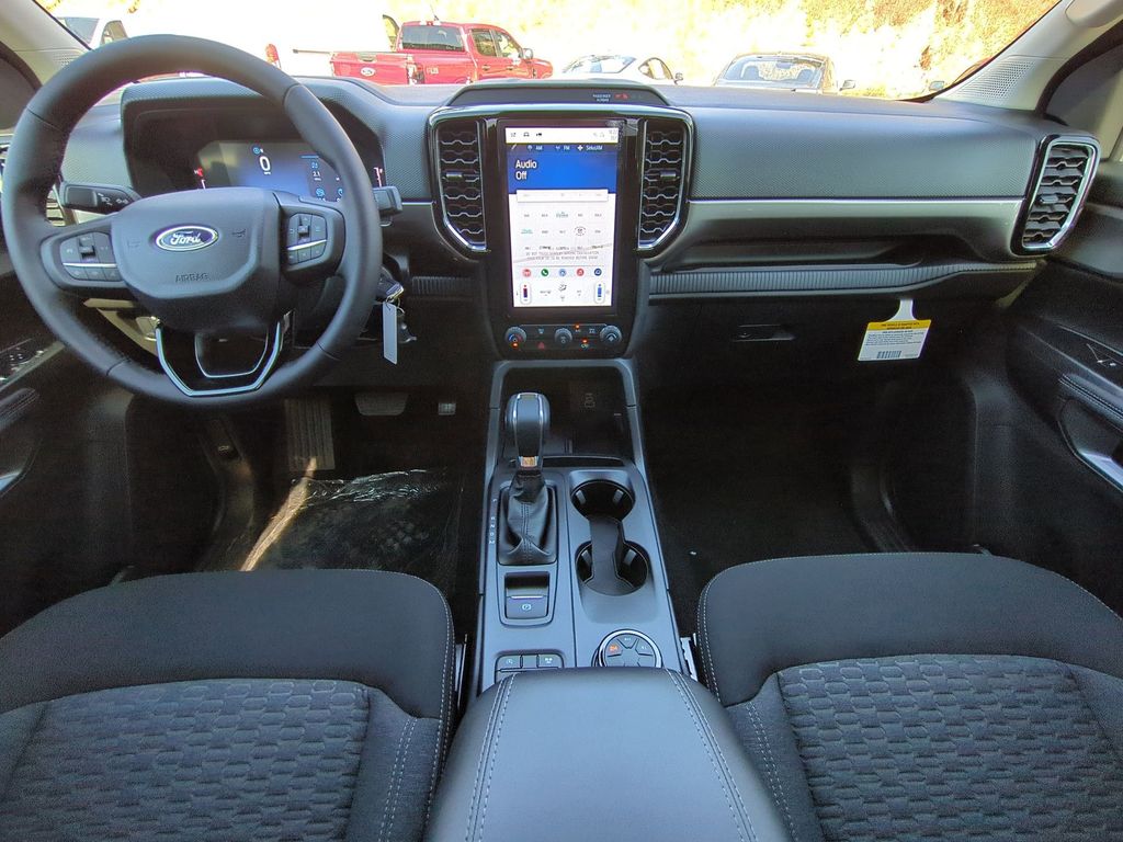 2025 Shadow Black 2025 Ford Ranger XLT 4WD EcoBoost 2.3L I4 GTDi DOHC Turbocharged VCT 4WD. Equipment Group 300A Standard, Sport Appearance Package (Gray Painted Center Bar & Grille Surround, Gray Painted Front Fascia & Rear Bumper, and Sport Box Decal), Trailer Tow Package (Class IV Trailer Hitch Receiver), 4WD, 4-Wheel Disc Brakes, 6 Speakers, ABS brakes, Air Conditioning, Alloy wheels, AM/FM radio: SiriusXM, AM/FM Stereo, Auto High-beam Headlights, Auto-dimming Rear-View mirror, Brake assist, Cloth Front Bucket Seats, Compass, Delay-off headlights, Driver door bin, Driver vanity mirror, Dual front impact airbags, Dual front side impact airbags, Electronic Stability Control, Emergency communication system: SYNC 4 911 Assist, Front anti-roll bar, Front Bucket Seats, Front Center Armrest, Front fog lights, Front License Plate Bracket, Front reading lights, Front wheel independent suspension, Fully automatic headlights, Illuminated entry, Internet access capable: FordPass Connect 4G, Leather Shift Knob, Low tire pressure warning, Navigation system: Connected Navigation, Occupant sensing airbag, Outside temperature display, Overhead airbag, Overhead console, Panic alarm, Passenger door bin, Passenger vanity mirror, Power door mirrors, Power steering, Power windows, Rear reading lights, Rear seat center armrest, Rear step bumper, Rear window defroster, Remote keyless entry, Security system, SiriusXM Satellite Radio, Speed control, Speed-sensing steering, Steering wheel mounted audio controls, SYNC 4A w/Connected Navigation, Telescoping steering wheel, Tilt steering wheel, Traction control, Trip computer, Variably intermittent wipers, Voltmeter, and Wheels: 17" Gray-Painted Aluminum Courtesy Ford and Lincoln of Rome 101 Hwy 411 E Rome, Ga 30161 ROMEFORDLINC.COM 706.235.4453.