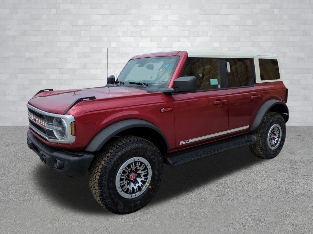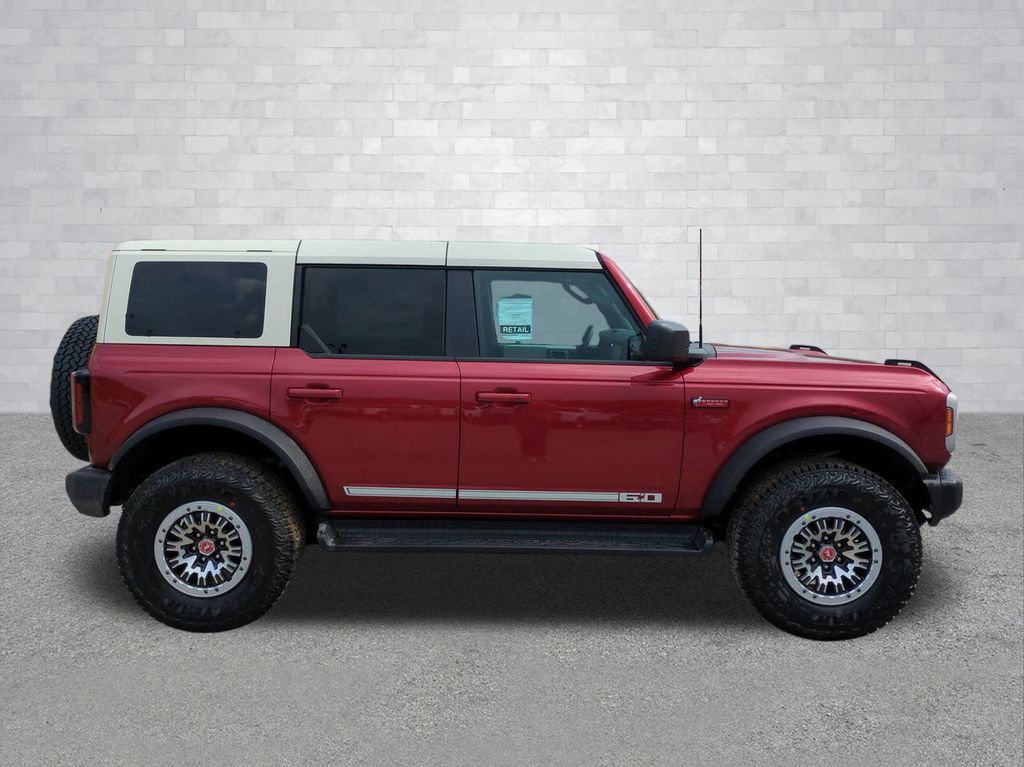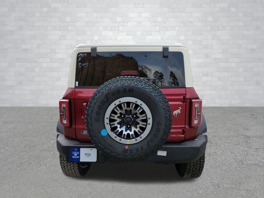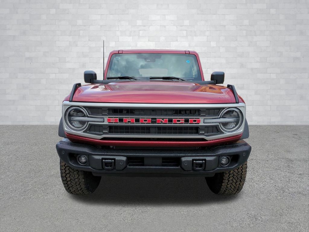 2026 Ruby Red Metallic Tinted Clearcoat 2026 Ford Bronco Outer Banks 4WD 2.7L EcoBoost V6 Ford Connectivity Package (1-Year Included), 18" Bright Machined Aluminum Wheels, 3.73 Axle Ratio, 4-Wheel Disc Brakes, 7 Speakers, ABS brakes, Air Conditioning, Alloy wheels, AM/FM radio: SiriusXM with 360L, AM/FM Stereo, Auto High-beam Headlights, Auto-dimming Rear-View mirror, Automatic temperature control, Brake assist, Compass, Connected Navigation, Delay-off headlights, Driver door bin, Driver vanity mirror, Dual front impact airbags, Dual front side impact airbags, Electronic Stability Control, Emergency communication system: 911 Assist, Exterior Parking Camera Rear, Front anti-roll bar, Front Bucket Seats, Front Center Armrest, Front dual zone A/C, Front fog lights, Front reading lights, Front wheel independent suspension, Fully automatic headlights, Heated door mirrors, Heated front seats, Heated Leather-Trimmed/Vinyl Bucket Seats, Heated steering wheel, Illuminated entry, Integrated roll-over protection, Leather Shift Knob, Low tire pressure warning, Navigation system: Connected Navigation, Occupant sensing airbag, Outside temperature display, Overhead airbag, Overhead console, Panic alarm, Passenger door bin, Passenger vanity mirror, Power door mirrors, Power driver seat, Power passenger seat, Power steering, Power windows, Radio data system, Rear seat center armrest, Remote keyless entry, Security system, SiriusXM with 360L, Speed control, Split folding rear seat, Steering wheel mounted audio controls, SYNC 4, Tachometer, Telescoping steering wheel, Tilt steering wheel, Traction control, Trip computer, Variably intermittent wipers, and Voltmeter Courtesy Ford and Lincoln of Rome 101 Hwy 411 E Rome, Ga 30161 ROMEFORDLINC.COM 706.235.4453.