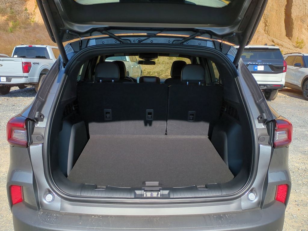 2026 Carbonized Gray Metallic 2026 Ford Escape Hybrid ST-Line Select AWD 2.5L iVCT 2.5L iVCT. 2.5L iVCT, 2.91 Axle Ratio, 4-Wheel Disc Brakes, 6 Speakers, ABS brakes, Air Conditioning, Alloy wheels, Auto High-beam Headlights, Automatic temperature control, Brake assist, Bumpers: body-color, Compass, Delay-off headlights, Driver door bin, Driver vanity mirror, Dual front impact airbags, Dual front side impact airbags, Electronic Fuel Door Release, Electronic Stability Control, Emergency communication system: SYNC 4 911 Assist, Ford App, Four wheel independent suspension, Front anti-roll bar, Front Bucket Seats, Front Center Armrest, Front dual zone A/C, Front fog lights, Front reading lights, Fully automatic headlights, Heated door mirrors, Heated front seats, Heated steering wheel, Illuminated entry, Knee airbag, Low tire pressure warning, Neutral Towing Capability, Occupant sensing airbag, Outside temperature display, Overhead airbag, Overhead console, Panic alarm, Passenger door bin, Passenger vanity mirror, Pedestrian Alert Sounder, Power door mirrors, Power driver seat, Power Liftgate, Power steering, Power windows, Radio data system, Rear anti-roll bar, Rear reading lights, Rear seat center armrest, Rear window defroster, Rear window wiper, Remote keyless entry, Speed control, Speed-sensing steering, Speed-Sensitive Wipers, Split folding rear seat, Spoiler, Sport steering wheel, Steering wheel mounted audio controls, SYNC 4, Tachometer, Telescoping steering wheel, Tilt steering wheel, Traction control, Trip computer, Variably intermittent wipers, and Wheels: 18" Rock Metallic Painted Aluminum Courtesy Ford and Lincoln of Rome 101 Hwy 411 E Rome, Ga 30161 ROMEFORDLINC.COM 706.235.4453.