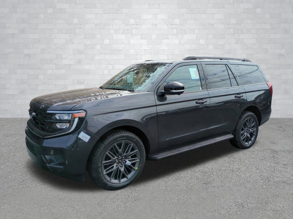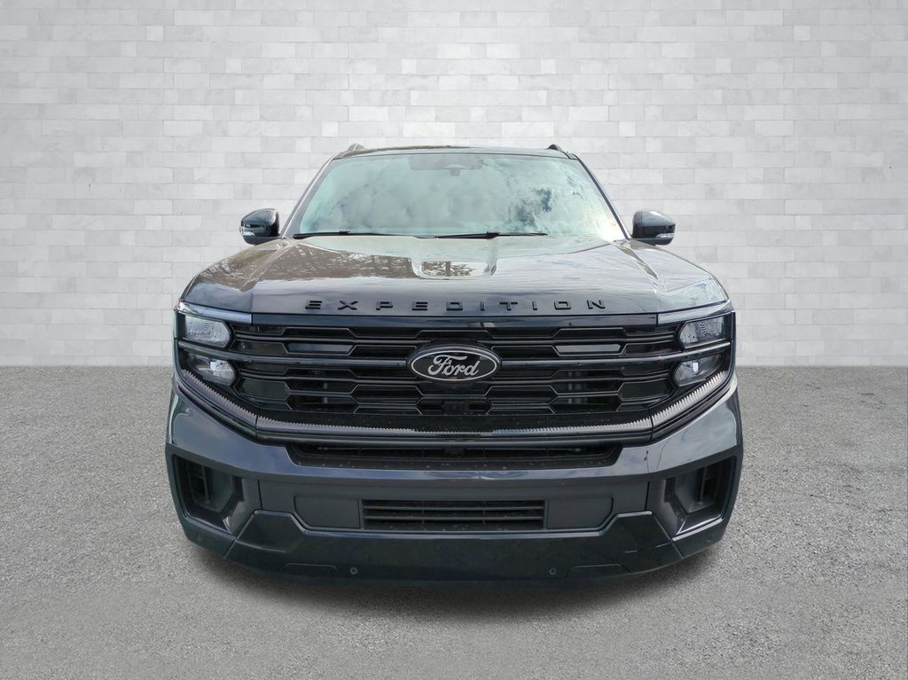 2026 Dark Matter Gray Metallic 2026 Ford Expedition Platinum 4WD EcoBoost 3.5L V6 GTDi DOHC 24V Twin Turbocharged 4WD. Ford Connectivity Package (1-Year Included), 4WD, 10 Speakers, 2nd Row Power-Folding Captain's Chairs, 3.73 Axle Ratio, 3rd row seats: split-bench, 4-Wheel Disc Brakes, ABS brakes, Air Conditioning, Alloy wheels, AM/FM radio: SiriusXM with 360L, Apple CarPlay/Android Auto, Auto High-beam Headlights, Auto-dimming door mirrors, Auto-dimming Rear-View mirror, Automatic temperature control, Brake assist, Bumpers: body-color, Compass, Delay-off headlights, Driver door bin, Driver vanity mirror, Dual front impact airbags, Dual front side impact airbags, Electronic Stability Control, Emergency communication system: 911 Assist, Exterior Parking Camera Rear, Ford Digital Experience, Four wheel independent suspension, Front anti-roll bar, Front Bucket Seats, Front Center Armrest, Front dual zone A/C, Front reading lights, Fully automatic headlights, Garage door transmitter, Genuine wood dashboard insert, Genuine wood door panel insert, Heated and Ventilated Leather Front Captain's Chairs, Heated door mirrors, Heated front seats, Heated rear seats, Heated steering wheel, Illuminated entry, Leather steering wheel, Low tire pressure warning, Memory seat, Navigation System, Occupant sensing airbag, Outside temperature display, Overhead airbag, Overhead console, Panic alarm, Passenger door bin, Passenger vanity mirror, Power door mirrors, Power driver seat, Power moonroof: Vista Roof, Power passenger seat, Power steering, Power windows, Radio data system, Radio: B&O Sound System by Bang and Olufsen, Rain sensing wipers, Rear air conditioning, Rear anti-roll bar, Rear reading lights, Rear window defroster, Rear window wiper, Reclining 3rd row seat, Remote keyless entry, Security system, SiriusXM with 360L, Speed control, Speed-sensing steering, Speed-Sensitive Wipers, Split folding rear seat, Spoiler, Steering wheel memory, Steering wheel mounted audio controls, Tachometer, Telescoping steering wheel, Tilt steering wheel, Traction control, Trip computer, Turn signal indicator mirrors, Variably intermittent wipers, Ventilated front seats, Voltmeter, and Wheels: 20" x 8.5" Ebony Bright Machined Aluminum Courtesy Ford and Lincoln of Rome 101 Hwy 411 E Rome, Ga 30161 ROMEFORDLINC.COM 706.235.4453.