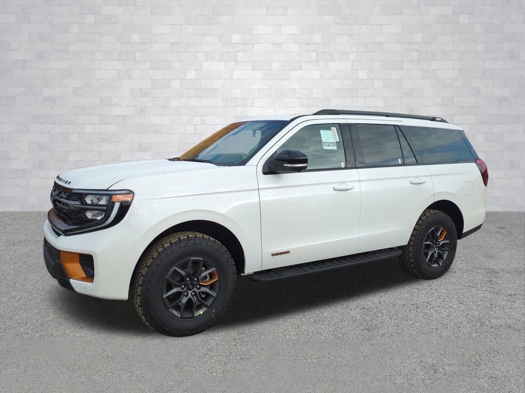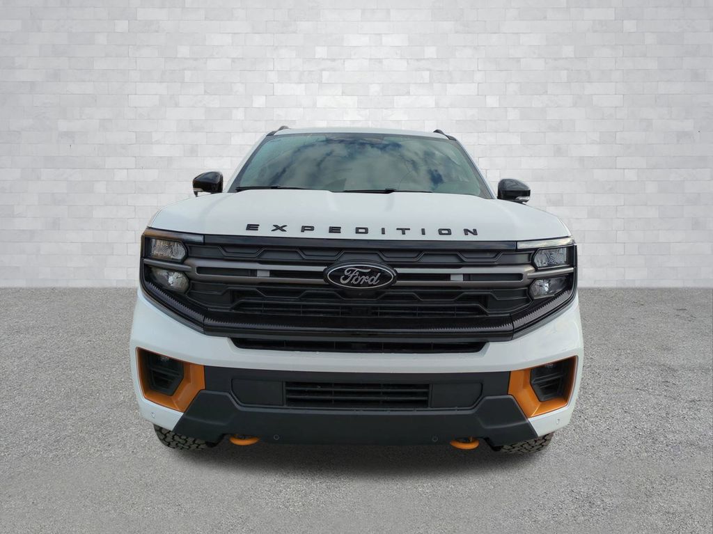 2026 Star White Metallic Tri-Coat 2026 Ford Expedition Tremor 4WD 3.5L V6 EcoBoost High Output 4WD. Ford Connectivity Package (1-Year Included), 4WD, 10 Speakers, 2nd Row Power-Folding Captain's Chairs, 3.73 Axle Ratio, 3rd row seats: split-bench, 4-Wheel Disc Brakes, ABS brakes, Air Conditioning, Alloy wheels, AM/FM radio: SiriusXM with 360L, Apple CarPlay/Android Auto, Auto High-beam Headlights, Auto-dimming door mirrors, Auto-dimming Rear-View mirror, Automatic temperature control, Brake assist, Bumpers: body-color, Compass, Delay-off headlights, Driver door bin, Driver vanity mirror, Dual front impact airbags, Dual front side impact airbags, Electronic Stability Control, Emergency communication system: 911 Assist, Exterior Parking Camera Rear, Ford Digital Experience, Four wheel independent suspension, Front anti-roll bar, Front Bucket Seats, Front Center Armrest, Front dual zone A/C, Front fog lights, Front reading lights, Fully automatic headlights, Garage door transmitter, Heated and Ventilated Leather Front Captain's Chairs, Heated door mirrors, Heated front seats, Heated steering wheel, Illuminated entry, Leather steering wheel, Low tire pressure warning, Memory seat, Navigation System, Occupant sensing airbag, Outside temperature display, Overhead airbag, Overhead console, Panic alarm, Passenger door bin, Passenger vanity mirror, Power door mirrors, Power driver seat, Power moonroof: Vista Roof, Power passenger seat, Power steering, Power windows, Radio data system, Radio: B&O Sound System by Bang and Olufsen, Rain sensing wipers, Rear air conditioning, Rear anti-roll bar, Rear reading lights, Rear window defroster, Rear window wiper, Reclining 3rd row seat, Remote keyless entry, Security system, SiriusXM with 360L, Speed control, Speed-sensing steering, Speed-Sensitive Wipers, Split folding rear seat, Spoiler, Steering wheel memory, Steering wheel mounted audio controls, Tachometer, Telescoping steering wheel, Tilt steering wheel, Traction control, Trip computer, Turn signal indicator mirrors, Variably intermittent wipers, Ventilated front seats, Voltmeter, and Wheels: 18" x 8.5" Dark Carbonized Gray Painted Aluminum Courtesy Ford and Lincoln of Rome 101 Hwy 411 E Rome, Ga 30161 ROMEFORDLINC.COM 706.235.4453.