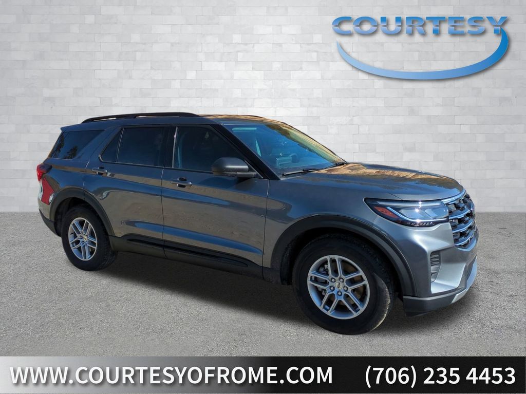 2026 Gray Metallic 2026 Ford Explorer Active RWD 2.3L EcoBoost I-4 3rd row seats: bench, 4-Wheel Disc Brakes, 6 Speakers, ABS brakes, Air Conditioning, Alloy wheels, AM/FM radio: SiriusXM with 360L, AM/FM Stereo, Apple CarPlay/Android Auto, Auto High-beam Headlights, Automatic temperature control, Brake assist, Bumpers: body-color, Compass, Delay-off headlights, Driver door bin, Driver vanity mirror, Dual front impact airbags, Dual front side impact airbags, Electronic Stability Control, Emergency communication system: 911 Assist, Exterior Parking Camera Rear, Four wheel independent suspension, Front anti-roll bar, Front Bucket Seats, Front Center Armrest, Front dual zone A/C, Front reading lights, Fully automatic headlights, Heated door mirrors, Illuminated entry, Knee airbag, Low tire pressure warning, Navigation System, Occupant sensing airbag, Outside temperature display, Overhead airbag, Overhead console, Panic alarm, Passenger door bin, Passenger vanity mirror, Power door mirrors, Power driver seat, Power steering, Power windows, Rear air conditioning, Rear anti-roll bar, Rear reading lights, Rear window defroster, Rear window wiper, Remote keyless entry, Security system, Speed control, Speed-sensing steering, Speed-Sensitive Wipers, Split folding rear seat, Spoiler, Steering wheel mounted audio controls, Tachometer, Telescoping steering wheel, Tilt steering wheel, Traction control, Trip computer, Variably intermittent wipers, and Wheels: 18" Sparkle Silver-Painted Aluminum Courtesy Ford and Lincoln of Rome 101 Hwy 411 E Rome, Ga 30161 ROMEFORDLINC.COM 706.235.4453.