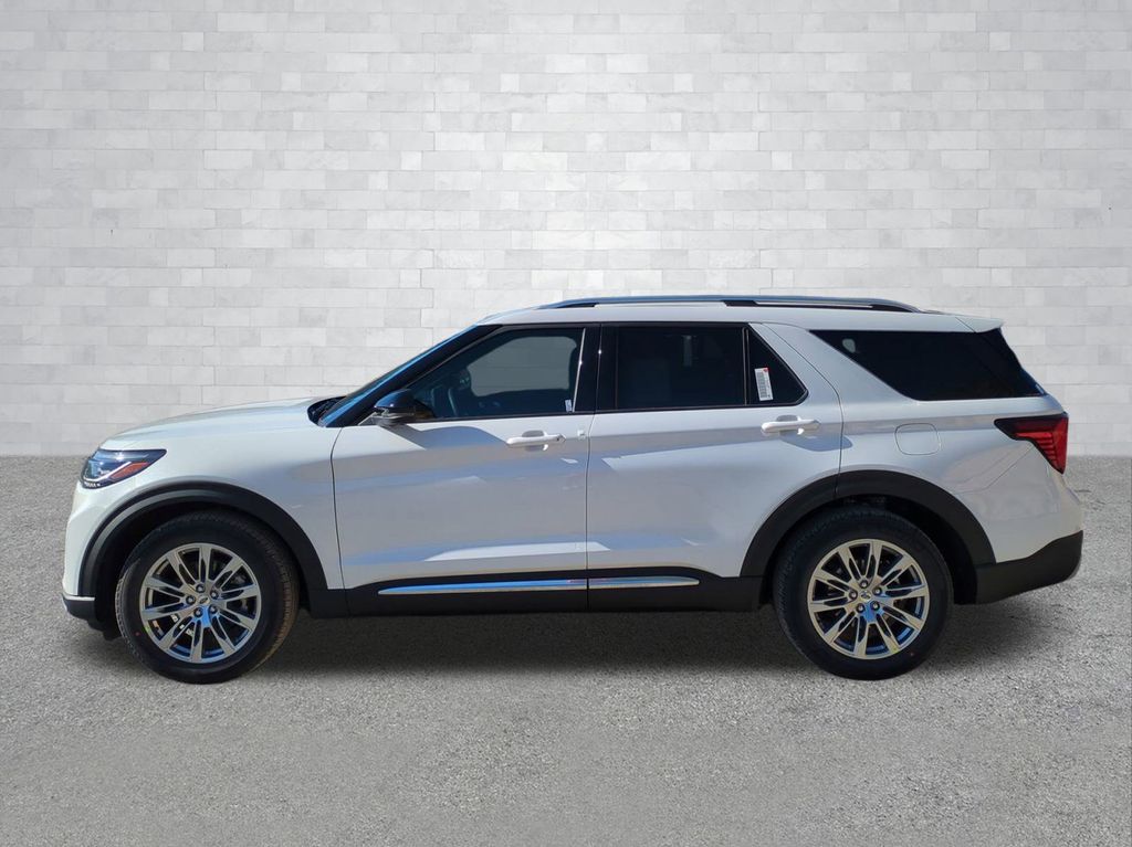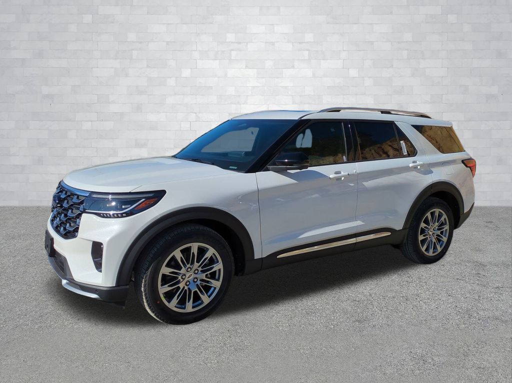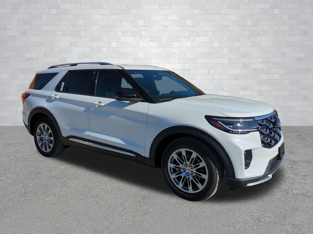 2026 Star White Metallic Tri-Coat 2026 Ford Explorer Platinum RWD 2.3L EcoBoost I-4 14 Speakers, 3rd row seats: bench, 4-Wheel Disc Brakes, ABS brakes, ActiveX Trimmed Captain's Chairs, Air Conditioning, Alloy wheels, AM/FM radio: SiriusXM with 360L, Apple CarPlay/Android Auto, Auto High-beam Headlights, Auto-dimming door mirrors, Auto-dimming Rear-View mirror, Automatic temperature control, Brake assist, Bumpers: body-color, Compass, Delay-off headlights, Driver door bin, Driver vanity mirror, Dual front impact airbags, Dual front side impact airbags, Electronic Stability Control, Emergency communication system: 911 Assist, Exterior Parking Camera Rear, Four wheel independent suspension, Front anti-roll bar, Front Bucket Seats, Front Center Armrest, Front dual zone A/C, Front fog lights, Front reading lights, Fully automatic headlights, Garage door transmitter, Heated door mirrors, Heated front seats, Heated rear seats, Heated steering wheel, Illuminated entry, Knee airbag, Leather steering wheel, Low tire pressure warning, Memory seat, Navigation System, Occupant sensing airbag, Outside temperature display, Overhead airbag, Overhead console, Panic alarm, Passenger door bin, Passenger vanity mirror, Power door mirrors, Power driver seat, Power Liftgate, Power passenger seat, Power steering, Power windows, Radio data system, Radio: B&O Sound System by Bang & Olufsen with HD, Rain sensing wipers, Rear air conditioning, Rear anti-roll bar, Rear reading lights, Rear window defroster, Rear window wiper, Remote keyless entry, Security system, Speed control, Speed-sensing steering, Speed-Sensitive Wipers, Split folding rear seat, Spoiler, Steering wheel mounted audio controls, Tachometer, Telescoping steering wheel, Tilt steering wheel, Traction control, Trip computer, Turn signal indicator mirrors, Variably intermittent wipers, Ventilated front seats, and Wheels: 20" Luster Nickel-Painted Aluminum Courtesy Ford and Lincoln of Rome 101 Hwy 411 E Rome, Ga 30161 ROMEFORDLINC.COM 706.235.4453.