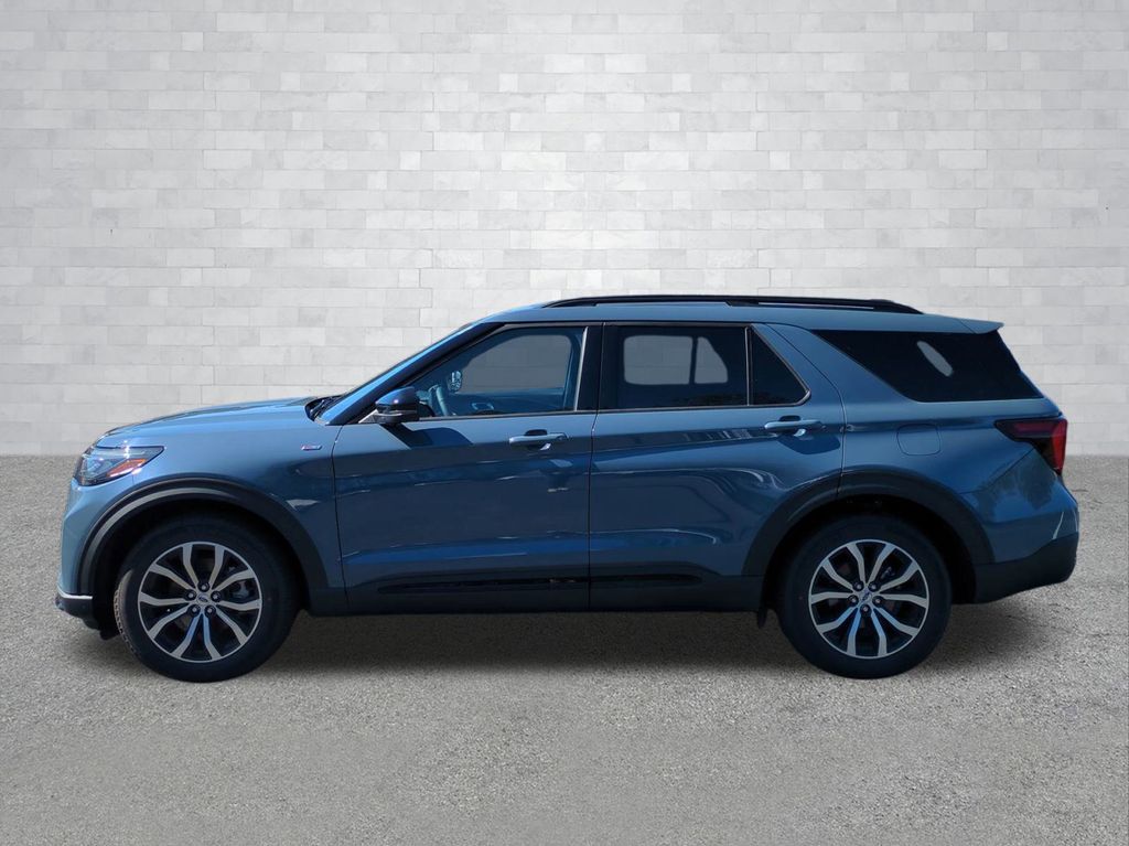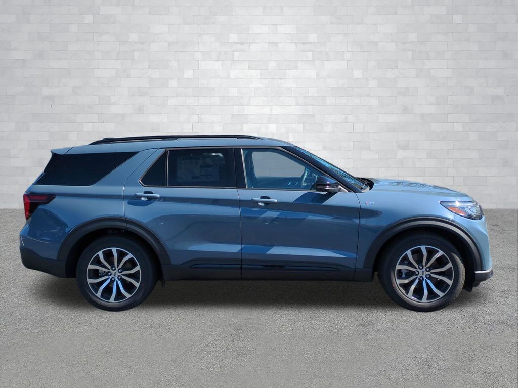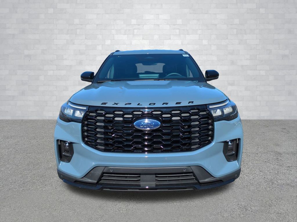 2026 Vapor Blue Metallic 2026 Ford Explorer ST-Line RWD 2.3L EcoBoost I-4 Equipment Group 300A Standard Package (Heated Unique Cloth Captain's Chairs, Radio: B&O Sound System by Bang and Olufsen, and Wheels: 20" Ebony-Painted Machined Aluminum), 10 Speakers, 3rd row seats: bench, 4-Wheel Disc Brakes, ABS brakes, Air Conditioning, Alloy wheels, AM/FM radio: SiriusXM with 360L, Apple CarPlay/Android Auto, Auto High-beam Headlights, Automatic temperature control, BlueCruise (equipment + 1-Year + 90-Day Plan), BlueCruise Hardware, Brake assist, Bumpers: body-color, Compass, Delay-off headlights, Driver door bin, Driver vanity mirror, Dual front impact airbags, Dual front side impact airbags, Electronic Stability Control, Emergency communication system: 911 Assist, Exterior Parking Camera Rear, Four wheel independent suspension, Front anti-roll bar, Front Bucket Seats, Front Center Armrest, Front dual zone A/C, Front fog lights, Front reading lights, Fully automatic headlights, Garage door transmitter, Heated door mirrors, Heated front seats, Heated steering wheel, Illuminated entry, Knee airbag, Leather steering wheel, Low tire pressure warning, Navigation System, Occupant sensing airbag, Outside temperature display, Overhead airbag, Overhead console, Panic alarm, Passenger door bin, Passenger vanity mirror, Power door mirrors, Power driver seat, Power Liftgate, Power passenger seat, Power steering, Power windows, Rear air conditioning, Rear anti-roll bar, Rear reading lights, Rear window defroster, Rear window wiper, Remote keyless entry, Security system, Speed control, Speed-sensing steering, Speed-Sensitive Wipers, Split folding rear seat, Spoiler, Steering wheel mounted audio controls, Tachometer, Telescoping steering wheel, Tilt steering wheel, Traction control, Trip computer, and Variably intermittent wipers Courtesy Ford and Lincoln of Rome 101 Hwy 411 E Rome, Ga 30161 ROMEFORDLINC.COM 706.235.4453.