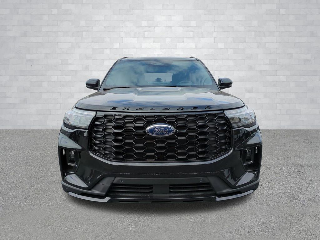 2026 Agate Black Metallic 2026 Ford Explorer ST-Line RWD 2.3L EcoBoost I-4 Equipment Group 300A Standard Package (Heated Unique Cloth Captain's Chairs, Radio: B&O Sound System by Bang and Olufsen, and Wheels: 20" Ebony-Painted Machined Aluminum), Ford Connectivity Package (one-Time Purchase - 7 Years), 10 Speakers, 3rd row seats: bench, 4-Wheel Disc Brakes, ABS brakes, Air Conditioning, Alloy wheels, AM/FM radio: SiriusXM with 360L, Apple CarPlay/Android Auto, Auto High-beam Headlights, Automatic temperature control, BlueCruise (equipment + 1-Year + 90-Day Plan), BlueCruise Hardware, Brake assist, Bumpers: body-color, Compass, Delay-off headlights, Driver door bin, Driver vanity mirror, Dual front impact airbags, Dual front side impact airbags, Electronic Stability Control, Emergency communication system: 911 Assist, Exterior Parking Camera Rear, Four wheel independent suspension, Front anti-roll bar, Front Bucket Seats, Front Center Armrest, Front dual zone A/C, Front fog lights, Front reading lights, Fully automatic headlights, Garage door transmitter, Heated door mirrors, Heated front seats, Heated steering wheel, Illuminated entry, Knee airbag, Leather steering wheel, Low tire pressure warning, Navigation System, Occupant sensing airbag, Outside temperature display, Overhead airbag, Overhead console, Panic alarm, Passenger door bin, Passenger vanity mirror, Power door mirrors, Power driver seat, Power Liftgate, Power passenger seat, Power steering, Power windows, Rear air conditioning, Rear anti-roll bar, Rear reading lights, Rear window defroster, Rear window wiper, Remote keyless entry, Security system, Speed control, Speed-sensing steering, Speed-Sensitive Wipers, Split folding rear seat, Spoiler, Steering wheel mounted audio controls, Tachometer, Telescoping steering wheel, Tilt steering wheel, Traction control, Trip computer, and Variably intermittent wipers Courtesy Ford and Lincoln of Rome 101 Hwy 411 E Rome, Ga 30161 ROMEFORDLINC.COM 706.235.4453.