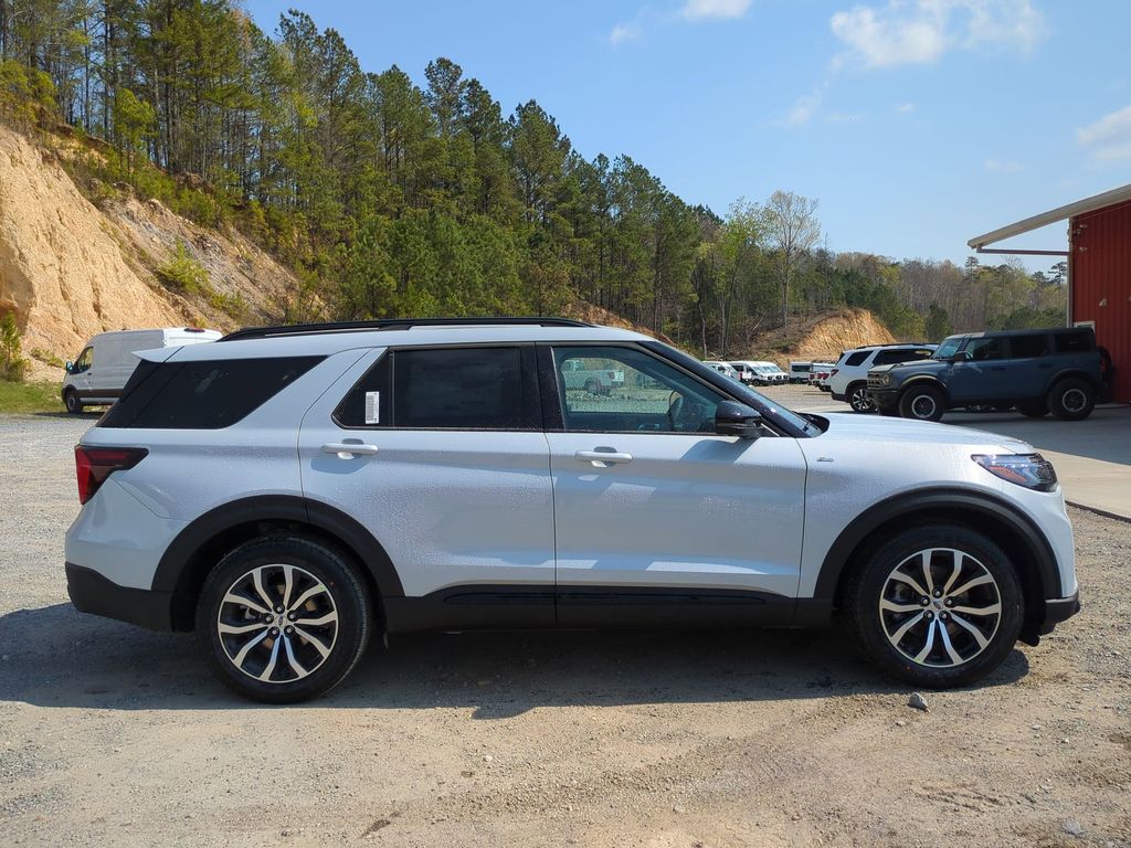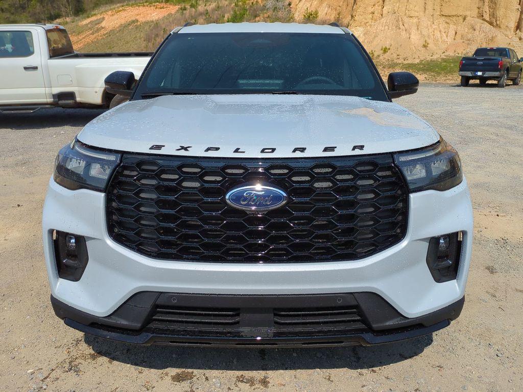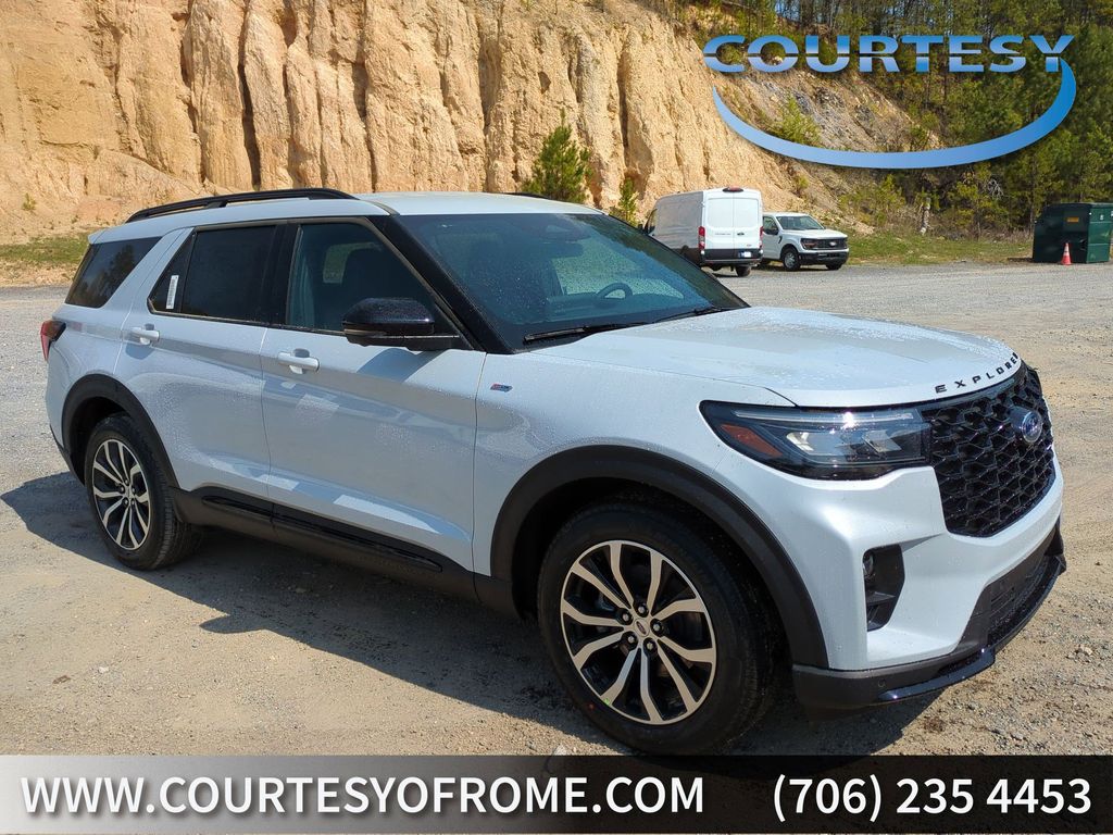 2026 Space White Metallic 2026 Ford Explorer ST-Line RWD 2.3L EcoBoost I-4 10 Speakers, 3rd row seats: bench, 4-Wheel Disc Brakes, ABS brakes, Air Conditioning, Alloy wheels, AM/FM radio: SiriusXM with 360L, Apple CarPlay/Android Auto, Auto High-beam Headlights, Automatic temperature control, Brake assist, Bumpers: body-color, Compass, Delay-off headlights, Driver door bin, Driver vanity mirror, Dual front impact airbags, Dual front side impact airbags, Electronic Stability Control, Emergency communication system: 911 Assist, Exterior Parking Camera Rear, Four wheel independent suspension, Front anti-roll bar, Front Bucket Seats, Front Center Armrest, Front dual zone A/C, Front fog lights, Front reading lights, Fully automatic headlights, Garage door transmitter, Heated door mirrors, Heated front seats, Heated steering wheel, Heated Unique Cloth Captain's Chairs, Illuminated entry, Knee airbag, Leather steering wheel, Low tire pressure warning, Navigation System, Occupant sensing airbag, Outside temperature display, Overhead airbag, Overhead console, Panic alarm, Passenger door bin, Passenger vanity mirror, Power door mirrors, Power driver seat, Power Liftgate, Power passenger seat, Power steering, Power windows, Radio: B&O Sound System by Bang and Olufsen, Rear air conditioning, Rear anti-roll bar, Rear reading lights, Rear window defroster, Rear window wiper, Remote keyless entry, Security system, Speed control, Speed-sensing steering, Speed-Sensitive Wipers, Split folding rear seat, Spoiler, Steering wheel mounted audio controls, Tachometer, Telescoping steering wheel, Tilt steering wheel, Traction control, Trip computer, Variably intermittent wipers, and Wheels: 20" Ebony-Painted Machined Aluminum Courtesy Ford and Lincoln of Rome 101 Hwy 411 E Rome, Ga 30161 ROMEFORDLINC.COM 706.235.4453.