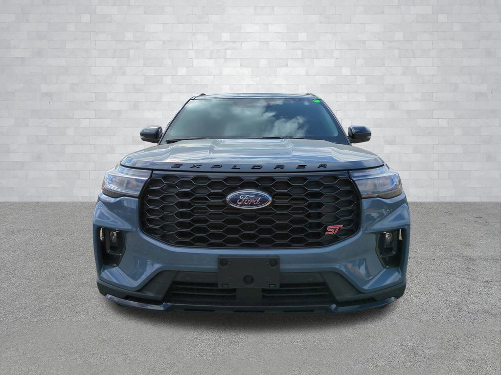 2026 Vapor Blue Metallic 2026 Ford Explorer ST 4WD 3.0L EcoBoost V6 4WD. 4WD, 10 Speakers, 3rd row seats: bench, 4-Wheel Disc Brakes, ABS brakes, Air Conditioning, Alloy wheels, AM/FM radio: SiriusXM with 360L, Apple CarPlay/Android Auto, Auto High-beam Headlights, Auto-dimming door mirrors, Auto-dimming Rear-View mirror, Automatic temperature control, Brake assist, Bumpers: body-color, Compass, Delay-off headlights, Driver door bin, Driver vanity mirror, Dual front impact airbags, Dual front side impact airbags, Electronic Stability Control, Emergency communication system: 911 Assist, Exterior Parking Camera Rear, Four wheel independent suspension, Front anti-roll bar, Front Bucket Seats, Front Center Armrest, Front dual zone A/C, Front fog lights, Front reading lights, Fully automatic headlights, Garage door transmitter, Heated door mirrors, Heated front seats, Heated rear seats, Heated steering wheel, Illuminated entry, Knee airbag, Leather steering wheel, Low tire pressure warning, Memory seat, Navigation System, Occupant sensing airbag, Outside temperature display, Overhead airbag, Overhead console, Panic alarm, Passenger door bin, Passenger vanity mirror, Power door mirrors, Power driver seat, Power Liftgate, Power passenger seat, Power steering, Power windows, Radio: B&O Sound System by Bang & Olufsen, Rain sensing wipers, Rear air conditioning, Rear anti-roll bar, Rear reading lights, Rear window defroster, Rear window wiper, Remote keyless entry, Security system, Speed control, Speed-sensing steering, Speed-Sensitive Wipers, Split folding rear seat, Spoiler, Sport steering wheel, Steering wheel mounted audio controls, Tachometer, Telescoping steering wheel, Tilt steering wheel, Traction control, Trip computer, Turn signal indicator mirrors, Variably intermittent wipers, Ventilated front seats, and Wheels: 21" Magnetite-Painted Aluminum Courtesy Ford and Lincoln of Rome 101 Hwy 411 E Rome, Ga 30161 ROMEFORDLINC.COM 706.235.4453.