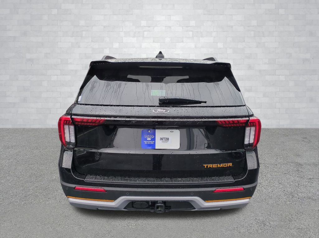 2026 Black Metallic 2026 Ford Explorer Tremor 4WD 3.0L EcoBoost V6 4D Sport Utility, 4WD. 4D Sport Utility, 4WD, 10 Speakers, 3rd row seats: bench, 4-Wheel Disc Brakes, ABS brakes, Air Conditioning, Alloy wheels, AM/FM radio: SiriusXM with 360L, Apple CarPlay/Android Auto, Auto High-beam Headlights, Automatic temperature control, Brake assist, Bumpers: body-color, Compass, Delay-off headlights, Driver door bin, Driver vanity mirror, Dual front impact airbags, Dual front side impact airbags, Electronic Stability Control, Emergency communication system: 911 Assist, Exterior Parking Camera Rear, Four wheel independent suspension, Front anti-roll bar, Front Bucket Seats, Front Center Armrest, Front dual zone A/C, Front fog lights, Front reading lights, Fully automatic headlights, Heated door mirrors, Heated front seats, Heated rear seats, Heated steering wheel, Illuminated entry, Knee airbag, Leather steering wheel, Low tire pressure warning, Navigation System, Occupant sensing airbag, Outside temperature display, Overhead airbag, Overhead console, Panic alarm, Passenger door bin, Passenger vanity mirror, Power door mirrors, Power driver seat, Power Liftgate, Power passenger seat, Power steering, Power windows, Radio: B&O Sound System by Bang and Olufsen, Rear air conditioning, Rear anti-roll bar, Rear reading lights, Rear window defroster, Rear window wiper, Remote keyless entry, Security system, Speed control, Speed-sensing steering, Speed-Sensitive Wipers, Split folding rear seat, Spoiler, Sport steering wheel, Steering wheel mounted audio controls, Tachometer, Telescoping steering wheel, Tilt steering wheel, Traction control, Trip computer, Variably intermittent wipers, Ventilated front seats, and Wheels: 18" High Gloss Black-Painted Aluminum Courtesy Ford and Lincoln of Rome 101 Hwy 411 E Rome, Ga 30161 ROMEFORDLINC.COM 706.235.4453.