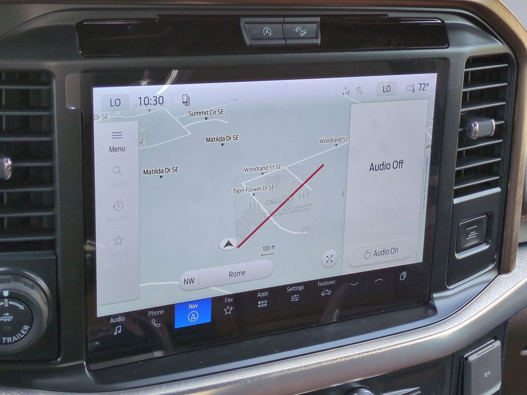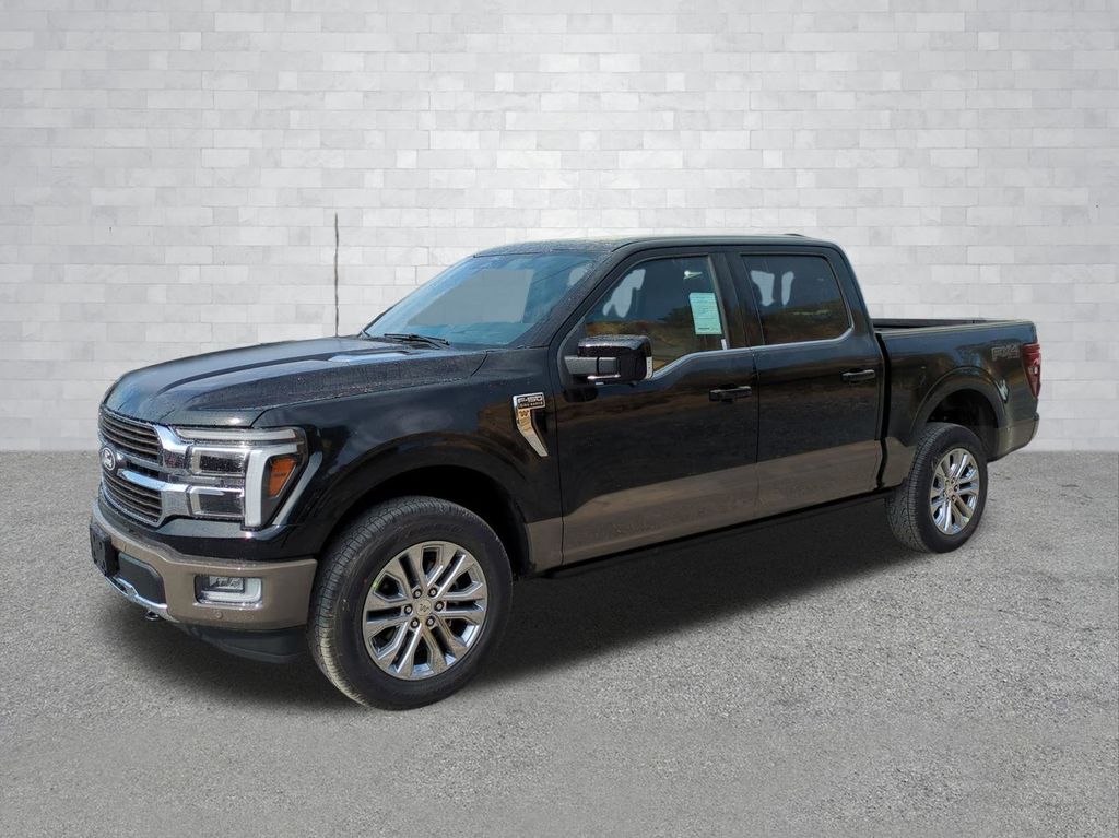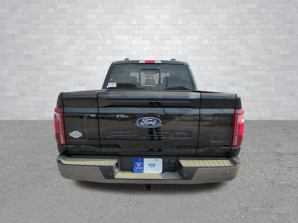 2026 Agate Black Metallic 2026 Ford F-150 King Ranch 4WD 3.5L V6 EcoBoost 4WD. Ford Connectivity Package (1-Year Included), GVWR: 7,400 lbs Payload Package, Internet access capable: 5G Modem - Ford Connectivity Package, 4WD, 4-Wheel Disc Brakes, 8 Speakers, ABS brakes, Adjustable pedals, Air Conditioning, Alloy wheels, AM/FM radio: SiriusXM with 360L, Auto High-beam Headlights, Auto tilt-away steering wheel, Auto-dimming door mirrors, Auto-dimming Rear-View mirror, Automatic temperature control, Brake assist, Chrome wheels, Compass, Delay-off headlights, Driver door bin, Driver vanity mirror, Dual front impact airbags, Dual front side impact airbags, Electronic Locking with 3.55 Axle Ratio, Electronic Stability Control, Emergency communication system: SYNC 4 911 Assist, Front anti-roll bar, Front Bucket Seats, Front Center Armrest, Front dual zone A/C, Front fog lights, Front reading lights, Front wheel independent suspension, Fully automatic headlights, Garage door transmitter, Genuine wood dashboard insert, Heated door mirrors, Heated front seats, Heated rear seats, Heated steering wheel, Illuminated entry, Leather steering wheel, Low tire pressure warning, Memory seat, Navigation system: Connected Navigation, Occupant sensing airbag, Outside temperature display, Overhead airbag, Overhead console, Panic alarm, Passenger door bin, Passenger vanity mirror, Pedal memory, Power door mirrors, Power driver seat, Power passenger seat, Power steering, Power windows, Radio data system, Radio: B&O Sound System by Bang and Olufsen, Rain sensing wipers, Rear reading lights, Rear seat center armrest, Rear step bumper, Rear window defroster, Remote keyless entry, Security system, Speed control, Split folding rear seat, Steering wheel memory, Steering wheel mounted audio controls, SYNC 4 with Enhanced Voice Recognition, Tachometer, Telescoping steering wheel, Tilt steering wheel, Traction control, Trip computer, Turn signal indicator mirrors, Variably intermittent wipers, Ventilated front seats, and Wheels: 20" Chrome-Like PVD Courtesy Ford and Lincoln of Rome 101 Hwy 411 E Rome, Ga 30161 ROMEFORDLINC.COM 706.235.4453.