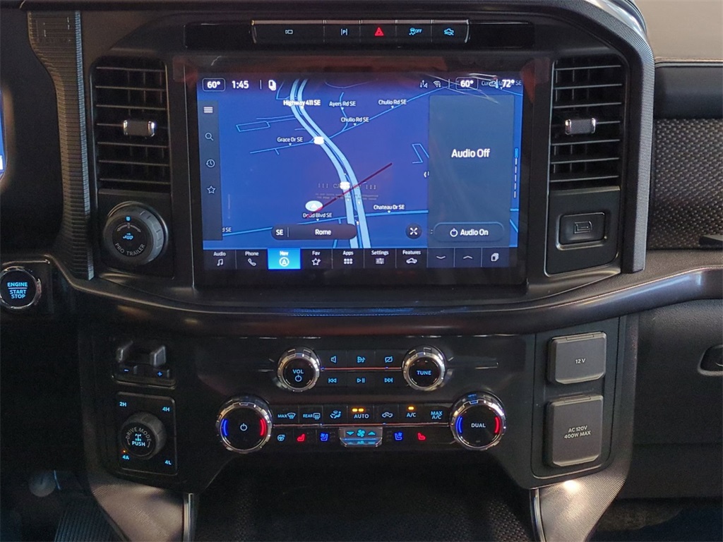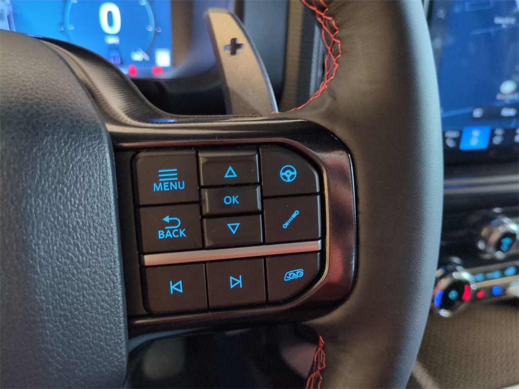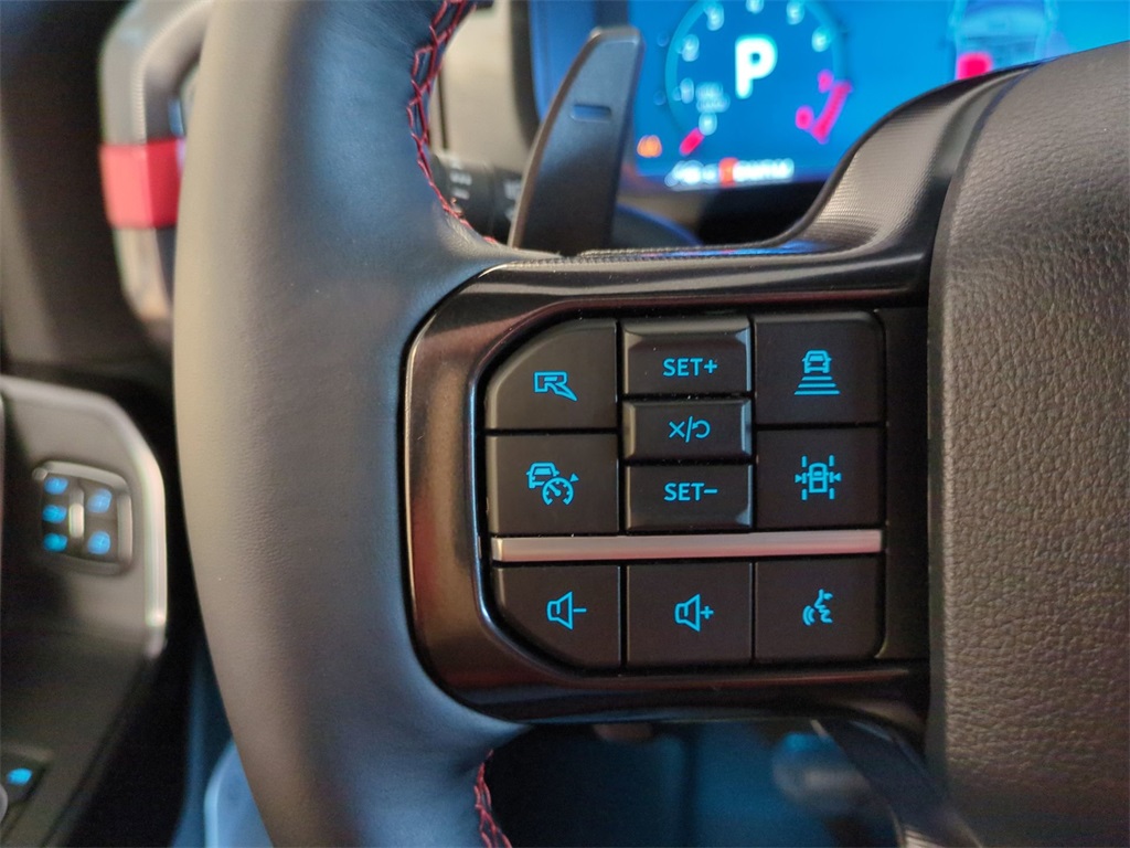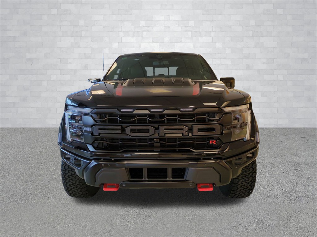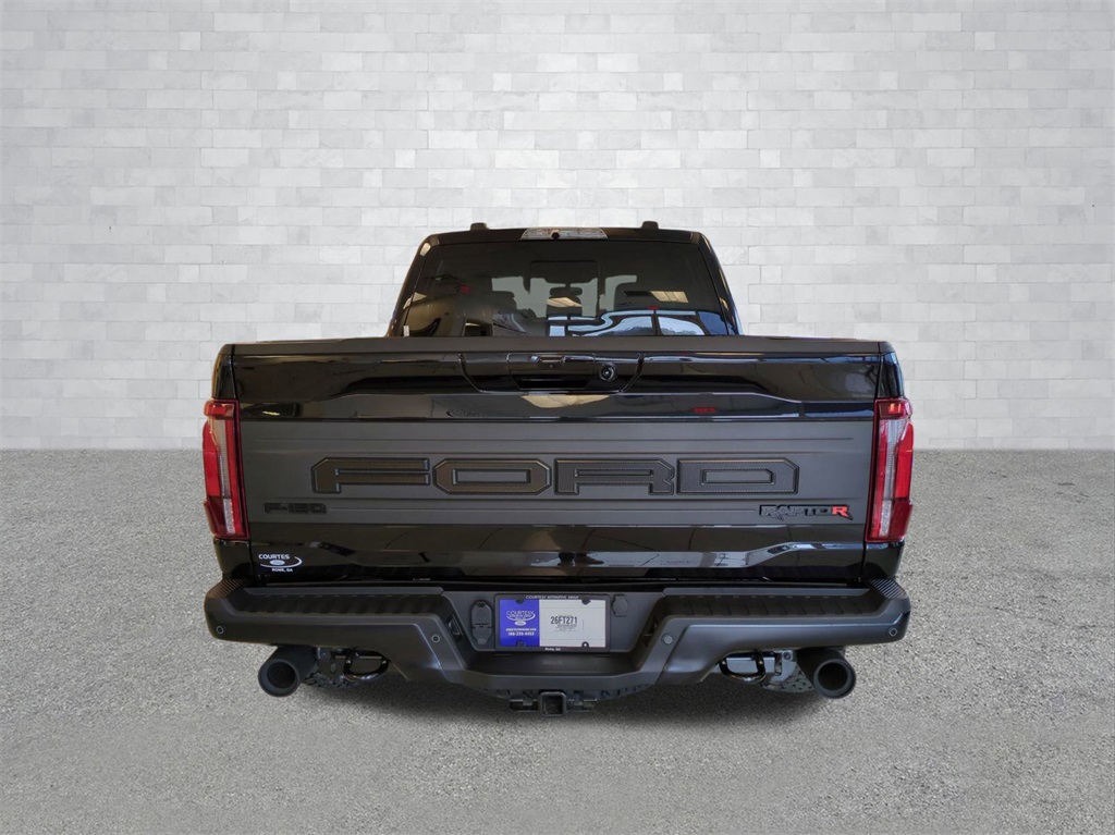 2026 Agate Black Metallic 2026 Ford F-150 Raptor 4WD 5.2L V8 4WD. Ford Connectivity Package (1-Year Included), Internet access capable: 5G Modem - Ford Connectivity Package, 4WD, 14 Speakers, 17" Cast Aluminum Wheels, 4-Wheel Disc Brakes, ABS brakes, Adjustable pedals, Air Conditioning, Alloy wheels, AM/FM radio: SiriusXM with 360L, Auto High-beam Headlights, Auto tilt-away steering wheel, Auto-dimming door mirrors, Auto-dimming Rear-View mirror, Automatic temperature control, Brake assist, Bumpers: body-color, Compass, Delay-off headlights, Driver door bin, Driver vanity mirror, Dual front impact airbags, Dual front side impact airbags, Electronic Locking with 4.10 Axle Ratio, Electronic Stability Control, Emergency communication system: SYNC 4 911 Assist, Front anti-roll bar, Front Bucket Seats, Front Center Armrest, Front dual zone A/C, Front fog lights, Front reading lights, Front wheel independent suspension, Fully automatic headlights, Garage door transmitter, Heated door mirrors, Heated front seats, Heated rear seats, Heated steering wheel, Illuminated entry, Lane Departure Warning System, Leather steering wheel, Leather Trimmed Seats, Low tire pressure warning, Memory seat, Navigation system: Connected Navigation, Occupant sensing airbag, Outside temperature display, Overhead airbag, Overhead console, Panic alarm, Passenger door bin, Passenger vanity mirror, Pedal memory, Power door mirrors, Power driver seat, Power passenger seat, Power steering, Power windows, Radio data system, Radio: B&O Unleashed Sound System by Bang & Olufsen, Rain sensing wipers, Rear reading lights, Rear step bumper, Rear window defroster, Remote keyless entry, Security system, Speed control, Speed-sensing steering, Split folding rear seat, Steering wheel memory, Steering wheel mounted audio controls, SYNC 4 with Enhanced Voice Recognition, Tachometer, Telescoping steering wheel, Tilt steering wheel, Traction control, Trip computer, Turn signal indicator mirrors, Variably intermittent wipers, and Ventilated front seats Courtesy Ford and Lincoln of Rome 101 Hwy 411 E Rome, Ga 30161 ROMEFORDLINC.COM 706.235.4453.