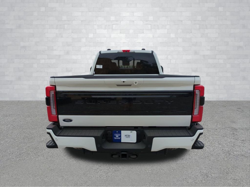 2026 Star White Metallic Tri-Coat 2026 Ford F-250SD Platinum 4WD 6.7L High Output Power Stroke V8 Diesel 4D Crew Cab, 6.7L High Output Power Stroke V8 Diesel, 10-Speed Automatic, 4WD, ABS brakes, Alloy wheels, Compass, Electronic Stability Control, Front dual zone A/C, Heated door mirrors, Heated front seats, Heated rear seats, Illuminated entry, Low tire pressure warning, Remote keyless entry, Traction control. Ford Connectivity Package (1-Year Included), GVWR: F-250 >10K Package, Internet access capable: 5G Modem - Ford Connectivity Package, 4D Crew Cab, 6.7L High Output Power Stroke V8 Diesel, 10-Speed Automatic, 4WD, ABS brakes, Alloy wheels, Compass, Electronic Stability Control, Front dual zone A/C, Heated door mirrors, Heated front seats, Heated rear seats, Illuminated entry, Low tire pressure warning, Remote keyless entry, Traction control, 3.73 Axle Ratio, 4-Wheel Disc Brakes, Adjustable pedals, Air Conditioning, AM/FM radio: SiriusXM with 360L, Auto High-beam Headlights, Auto-dimming Rear-View mirror, Automatic temperature control, Brake assist, Delay-off headlights, Driver door bin, Driver vanity mirror, Dual front impact airbags, Dual front side impact airbags, Emergency communication system: SYNC 4 911 Assist, Flow-Through Console, Front anti-roll bar, Front Bucket Seats, Front Center Armrest, Front fog lights, Front reading lights, Fully automatic headlights, Garage door transmitter, Heated steering wheel, Memory seat, Navigation system: Connected Navigation, Outside temperature display, Overhead airbag, Overhead console, Panic alarm, Passenger door bin, Passenger vanity mirror, Pedal memory, Power door mirrors, Power driver seat, Power passenger seat, Power steering, Power windows, Rain sensing wipers, Rear reading lights, Rear seat center armrest, Rear step bumper, Rear window defroster, Security system, SiriusXM with 360L, Speed control, Split folding rear seat, Steering wheel mounted audio controls, SYNC 4 with Enhanced Voice Recognition, Tachometer, Telescoping steering wheel, Tilt steering wheel, Trip computer, Turn signal indicator mirrors, Variably intermittent wipers, and Ventilated front seats Courtesy Ford and Lincoln of Rome 101 Hwy 411 E Rome, Ga 30161 ROMEFORDLINC.COM 706.235.4453.