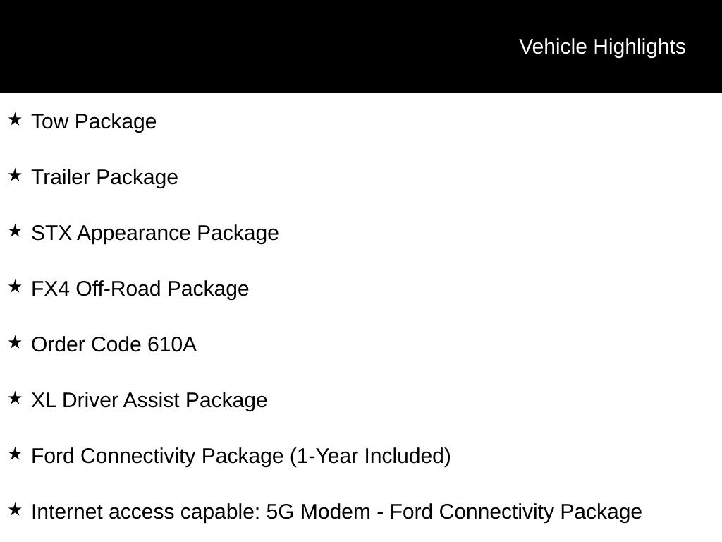 - Internet access capable: 5G Modem - Ford Connectivity Package