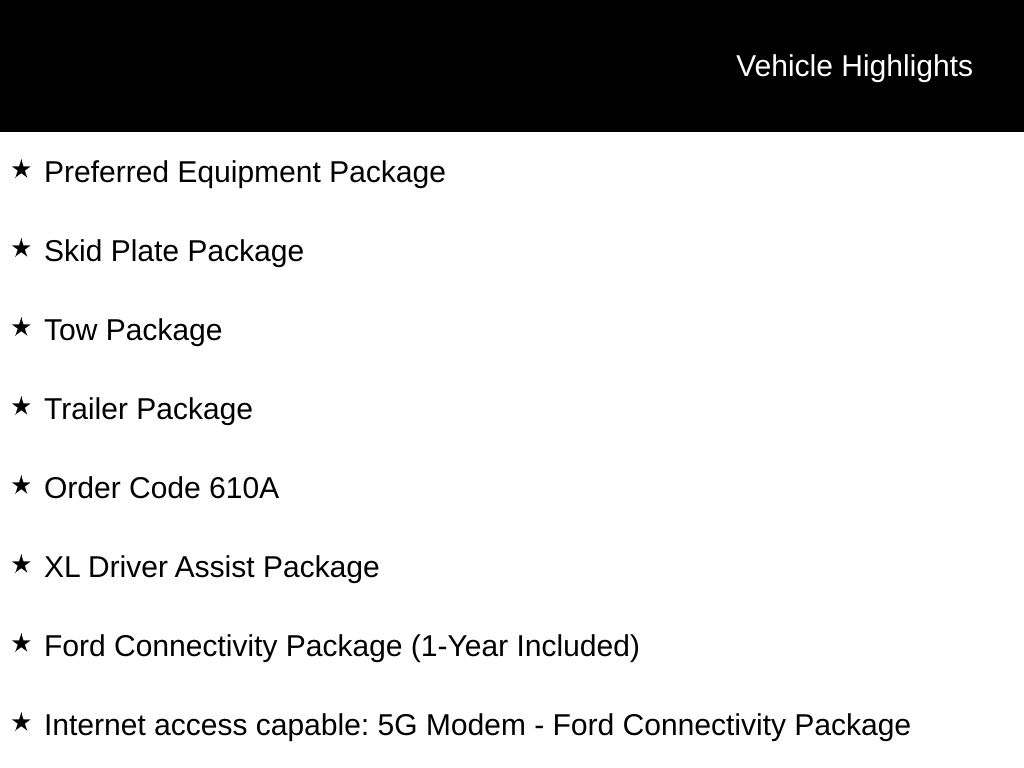 - Internet access capable: 5G Modem - Ford Connectivity Package