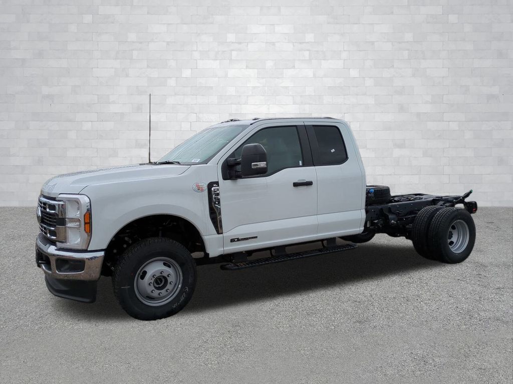 2026 Oxford White 2026 Ford F-350SD XL DRW 4WD Power Stroke 6.7L V8 DI 32V OHV Turbodiesel 4WD. Ford Connectivity Package (1-Year Included), GVWR: 14,000 Lb Payload Package, Internet access capable: 5G Modem - Ford Connectivity Package, 4WD, 17" Argent Painted Steel Wheels, 4-Ton Hydraulic Jack, 4-Wheel Disc Brakes, 6 Speakers, ABS brakes, Air Conditioning, AM/FM radio, Brake assist, Cloth 40/20/40 Split Bench Seat, Compass, Delay-off headlights, Dual front impact airbags, Dual front side impact airbags, Dual rear wheels, Emergency communication system: SYNC 4 911 Assist, Front anti-roll bar, Front Center Armrest w/Storage, Front License Plate Bracket, Front reading lights, Fully automatic headlights, Heated door mirrors, Illuminated entry, Low tire pressure warning, Outside temperature display, Overhead airbag, Overhead console, Panic alarm, Passenger cancellable airbag, Passenger vanity mirror, Platform Running Boards, Power door mirrors, Power steering, Power windows, Radio: AM/FM Stereo with MP3 Player, Rear anti-roll bar, Rear View Camera and Prep Kit, Remote keyless entry, Security system, Speed control, Split folding rear seat, Steering wheel mounted audio controls, SYNC 4, Tachometer, Telescoping steering wheel, Tilt steering wheel, Traction control, Trip computer, Turn signal indicator mirrors, and Variably intermittent wipers Courtesy Ford and Lincoln of Rome 101 Hwy 411 E Rome, Ga 30161 ROMEFORDLINC.COM 706.235.4453.