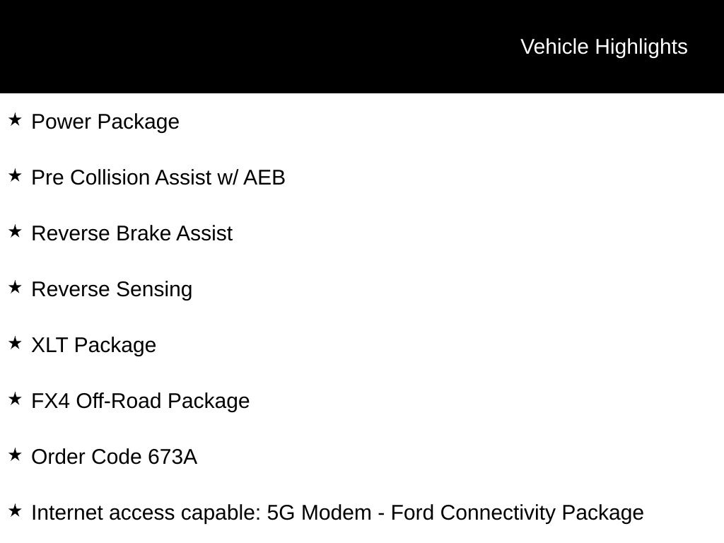 - Internet access capable: 5G Modem - Ford Connectivity Package