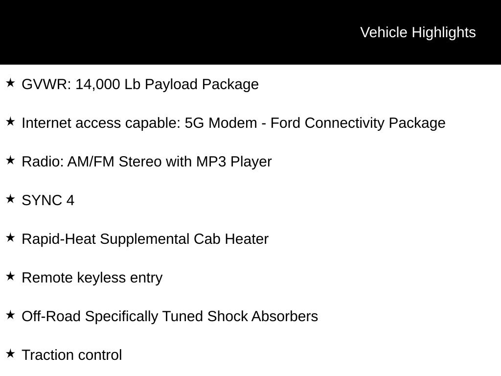 - Internet access capable: 5G Modem - Ford Connectivity Package
