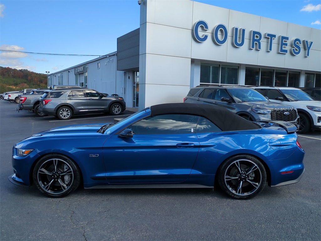 Lightning Blue Metallic 2017 Ford Mustang GT Premium Convertible RWD GT Premium Convertible 8" Color Touchscreen, Backup Camera, Blind Spot Monitoring, BLIS w/ Cross Traffic Alert, Bluetooth w/ Audio Streaming, Leather Seats, LED Foglights, LED Projector Headlights, Parking Sensors, Power Mirror Package, Power Package, Premium Audio Package, Premium Sound Package, Push Button Start, Reverse Brake Assist, Reverse Sensing, 2D Convertible, 5.0L V8 Ti-VCT, 6-Speed Manual, RWD, 3.15 Limited Slip Axle Ratio, 4-Wheel Disc Brakes, 9 Speakers, ABS brakes, All-Weather Floor Mats, AM/FM radio: SiriusXM, Auto-dimming Rear-View mirror, Automatic temperature control, Black Painted Mirror Caps, Black Raised Decklid Spoiler, Blind Spot Info System w/Cross-Traffic Alert, Brake assist, California Special, Climate Controlled Heated/Cooled Front Seats, Compass, Convertible roof lining, Delay-off headlights, Diamond Plate Aluminum Instrument Panel, Door Inserts, Electronic Stability Control, Emergency communication system: 911 Assist, Equipment Group 401A, Exterior Parking Camera Rear, Four wheel independent suspension, Front Center Armrest, Front dual zone A/C, Front fog lights, Fully automatic headlights, Garage door transmitter, Glass rear window, HD Radio, Heated door mirrors, High-Intensity Discharge Headlights, Illuminated entry, Leather Bucket Seats, Leather Shift Knob, Leather/Miko Suede Seating Surfaces, Low tire pressure warning, Memory Driver Seat, Mirrors & Ambient Lighting, Navigation System, Outside temperature display, Overhead console, Panic alarm, Power convertible roof, Power door mirrors, Power driver seat, Power passenger seat, Power steering, Power windows, Prem Carpeted Floor Mats w/Red Contrast Stitching, Radio data system, Remote keyless entry, Reverse Sensing System, Security system, Shaker Pro Audio System, SiriusXM Radio, Speed-sensing steering, Speed-Sensitive Wipers, Spoiler, Steering wheel mounted audio controls, SYNC 3 Communications & Entertainment System, Telescoping steering wheel, Tilt steering wheel, Traction control, Turn signal indicator mirrors, Unique Black Upper & Lower Grilles, Voice-Activated Touch-Screen Navigation System, Wheels: 19" Ebony Black Painted Machined Alum.